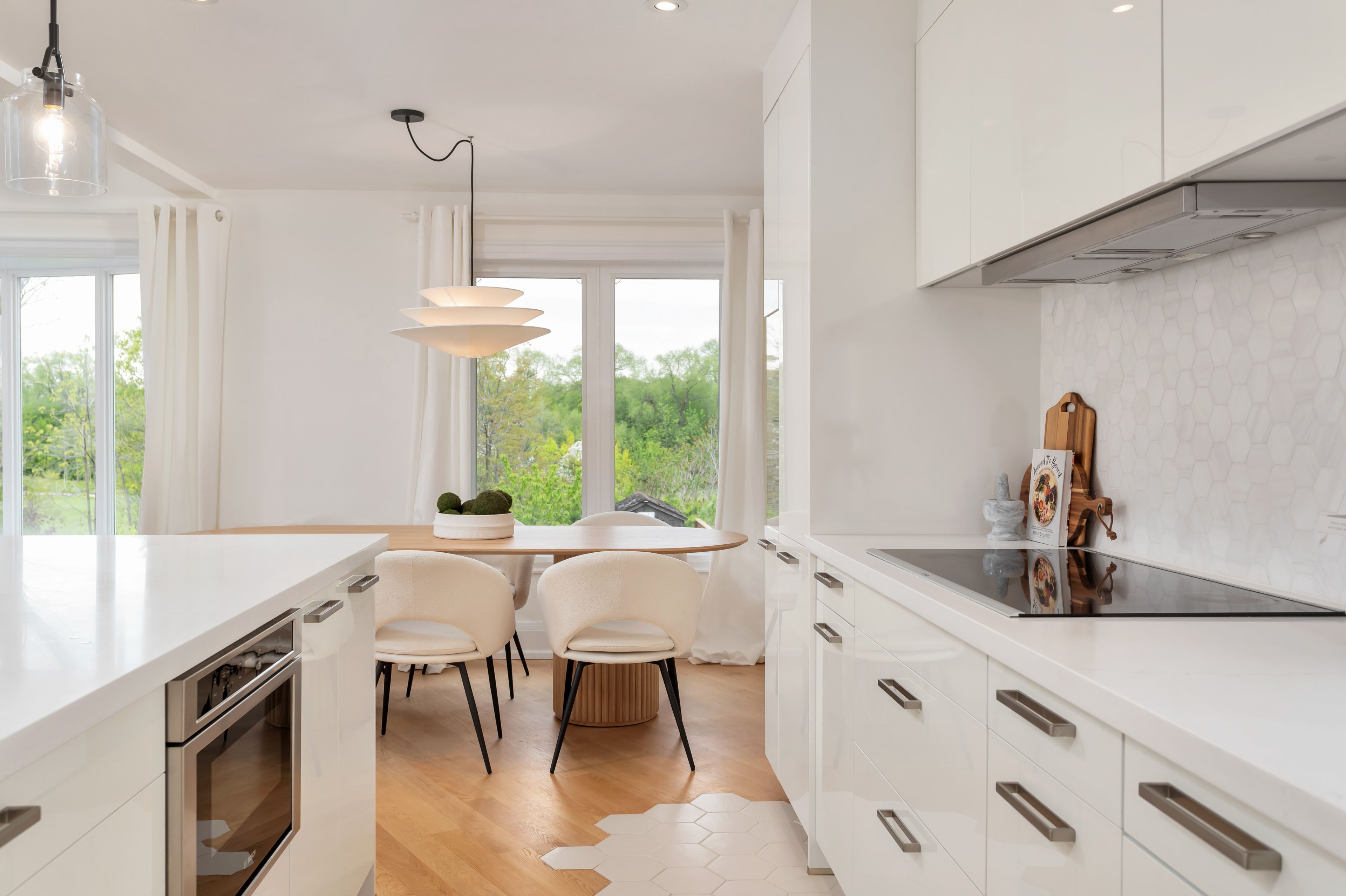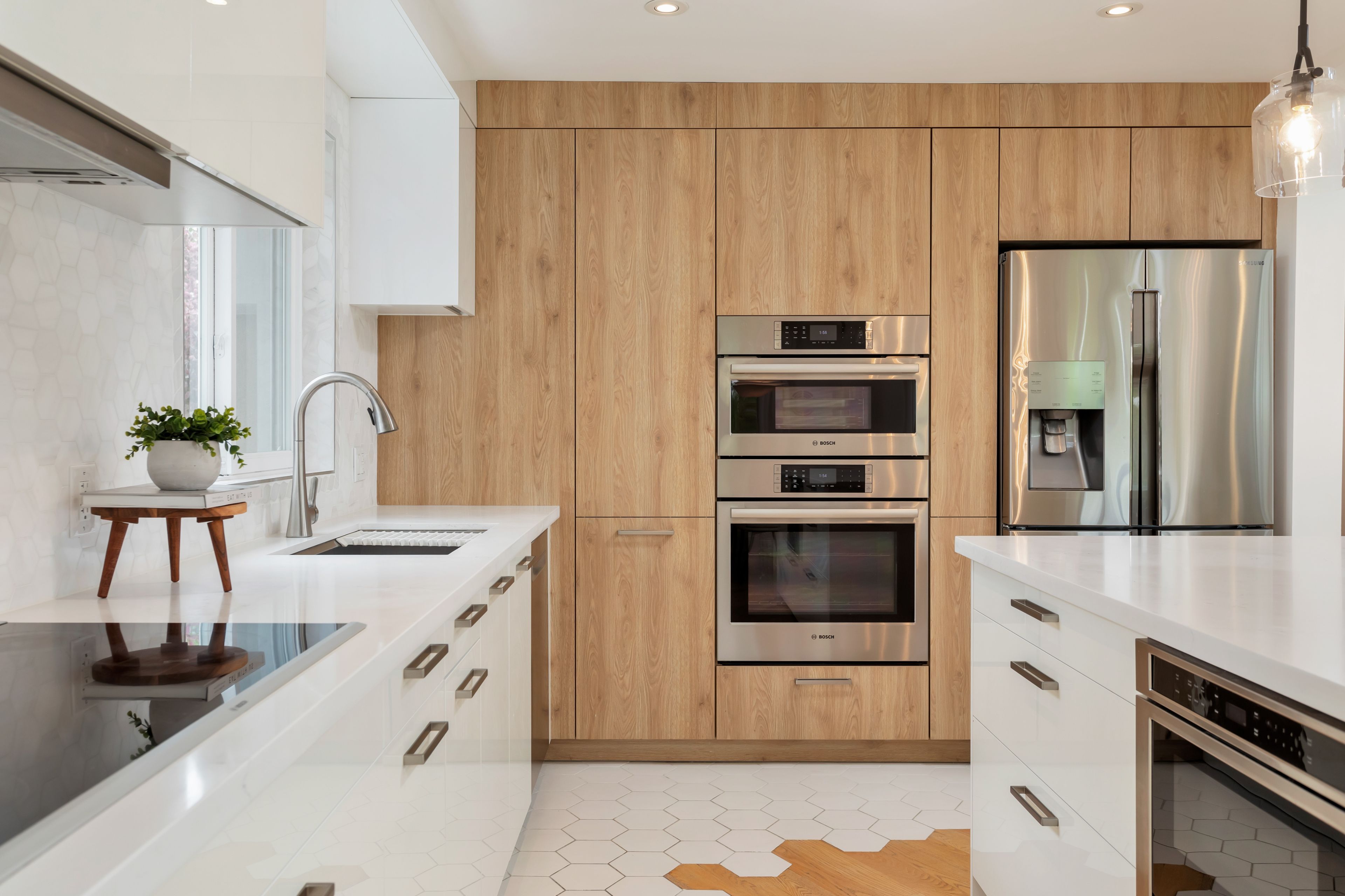 • Luxury kitchen features German design, steam oven, and clever storage solutions.