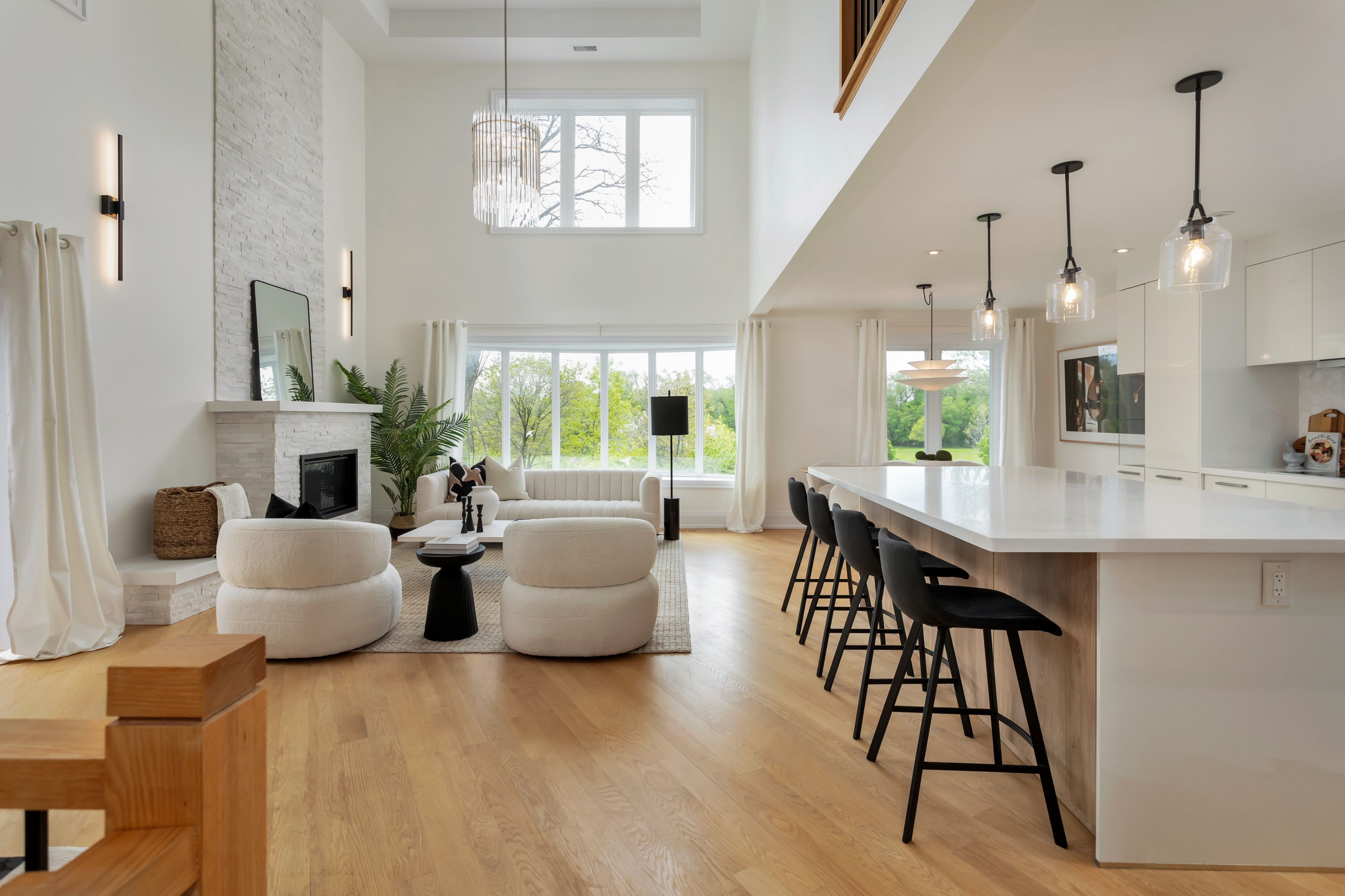 • Bright great room with nearly 19ft ceiling and windows on every wall.