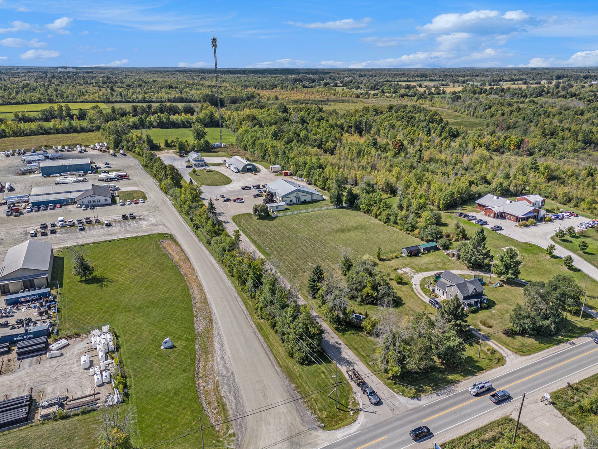 Prime multi-use investment opportunity! This well-maintained professional building is ideally located just minutes from downtown heritage perth and highway 7. Built in 2004, the steel-clad, low-maintenance structure is in great condition inside and out - truly a turnkey property. Constructed on a concrete slab with radiant floor and radiant tube heating, the building is equipped with a 400 amp hydro service, drilled well and septic system (upgraded). The paved parking area provides plenty of space for tenants and visitors, complemented by manicured lawns and a detached garage. Inside, the main level welcomes guests with a bright, spacious foyer leading to a shared boardroom that comfortably seats 12-16 people, plus an accessible washroom. The property is currently home to commercial and residential tenants! An opportunity not to be missed! Owner looking to sign 3 year lease back of front office space, 1413 sq ft heated bay available for owner occupant or additional rental. Garage rent estimated at $15 sq ft, office at $20 sq ft.