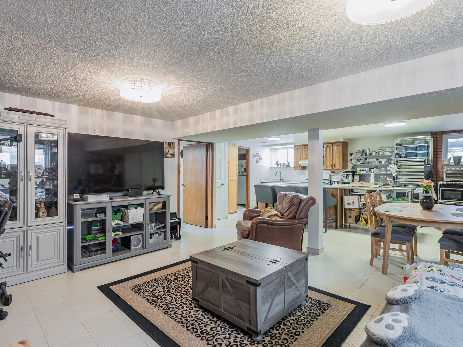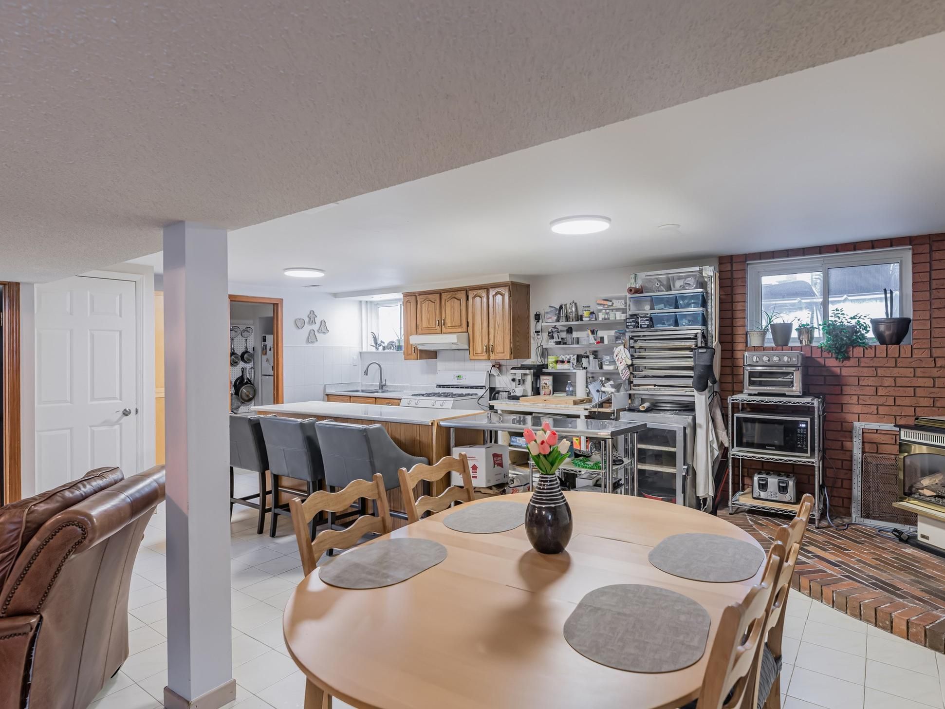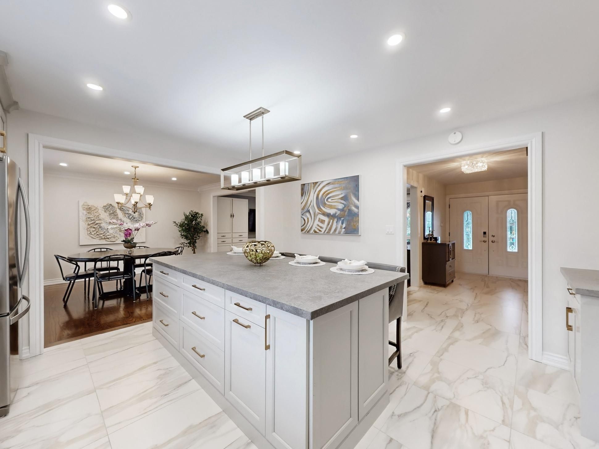 • Stylish kitchen with large island and plenty of cabinetry for enthusiasts.