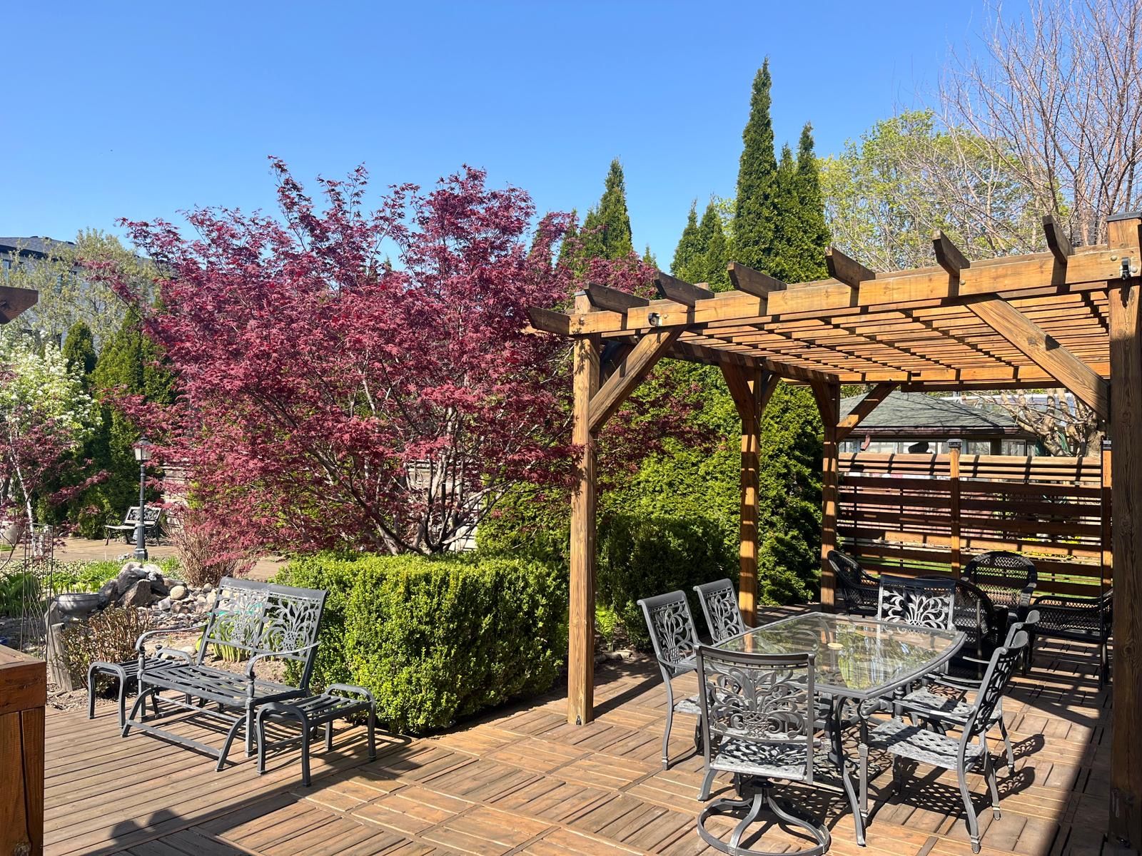 • Beautifully landscaped backyard with mature fruit trees and outdoor space.