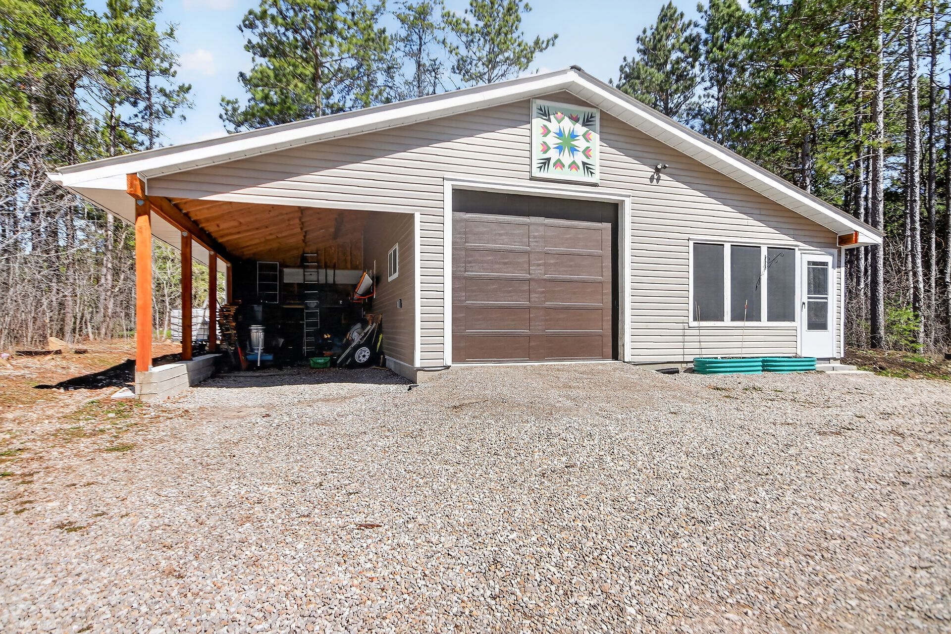 • Detached garage with ample space and hot tub area for year-round enjoyment.
