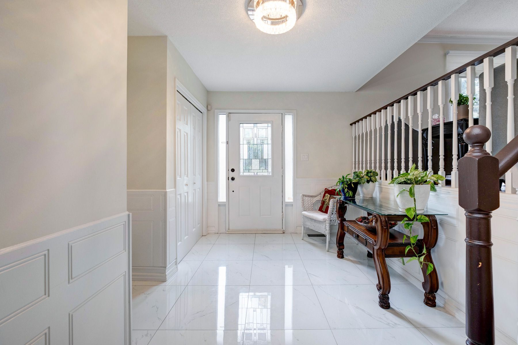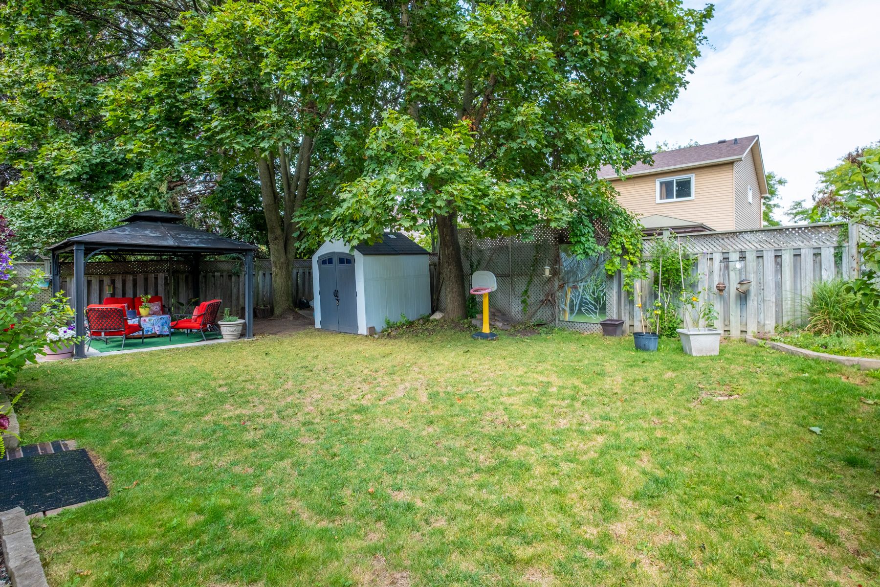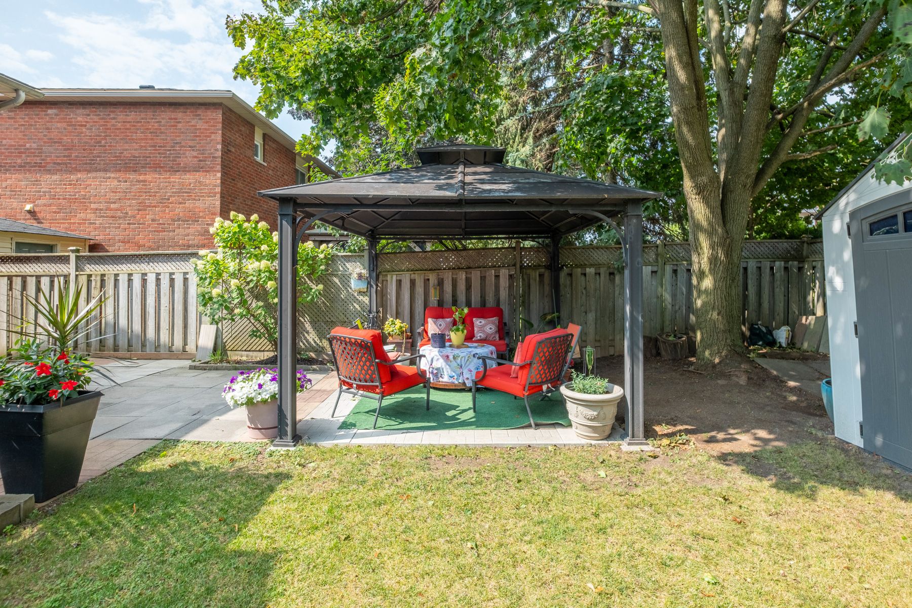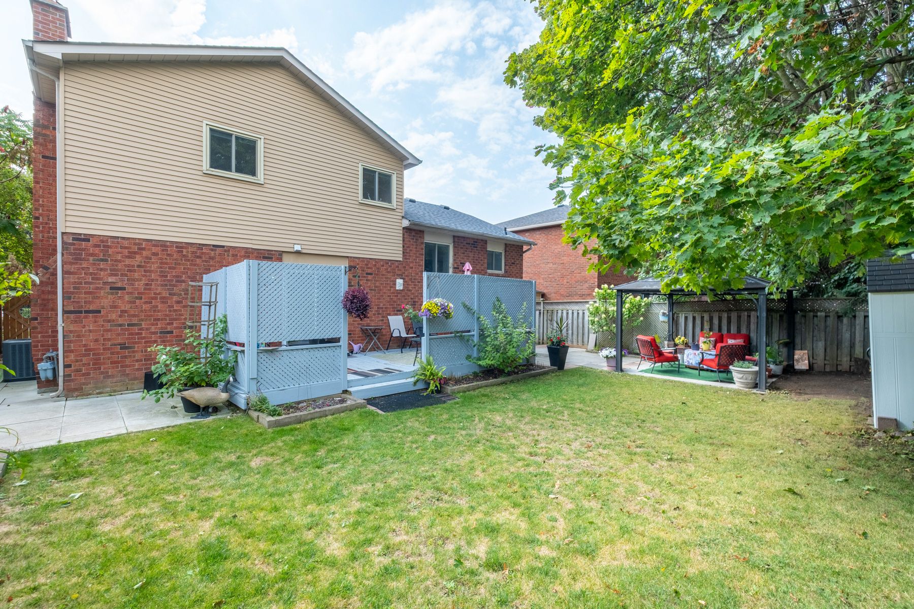 Welcome to bluegrass meadows and meticulously maintained 5 level sidesplit. Home is move in ready and much larger than it appears. Featuring a large entrance/foyer, new hardwood flooring through living, dining kitchen & family rooms. Modern eat-in kitchen w/quartz counters & upgraded appliances. Clever floor plan with large principle rooms, kitchen o/looking big family room and back yard. Family room boasts gas fireplace and sliding glass walkout to the backyard deck. New broadloom on the stairs leading to 3 good size bedrooms, master with walk-in closet and reno'd 3 piece ens. W/shower. Reno'd main bathroom. Level 4 features a huge rec. Room & 4th bedroom - both with above grade windows. Level 5 features full laundry area, plenty of storage and a cantina. Upgrade window covering(2 electric - fam & liv rooms). Parking for 4 vehicles in the driveway plus garage. 50 foot lot, gates on both sides of house lead to private back yard big enough for large family gatherings. Include new shed & gazebo. Roof re-shingled in 2024, freshly painted throughout. Excellent curb appeal - newly done interlock walkways. Family oriented community close to shopping and amenities, easy 401/407 access. Home is clean, larger than it looks, well maintained and ready to move in.