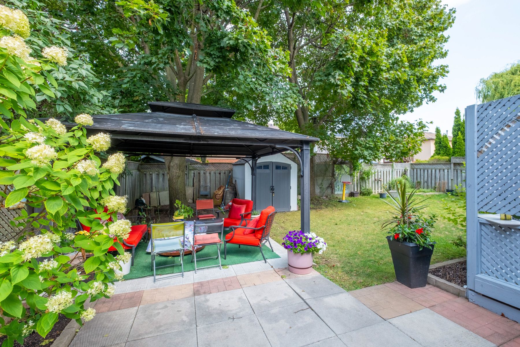 • Large private backyard, perfect for family gatherings and includes a shed.