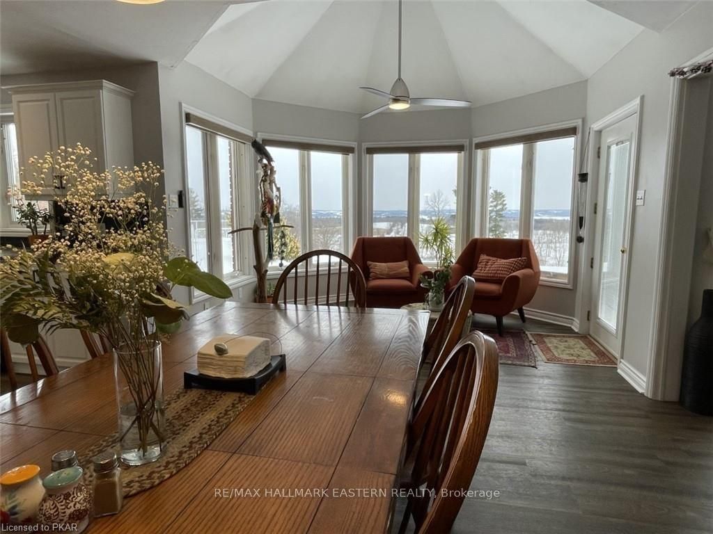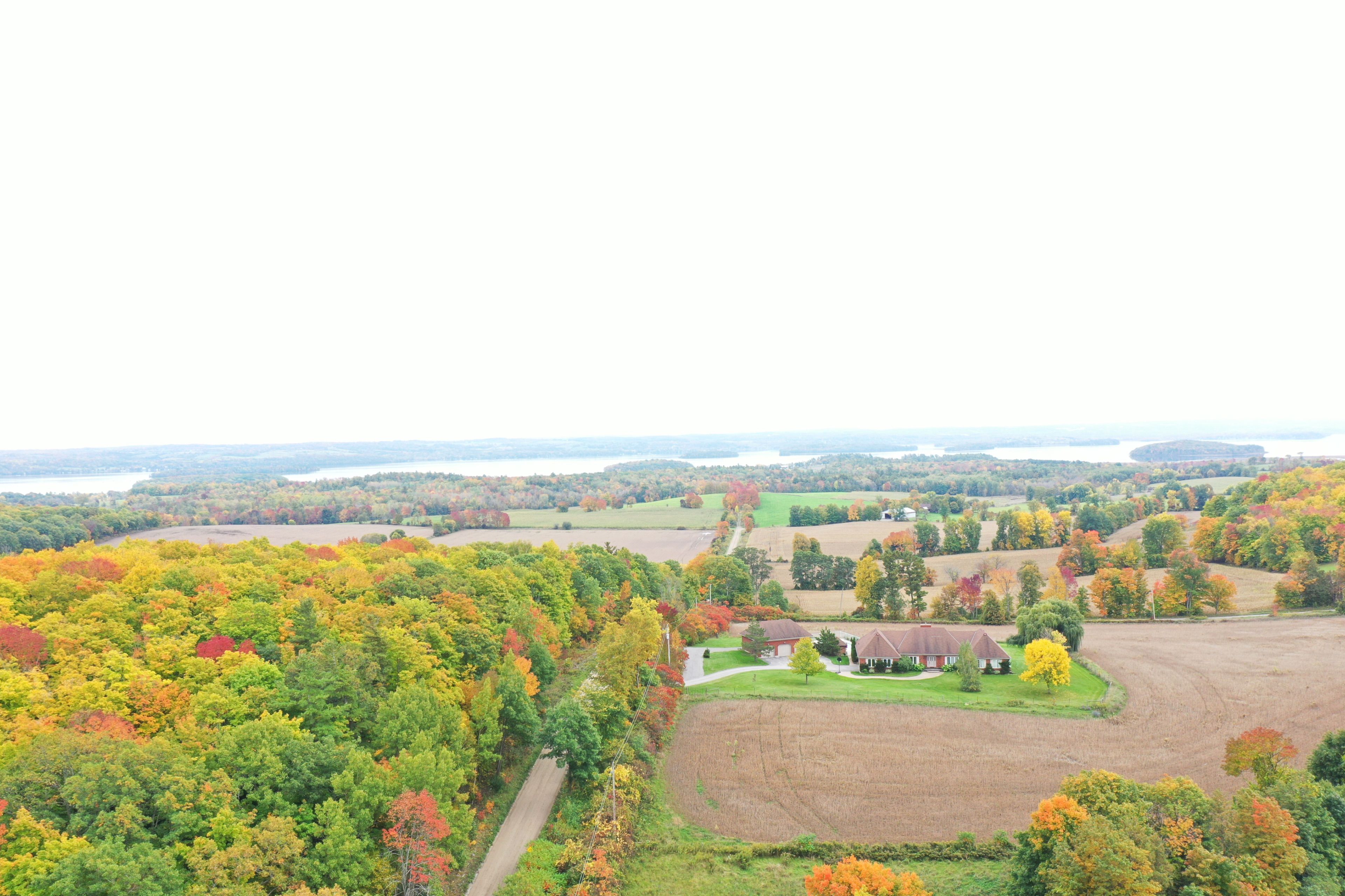Welcome to 1300 david fife line a one-of-a-kind country estate with spectacular views of rice lake! This executive ranch-style bungalow offers over 3,400 sq. Ft. Of beautifully finished living space, nestled on a private 24-acre property with sweeping 180-degree views of the rolling hills of peterborough county and breathtaking vistas of rice lake. This thoughtfully designed home features 3+2 bedrooms and 4 bathrooms, including a spacious primary suite with a walk-in closet and private ensuite. The sunken living room with a cozy wood-burning fireplace is the perfect spot to unwind on winter evenings. A formal living and dining room, along with a large eat-in kitchen, makes this home ideal for entertaining and family gatherings. The fully finished lower level includes an additional 1,500 sq. Ft. Of living space with a versatile recreation/playroom, two spacious bedrooms, and a full bathroom great for guests, teens, or extended family. Enjoy the convenience of a double attached garage, plus a heated detached triple garage/shop with a car lift and loft-style storage above perfect for hobbyists, car enthusiasts, or extra space. Outdoors, take in summer days by the 18 x 36 in-ground pool, and explore the land with two outbuildings for storage or workshop use. Two newly constructed barns (304 x 40 and 128 x 40) offer incredible versatility for farming, equestrian use, or future opportunities. A portion of the acreage is zoned farmland and currently in hay providing significant tax savings. Located just 15 minutes from peterborough with easy access to trent university, lakefield college, and sir sandford fleming, this property combines privacy, luxury, and convenience in one exceptional package. This is a rare offering - don't miss your chance to own a truly spectacular country estate!