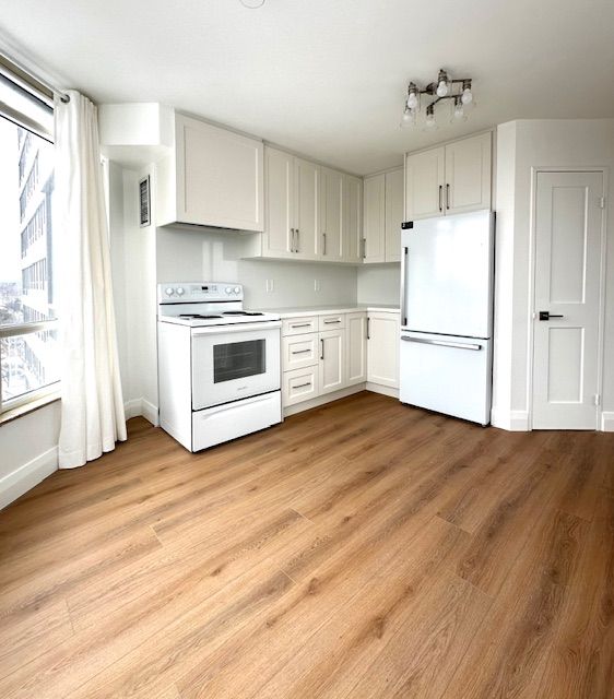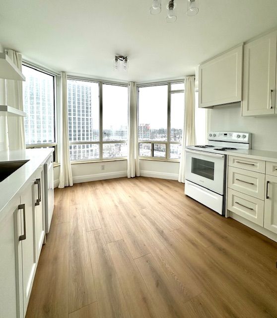 Extensively renovated and rarely available, spacious(1,396sf) 2 + solarium( sliding drs were removed) , 2 baths, 2 parking spaces. Beautiful corner suite with open balcony. Featuring large living and dining room areas, modern, never used eat-in kitchen w/ quartz kitchen counter and window above sink . Primary bedroom with 3pc ensuite and walk-in-closet. 4 piece main bathroom & in-suite side by side laundry appliances. N ewly installed lux vinyl fls throughout, new window coverings. Residents can enjoy terrific resort like amenities inluding: indoor pool, hot tub and wirlpool , sauna, exercise rm, billiards, tennis & squash courts, library, party room, lounge. 24 hr concierge & ample visitor parking. Steps to rabba grocery store, short walk to islington subway, thomas riley park, mimico creek, historic islington village with shops and restaurants.