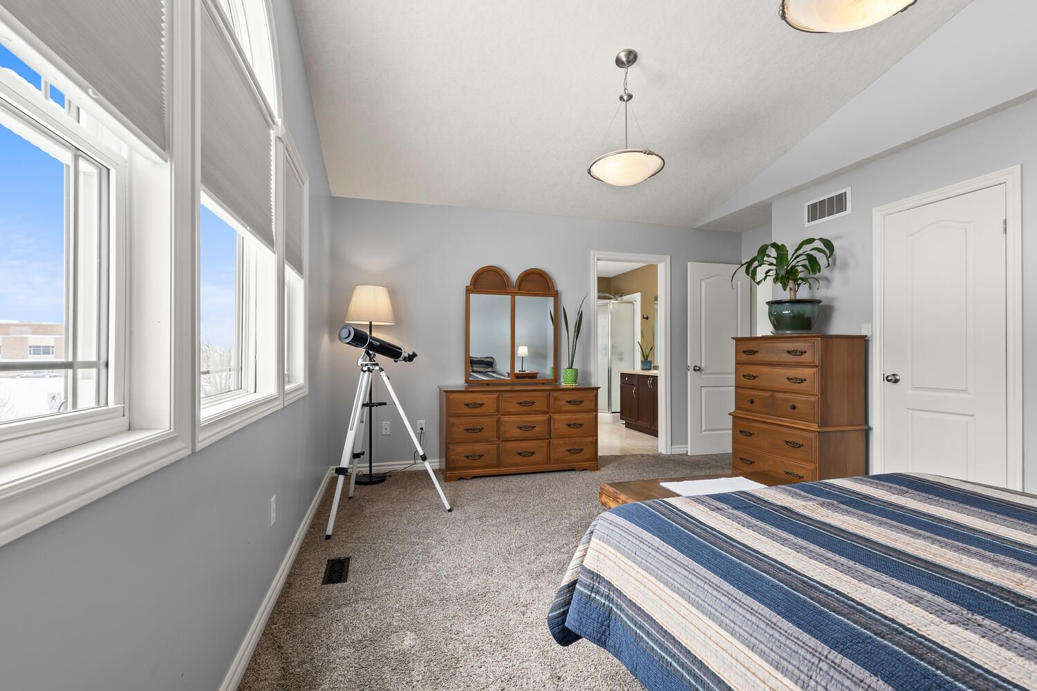 • Spacious primary bedroom features a walk-in closet and ensuite bath.