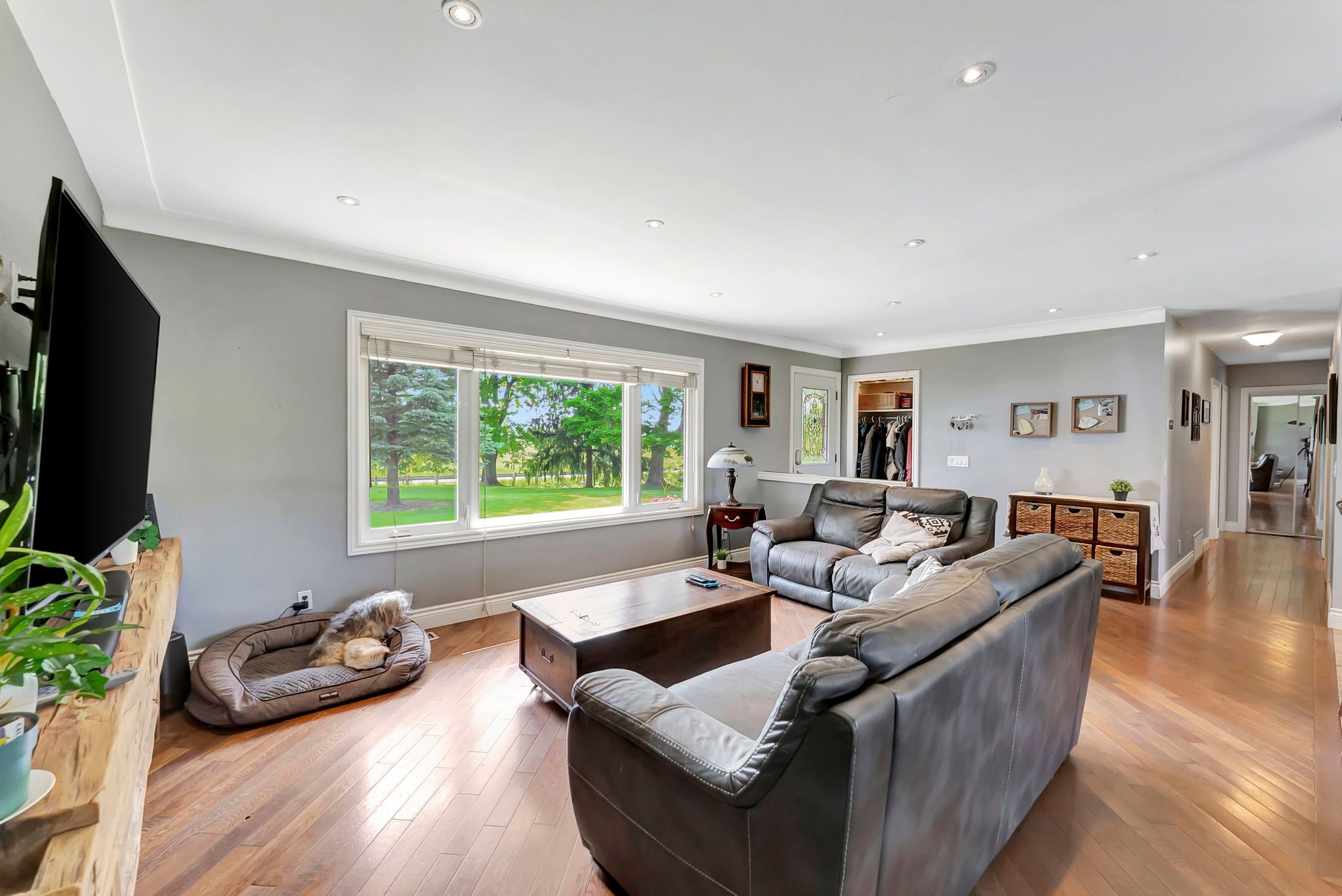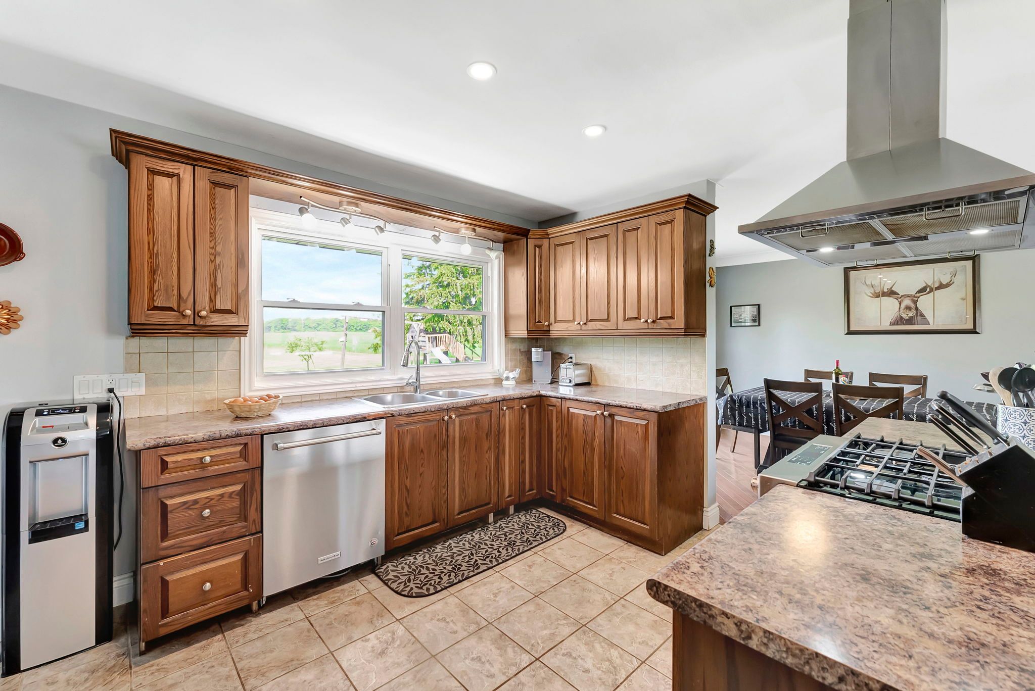 Stunning all-brick bungalow nestled on a high elevation lot with beautiful views. Set on a 150 x 200 ft property, its surrounded by farm fields to the west and a mature forest with ravine to the south, offering peace and privacy. Inside, the open-concept kitchen features oak cabinetry, a custom island with built-in cooktop, stainless steel hood vent, built-in oven, recessed lighting, and a garden door walkout to the backyard. The main floor offers hardwood floors throughout, a bright living room with picture window, dining area, and 3 spacious bedrooms with ample closets. The primary suite includes a private 1. 5 bath, plus a 4pc main bath down the hall. The full basement features a cold room perfect for a wine cellar and a large space ready for a family room, games area, office, or home gym. Extras include a wood stove, roof (2023), central vacuum, double garage, large cistern, working septic, natural gas furnace, and central air. A rare opportunity to enjoy peaceful country living with modern comfort, just 30 minutes from hamilton and 10 minutes to cayuga.