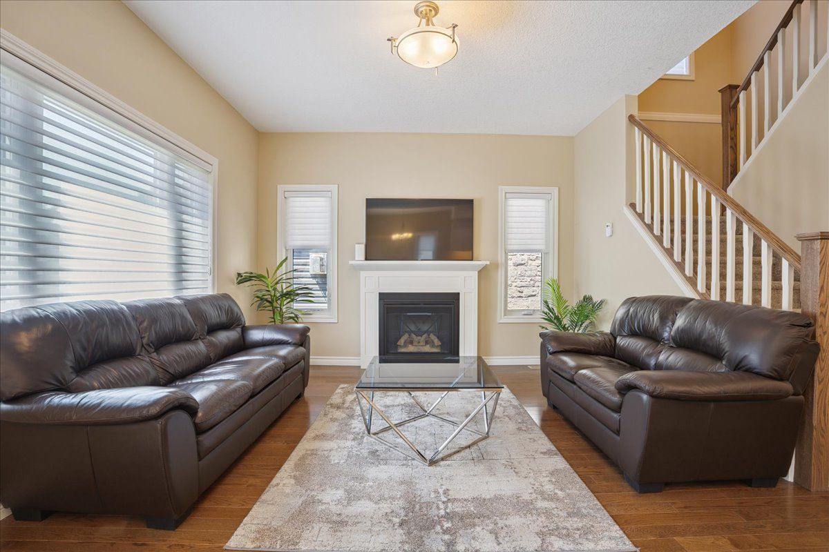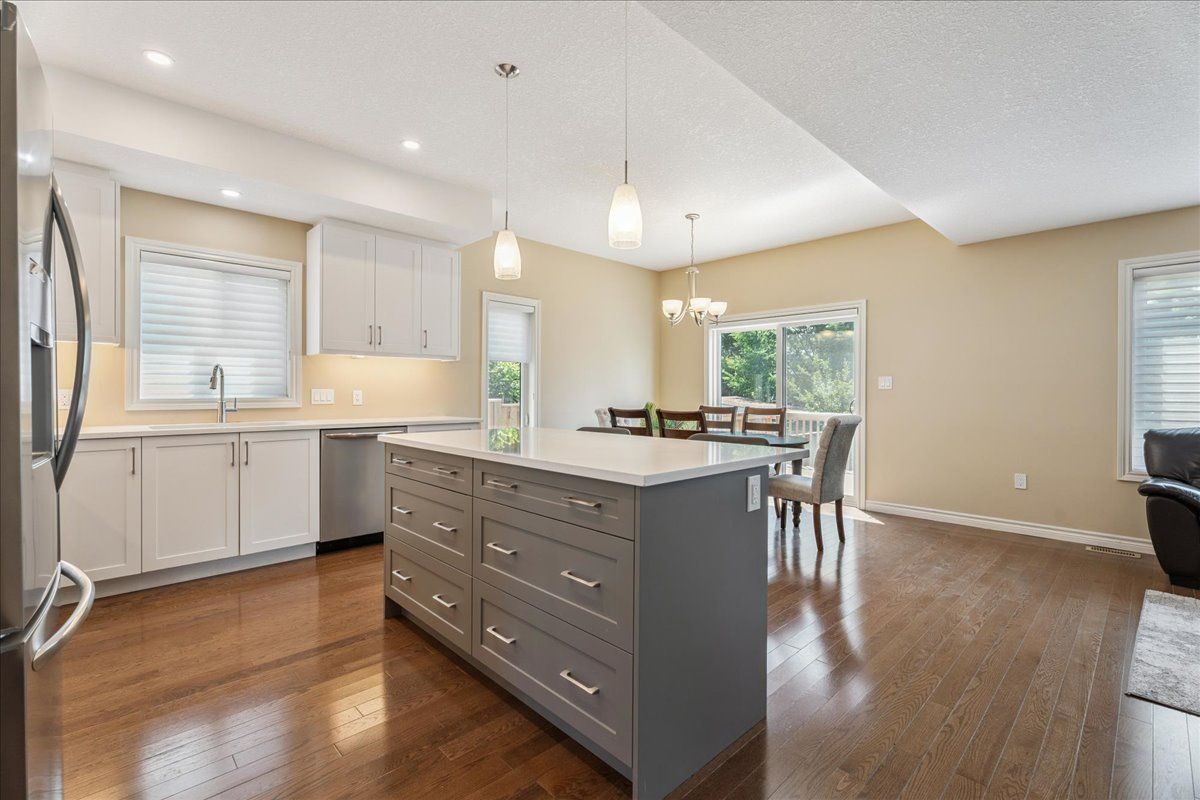 Tucked away on a quiet cul-de-sac on the east side of owen sound, this beautiful 2-storey stone home is full of space, style, and comfort. With 5 bedrooms, 3. 5 bathrooms, and plenty of room for the whole crew, its the kind of place you'll love coming home to. The open-concept main floor is ideal for both everyday living and entertaining. The kitchen is a standout with quartz countertops, stainless steel appliances, and a centre island perfect for coffee chats or after-school snacks. The dining area flows easily into the living room, where a cozy gas fireplace sets the scene for relaxed evenings. Sliding doors off the dining room lead to the backyard deck, great for bbqs or soaking up the sun. Hardwood flooring runs throughout the main level, and there's even a convenient main floor laundry. Upstairs, you'll find four generous bedrooms. The spacious primary suite features a 5-piece ensuite and walk-in closet, your own private retreat. Downstairs, the finished lower level offers a welcoming family room with a second gas fireplace, plus the fifth bedroom, perfect for guests, teens, or a home office setup. Located just minutes from the hospital, shopping, and georgian college, this east side gem combines quiet living with everyday convenience. A great home in a great neighbourhood, what more could you ask for?