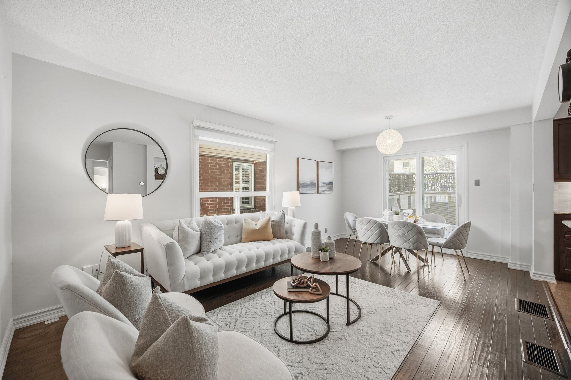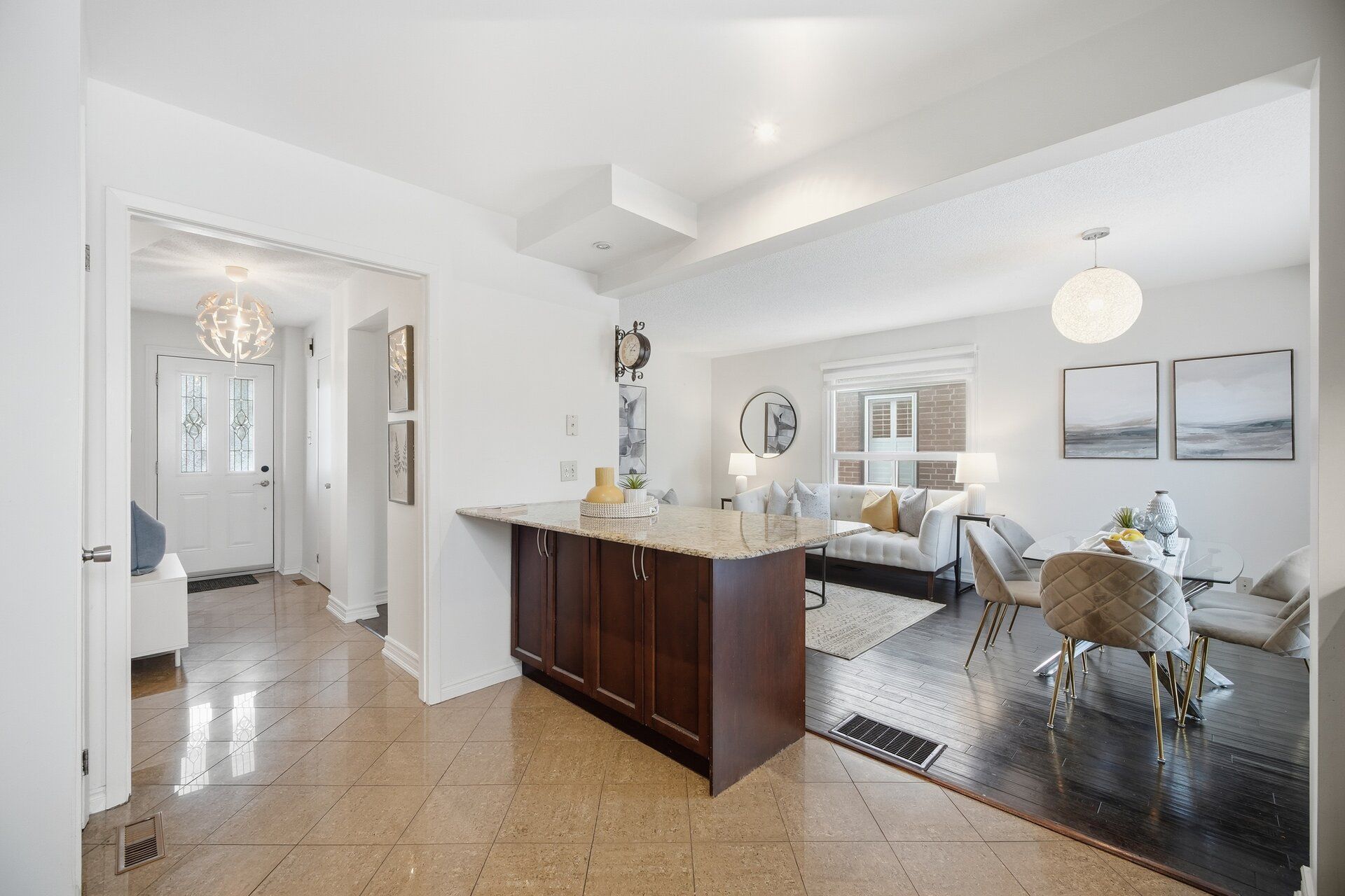 • Bright open-concept layout with hardwood floors throughout.