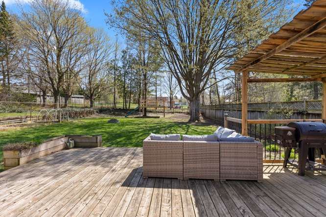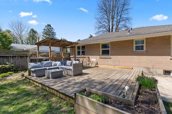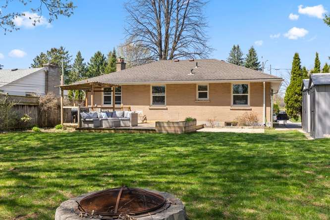Beautiful byron village. Welcome to 1302 norman ave. Beautifully updated and backing onto jorgenson park and the byron optimist recreation centre. A large front deck awaits those long lazy summer days. Followed by a generous foyer complimented by custom built-in's. Warmth continues throughout this lovely ranch as you meander into a spacious livingroom enjoying a large front window and fireplace. Across the hall, offering nice privacy, 3 bedrooms and an updated main bath. Accent shelving, for special things draws you into a fully renovated kitchen, beautifully laid out with great function. But there's more! Down to a tastefully finished familroom, lots of options for usage in this space. A 4th bedroom or office, convenient 2 pc. Bath, laundry and storage complete enjoyable sq. Footage. The side door off the stairs offers access to a huge private fenced yard (your own park) all backing onto jorgenson park. Lovely! Updates include: front retaining wall ( 2020), backyard landscaping ( 2018), two sheds, composite deck, (2021), exterior door and cellar door (2020), eaves and downspouts (2020), furnace, a/c & water heater (2018), windows (2011), fireplace (2023) kitchen (2016), bathroom (2020), basement (2018) half bath (2018) all steps to byron village shopping, banking, pharmacy, medical, coffee shop, flower shop, springbank park! What's not to love!