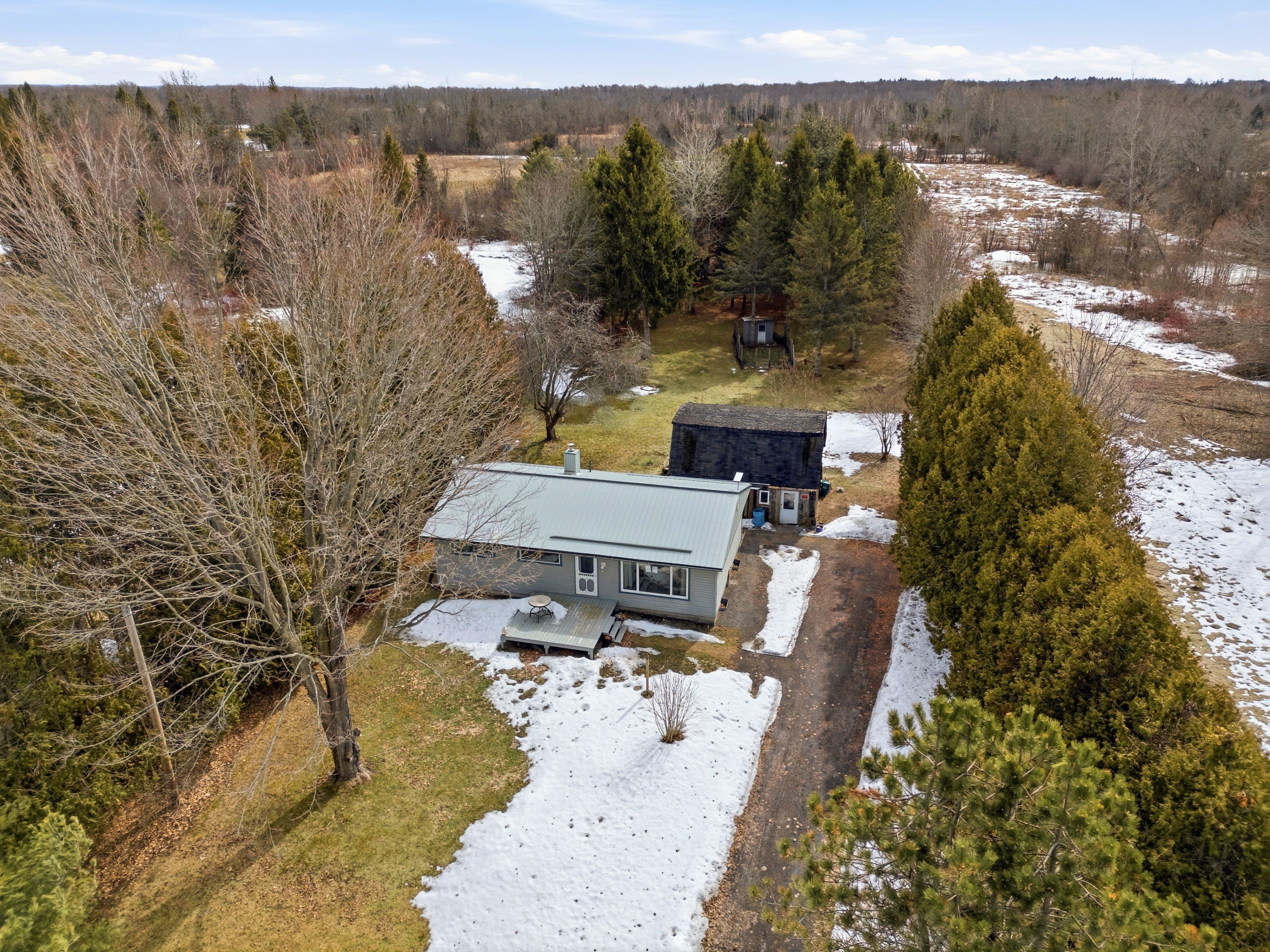 Welcome to 1303 county road 64, a charming country bungalow set on nearly one acre in the peaceful rural setting of quinte west. Surrounded by open space and mature greenery, this property offers privacy, room to roam, and the opportunity to enjoy a relaxed country lifestyle while still being within easy reach of nearby communities and amenities. Built in 1961, the home offers over 1,300 sq. Ft. Of main-floor living space with a functional layout. The bright living room welcomes you in and flows into a dedicated dining area, creating a comfortable space for everyday living. The kitchen provides generous room for meal preparation with plenty of cabinetry and workspace, making it a practical hub of the home. Two well-sized bedrooms and a spacious four-piece bathroom complete the main level. The full basement remains unfinished, offering excellent storage and future potential for additional living space for whatever suits your needs. Outside, the expansive lot provides plenty of space for gardening, outdoor entertaining, or simply enjoying the peaceful surroundings. A large detached two-storey shed/workshop offers additional storage or a great space for hobbies and projects, while the private driveway provides ample parking for multiple vehicles. Located just a short drive to all amenities as well as the waterfront, this property offers a wonderful opportunity for those seeking space, privacy, and rural charm. With solid bones and plenty of potential, 1303 county road 64 is ready for its next chapter!