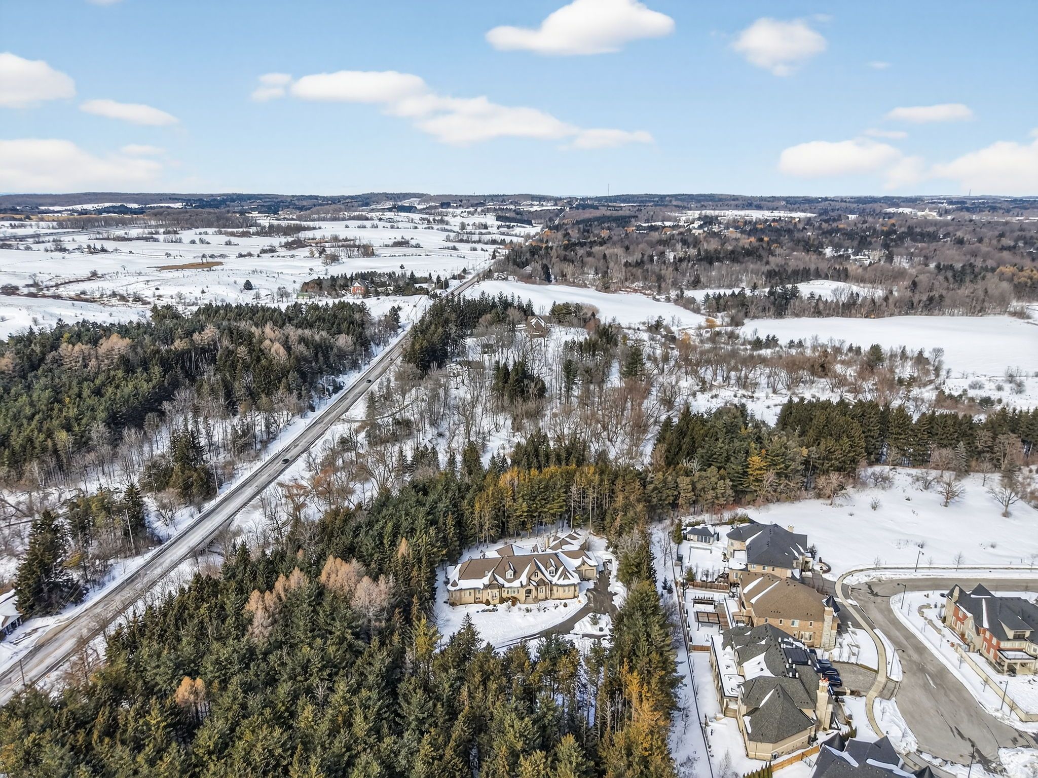 Welcome to an extraordinary private estate set on 11 breathtaking acres in the heart of prestigious king township. Surrounded by mature trees and rolling countryside, this exceptional property offers the perfect balance of luxury living, privacy, and natural beauty-just minutes from major routes and local amenities. This impressive custom-built residence features 4 spacious bedrooms and 9 bathrooms, thoughtfully designed with elegant finishes and expansive principal rooms throughout. Rich hardwood floors, detailed millwork, and soaring ceilings create a warm yet refined atmosphere across the home. At the heart of the home is a chef-inspired kitchen, complete with extensive custom cabinetry, premium appliances, granite countertops, and a large centre island ideal for entertaining. The kitchen opens to inviting living and dining areas designed for both everyday living and hosting guests in style. The home features three fireplaces, adding warmth and character to multiple living spaces. A main-floor in-law suite offers excellent flexibility for multi-generational living, guest accommodations, or private office space. Retreat to the generous primary suite featuring a spa-inspired ensuite and ample closet space, while additional bedrooms offer comfort and privacy for family and guests alike. Outdoors, the property offers a peaceful retreat with expansive grounds perfect for enjoying nature, entertaining, or future possibilities. A 4-car attached garage provides ample parking and storage. Located in one of king township's most desirable areas, this exceptional property offers country estate living with convenient access to king city, aurora, vaughan, and highway 400. A rare opportunity to own a spectacular 11-acre estate on jane street in one of york region's most sought-after communities.