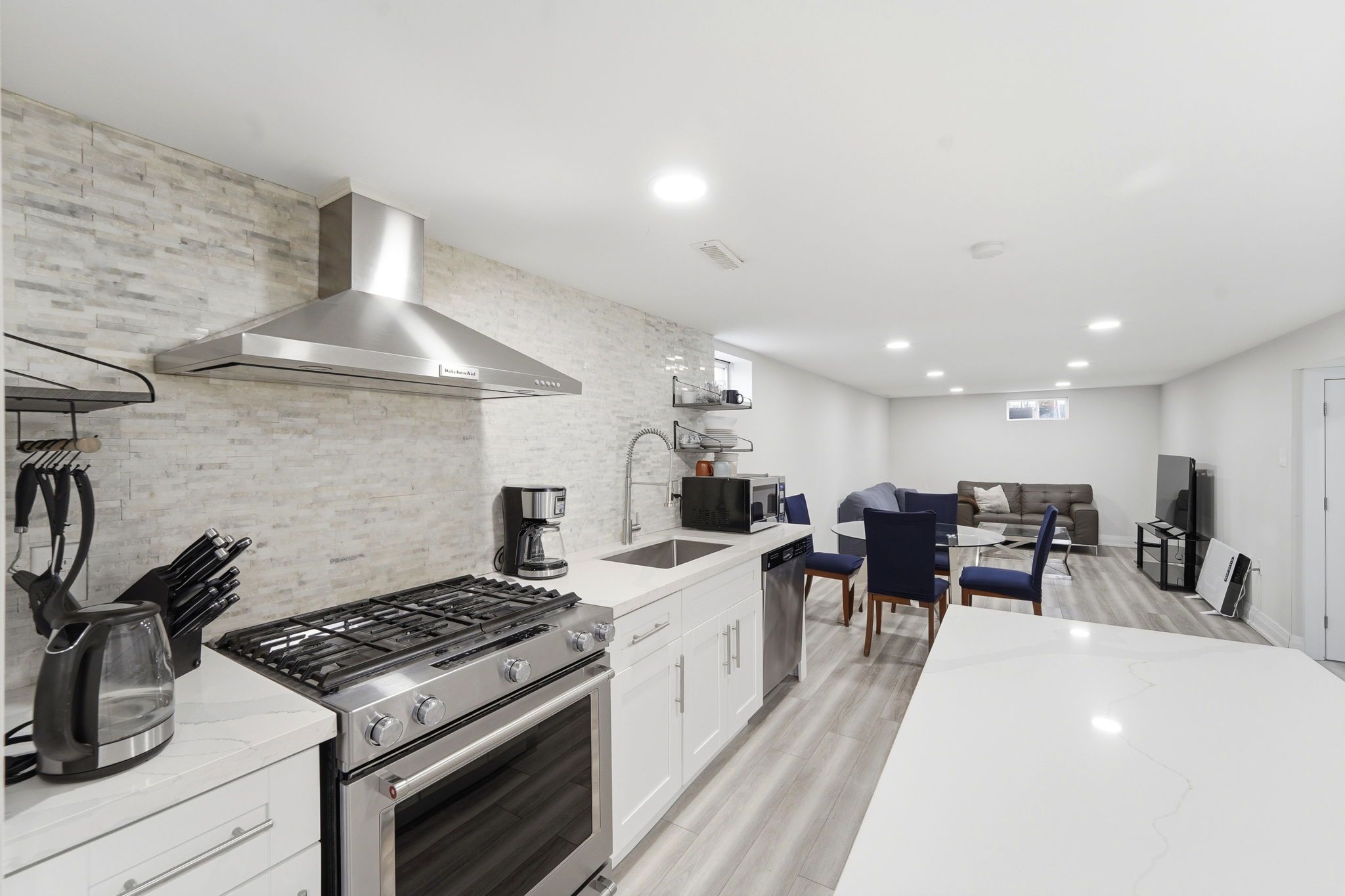 Welcome to this beautifully finished fully furnished one bedroom basement suite in burlington's sought after palmer neighbourhood, offering a bright and spacious open concept layout with modern finishes throughout. The stylish kitchen features granite countertops, a functional island perfect for dining or working from home, and stainless steel appliances. The generous bedroom provides a comfortable retreat, while the well appointed bathroom includes a stand up shower and convenient ensuite laundry. Complete with dedicated parking and a turnkey setup, this move in ready suite is ideal for professionals seeking a clean, modern and low maintenance lifestyle close to the 403 highway, major grocery stores, top rated schools, burlington centre and all essential amenities.