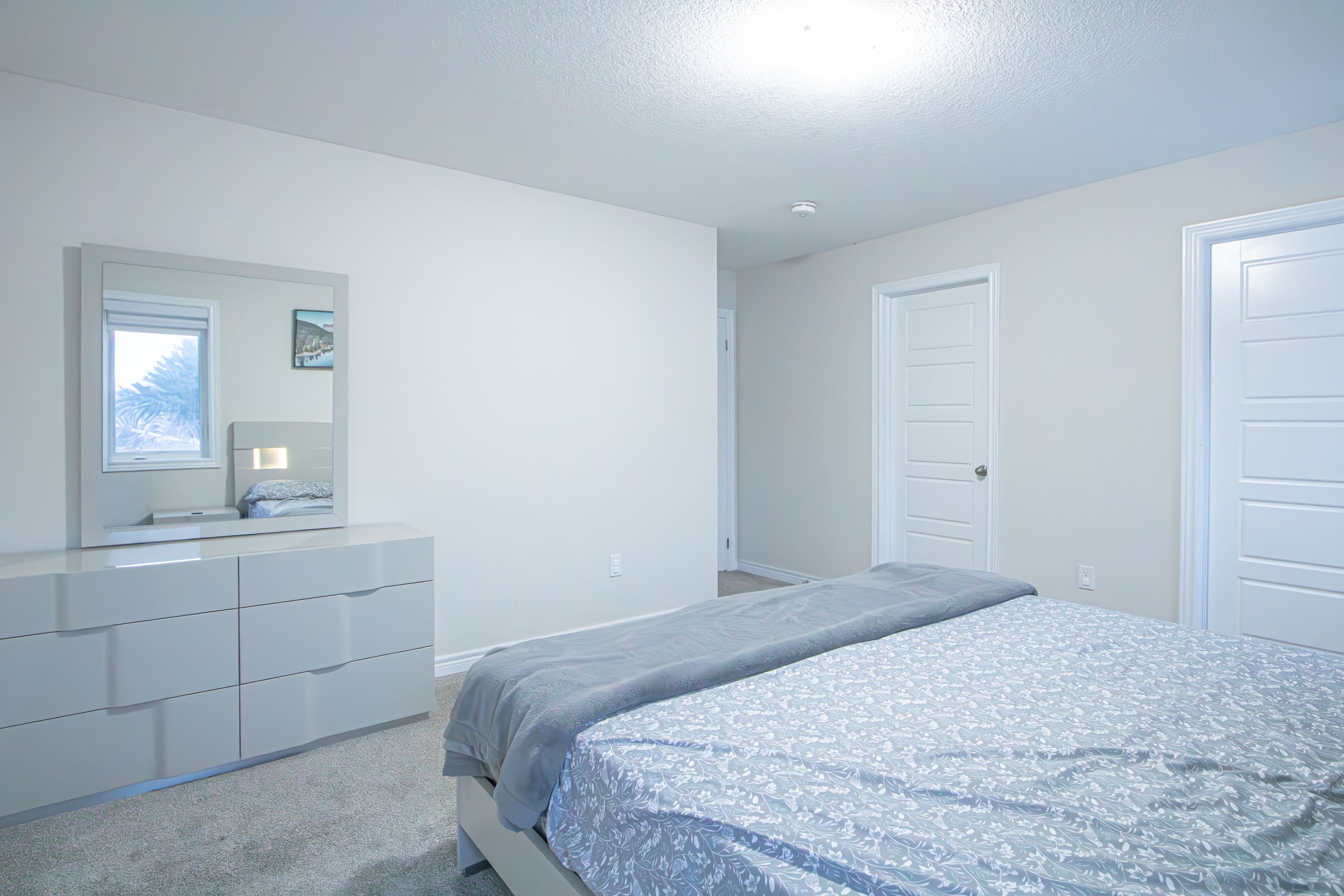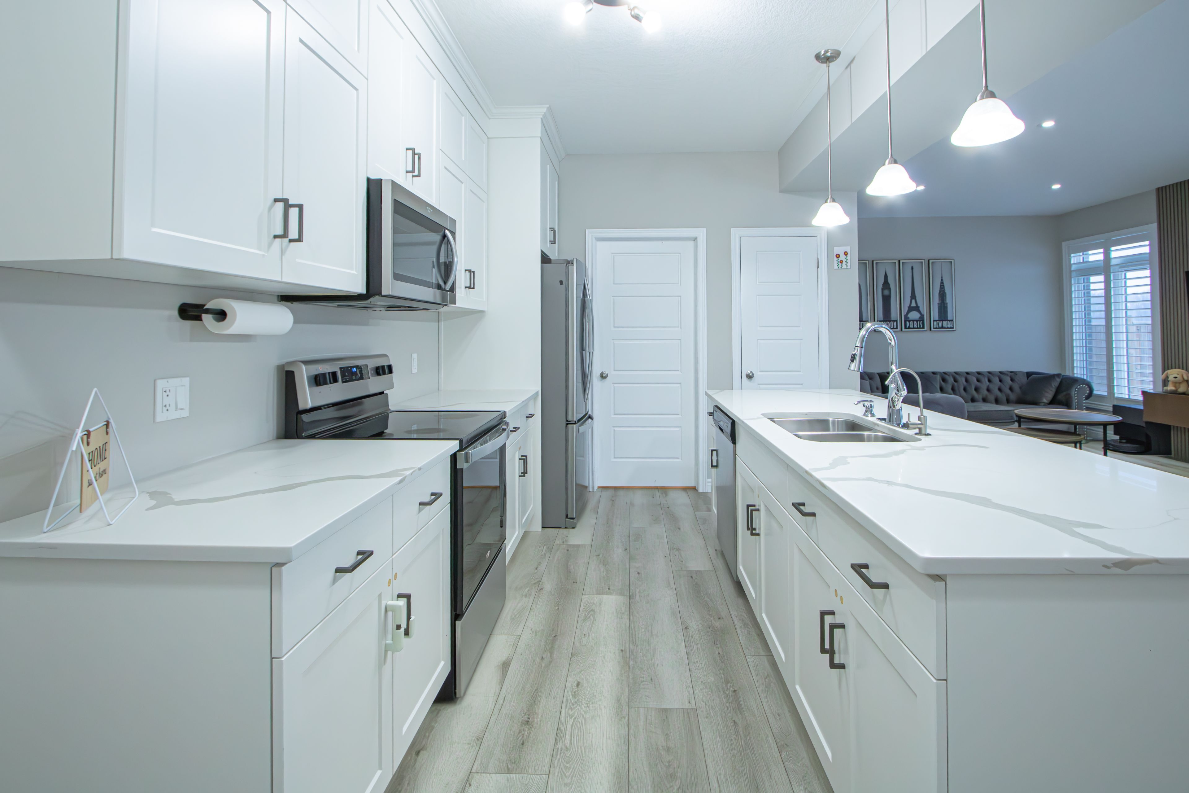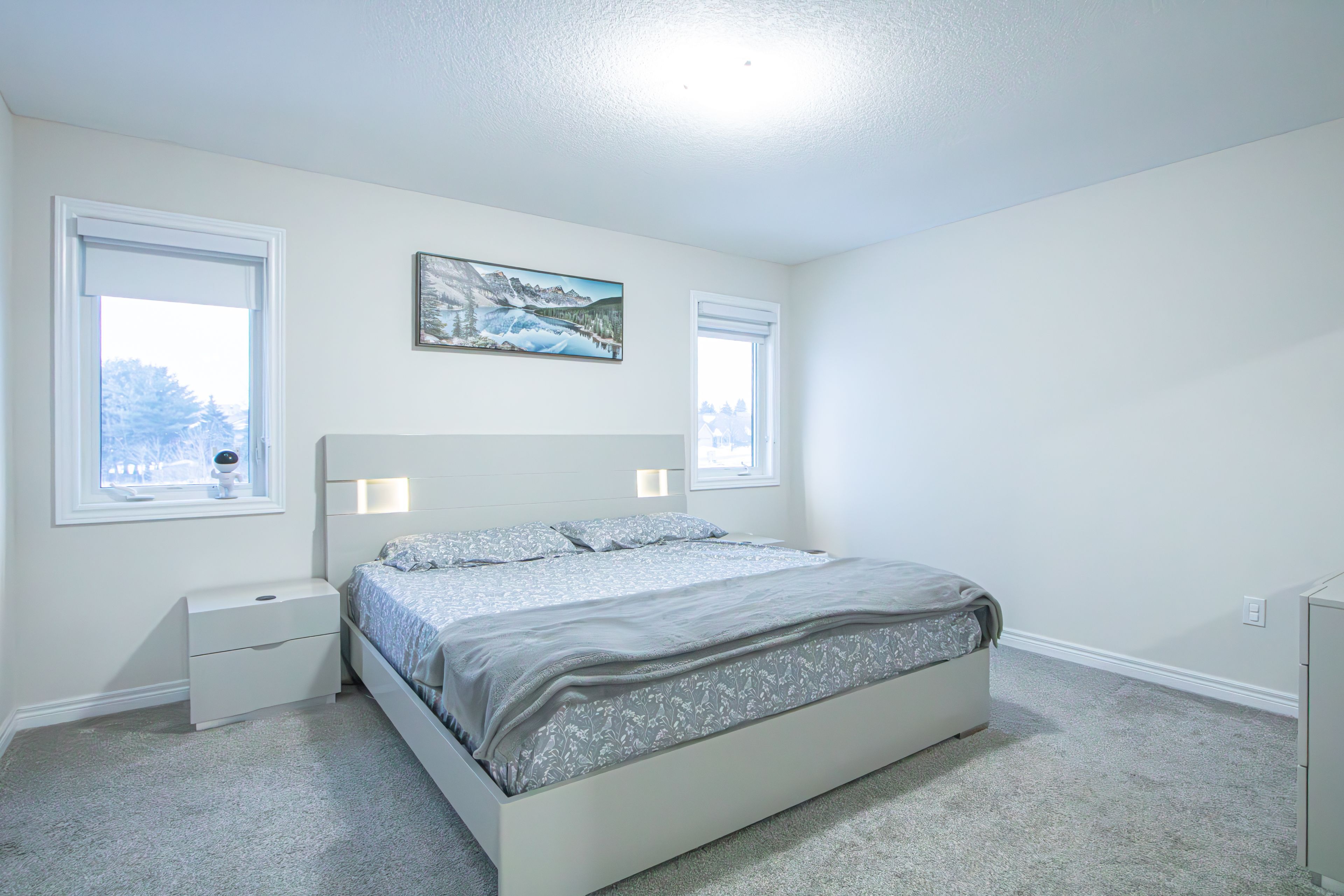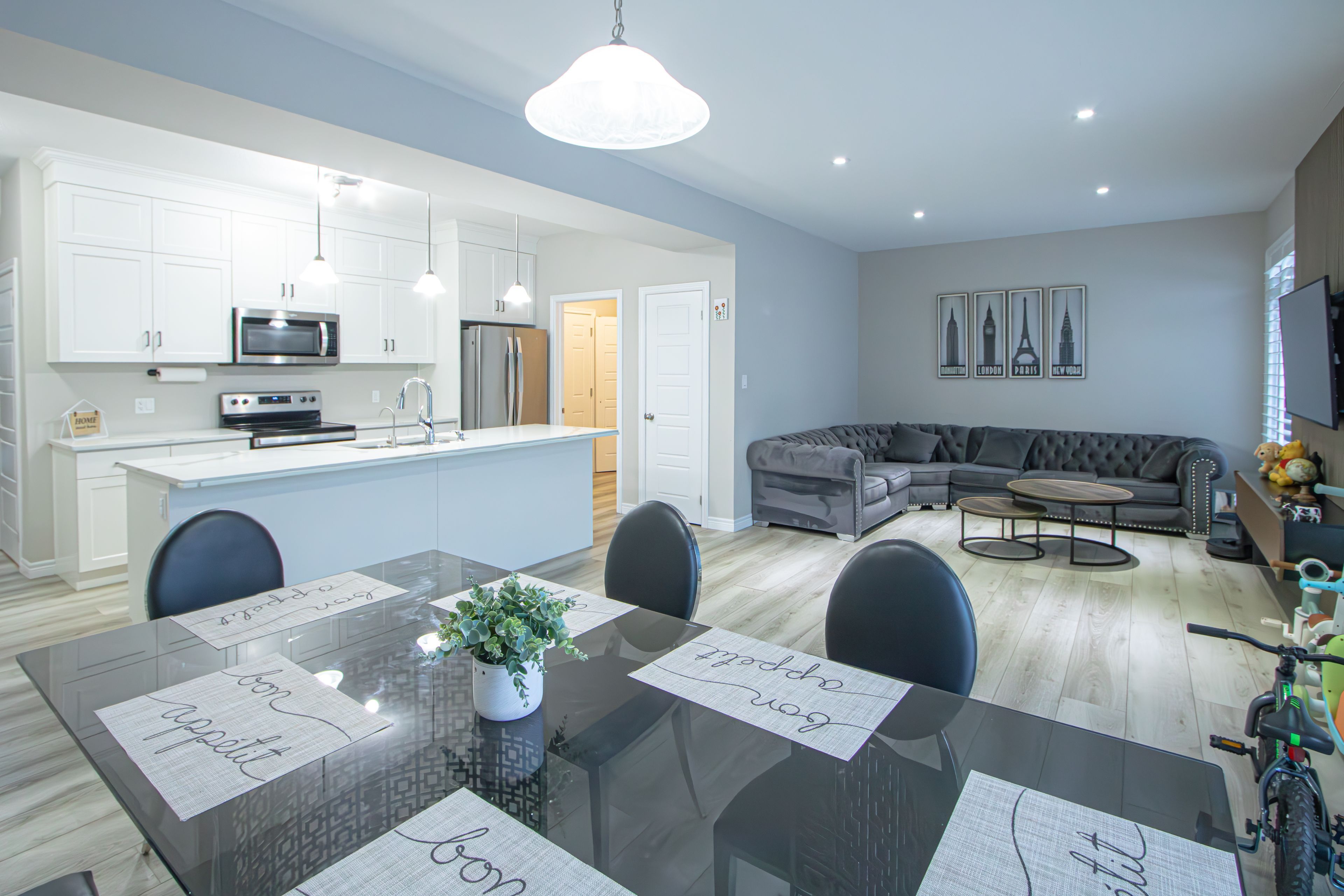 Make a statement the moment you arrive. Step into a grand, sun-filled foyer with soaring ceilings and a striking 7-ft chandelier set within an impressive 20-ft entrance-an unforgettable first impression that sets the tone for this open and elegant home. This nearly new, custom-built detached residence offers tarion warranty remaining and sits on a rare oversized pie-shaped lot, providing exceptional outdoor potential. The main floor features high ceilings throughout and an upgraded kitchen complete with quartz countertops, extended cabinetry, stainless steel appliances, a custom appliance garage, and a stylish accent slat wall-flowing seamlessly into the main living space, ideal for both everyday living and entertaining. Upstairs, enjoy a spacious family room that can easily convert to an additional bedroom, along with a well-appointed primary suite featuring a walk-in closet and a 4-pc ensuite. Premium wide-plank flooring on the main level, a double-car garage, and a sought-after family-friendly neighbourhood close to highways 401 & 403, shopping, and daily conveniences complete the package. A rare combination of modern design, premium lot size, and thoughtful upgrades-this is the kind of home buyers wait for.