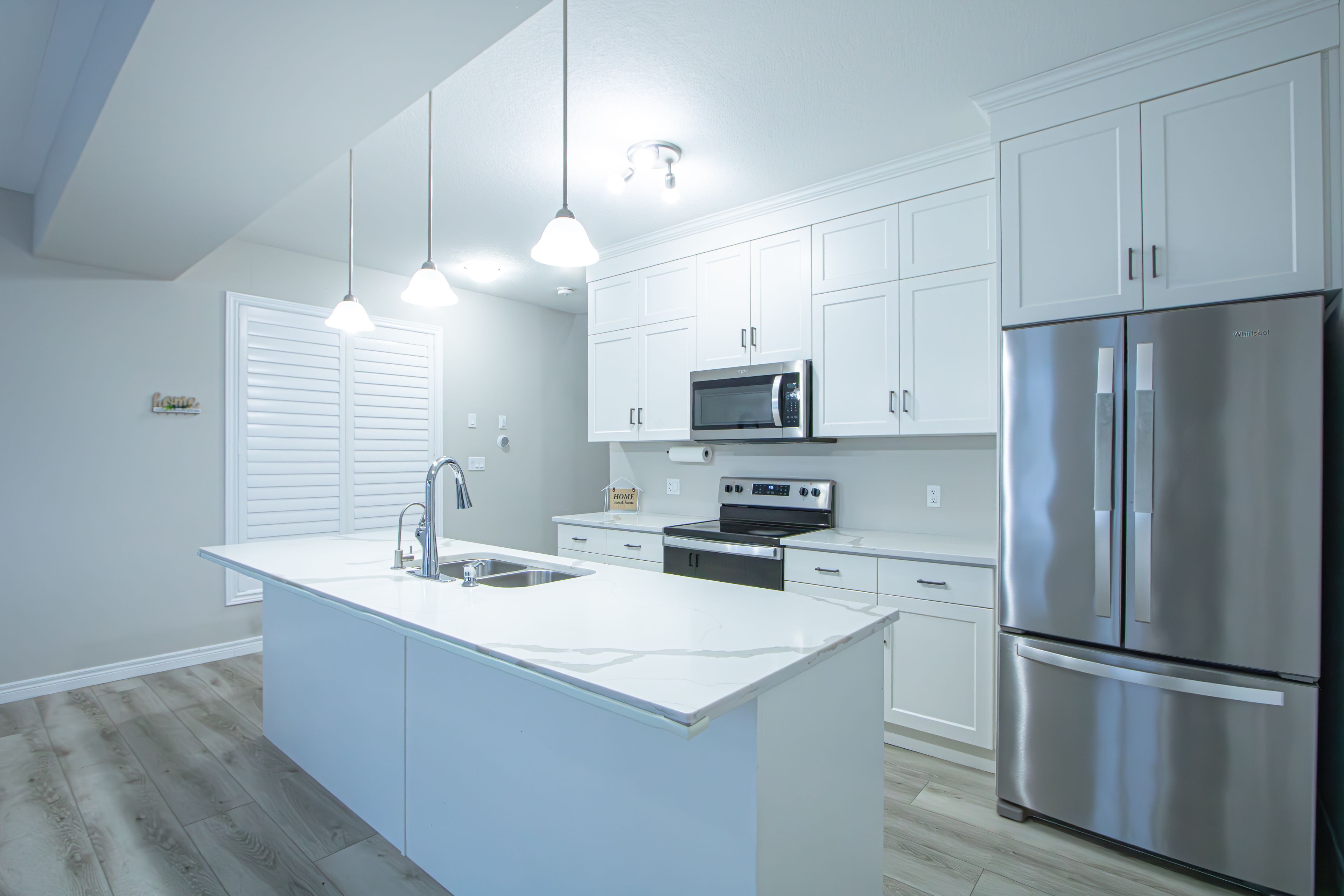 • Upgraded kitchen with quartz countertops and stainless steel appliances.