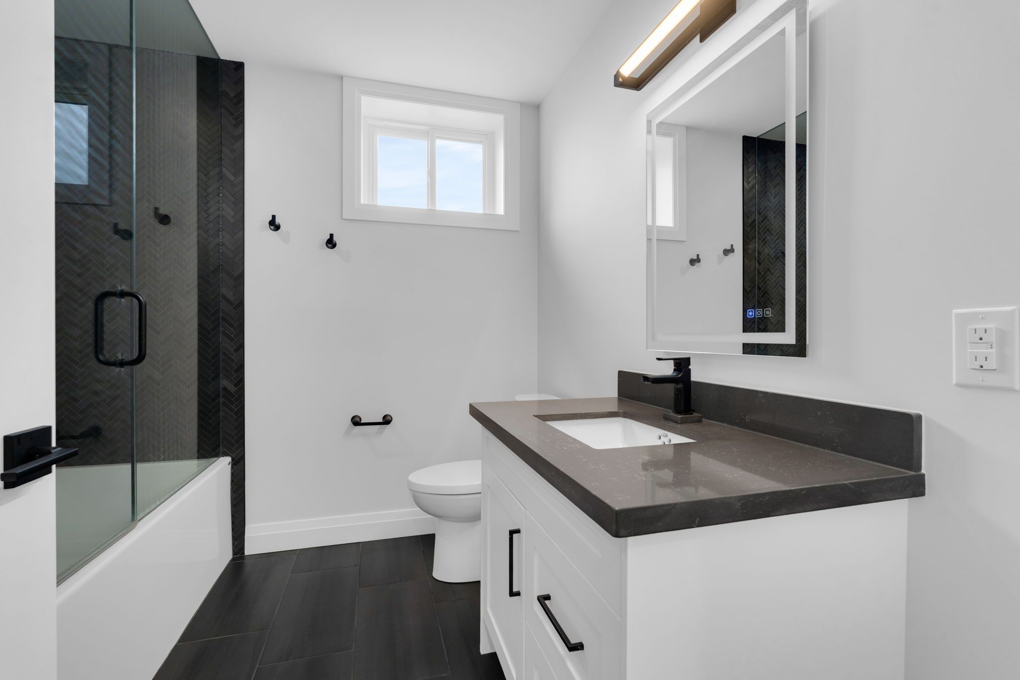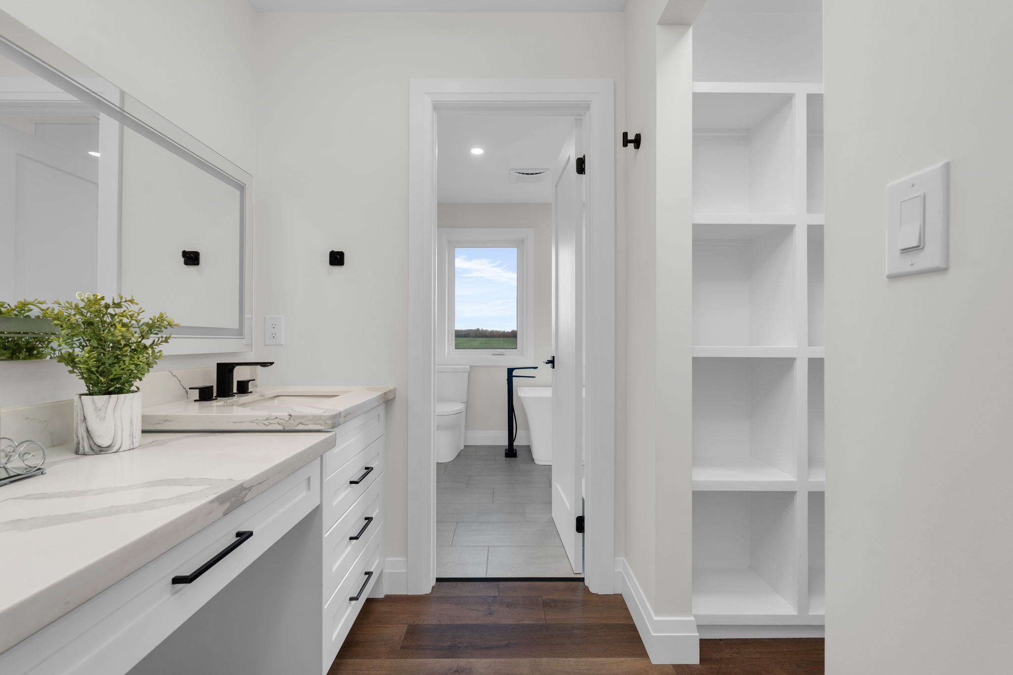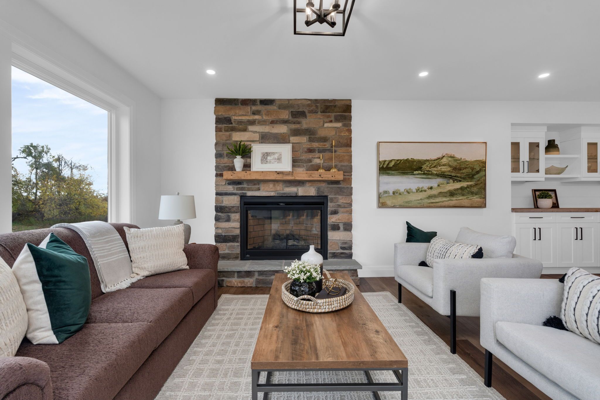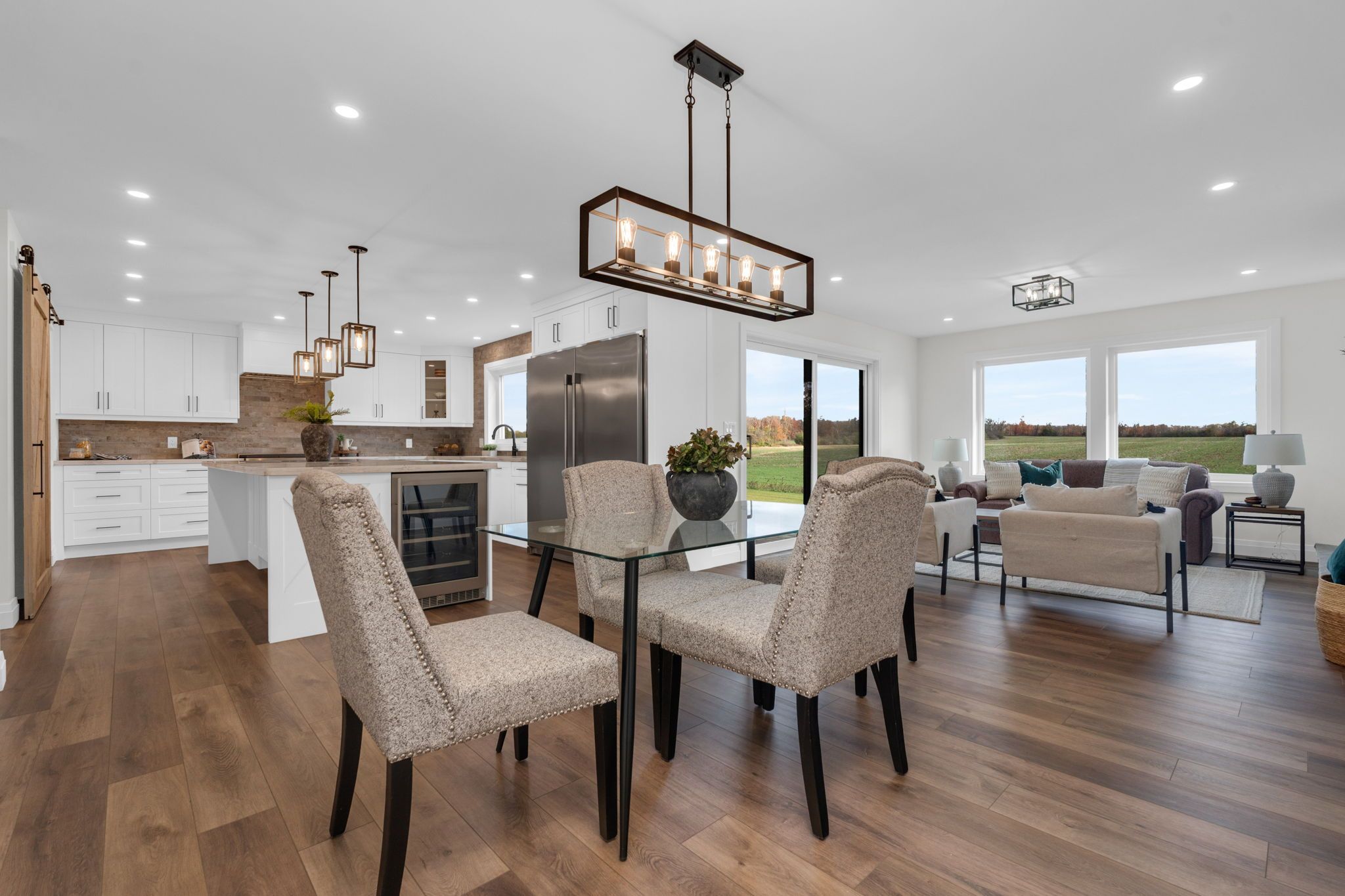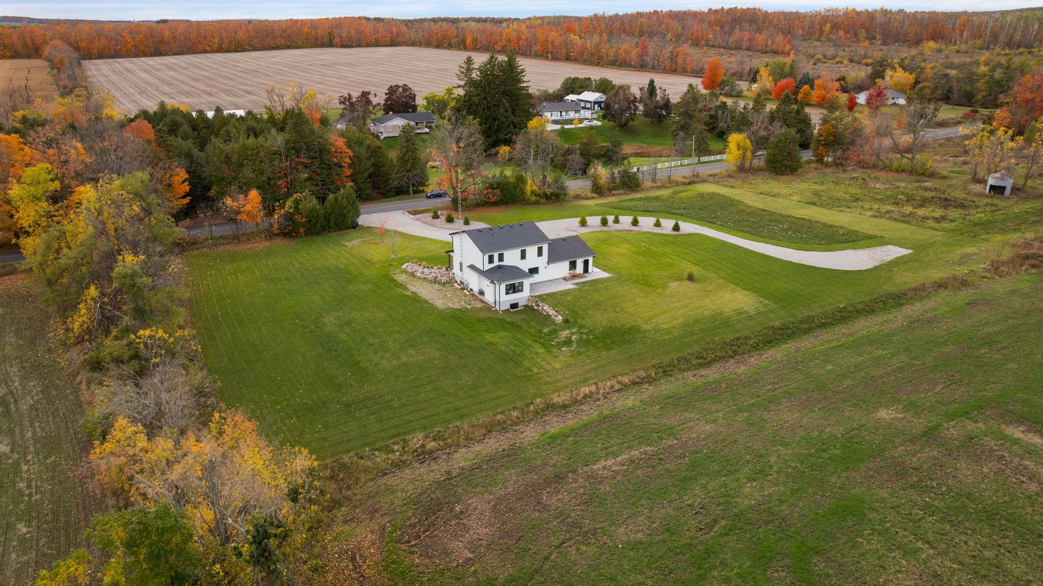 Nestled on 2 private acres, this stunning two-year-old custom-built modern farmhouse offers 2,800 sq. Ft. Of beautifully finished living space with 4+1 bedrooms and 3 +1 bathrooms. Step inside to soaring ceilings and expansive windows that flood the home with natural light and showcase breathtaking sunrises and sunsets. The chef's kitchen is a true showpiece, featuring a gas range, quartz countertops, built-in wine cooler, panel dishwasher, wireless charging stations in the island, and a charming built-in coffee bar. The open-concept living area boasts a cozy gas fireplace with a stone surround and flows effortlessly to the outdoor living space through oversized patio doors-perfect for entertaining or quiet evenings under the stars. Enjoy plenty of functional design in the mudroom and main-floor laundry, offering abundant storage and convenient access from the garage. A main-floor guest suite with a full 3-piece ensuite provides privacy and comfort for visitors. Upstairs, you'll find two primary bedrooms, each with their own private vanity rooms, plus a third room ideal for a home office or additional bedroom. The fully finished lower level, with 9-ft ceilings, is perfectly designed for multi-generational living. It features a spacious bonus room, striking custom bar with reclaimed barn board, an additional bedroom, bathroom, laundry hookups and a separate private entrance from the garage. Only two years old, this exceptional custom-built home combines modern luxury, functionality, and the quite peace of country living with quick access to hwy 11 for convenience. This is more than a property, this is a forever home.