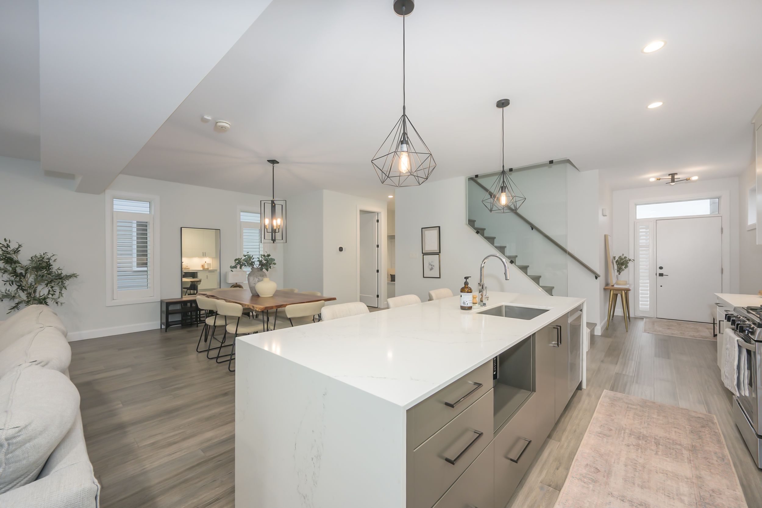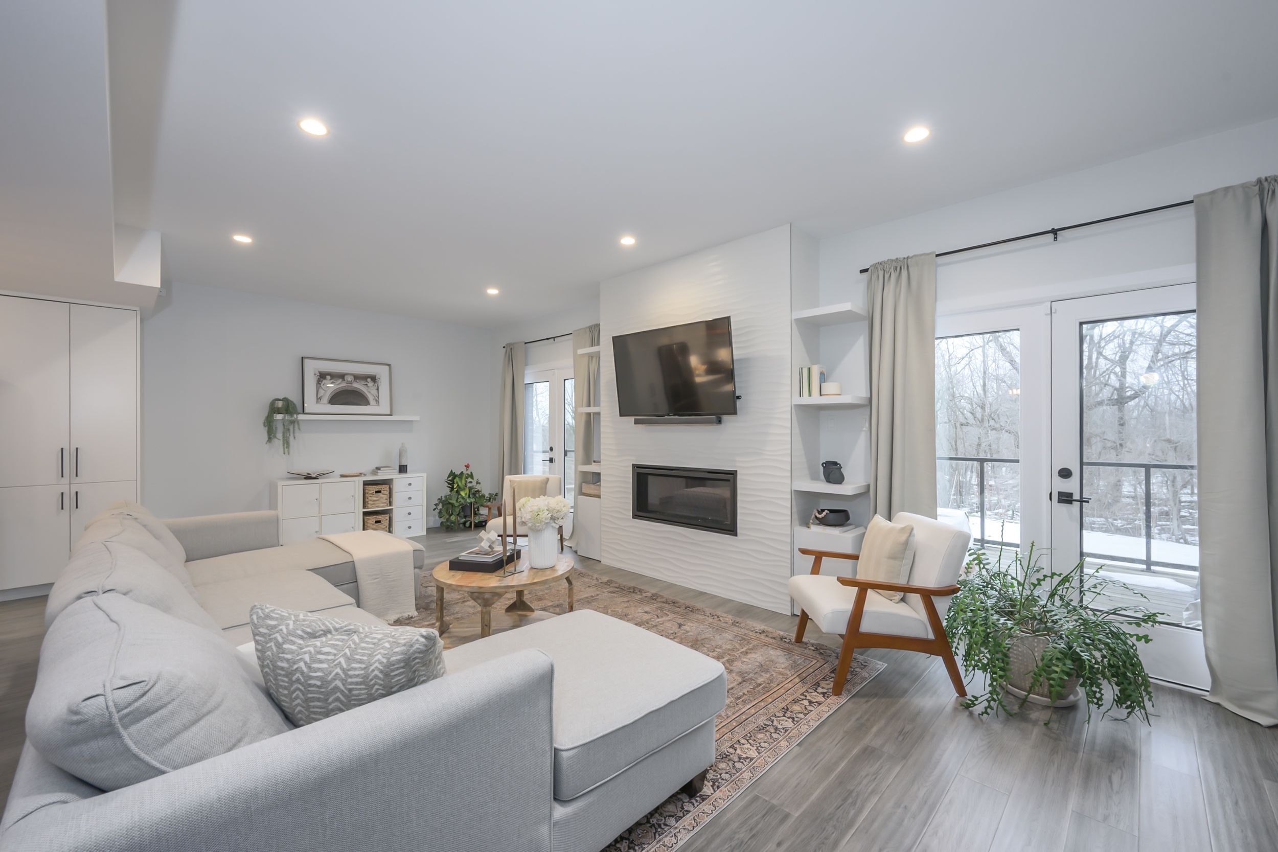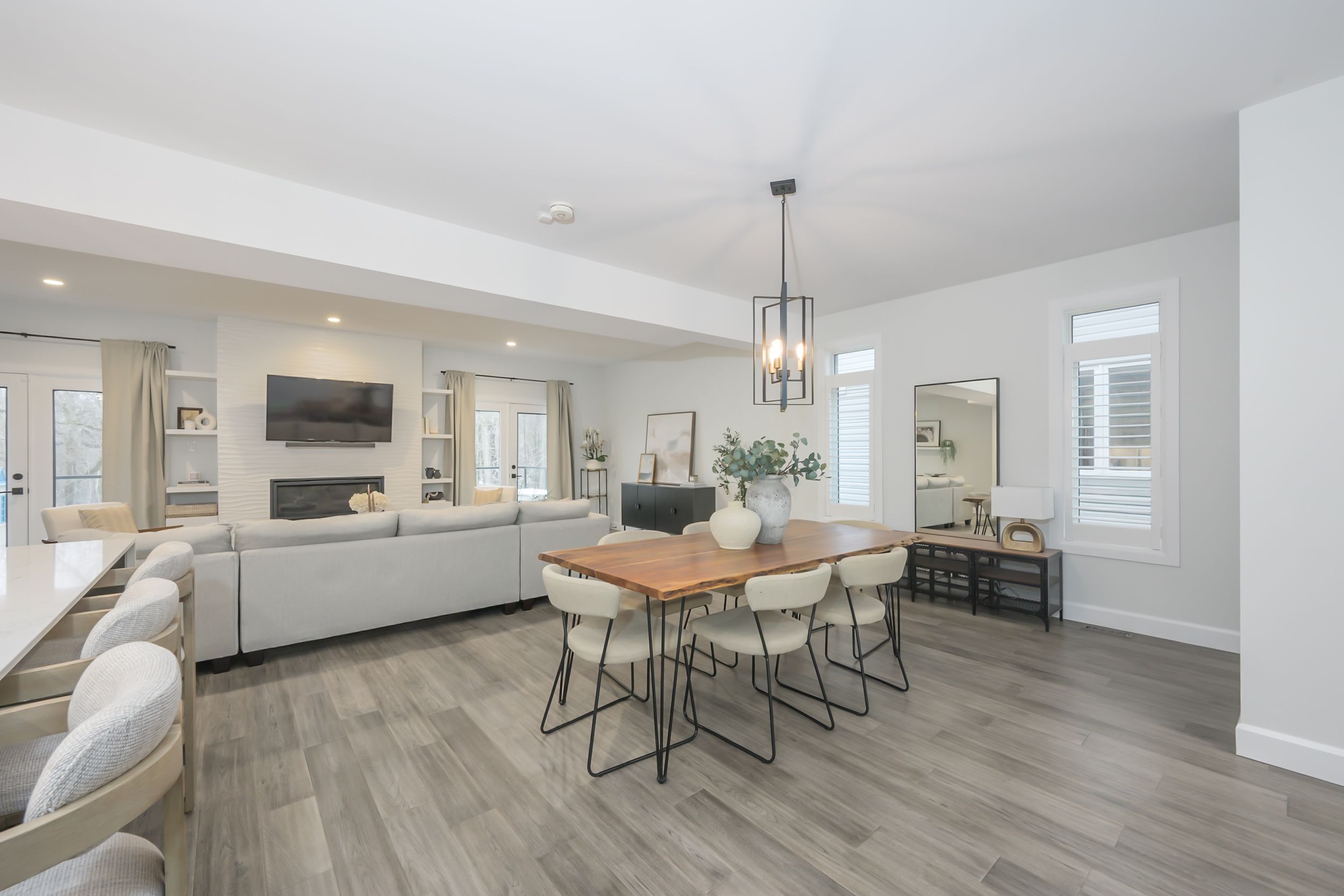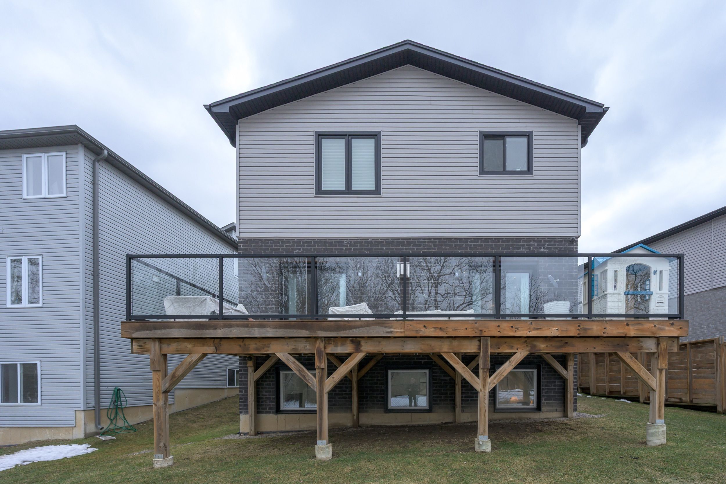 Wrapped in modern stucco and brick and backing onto protected forest in lawson estates, this contemporary residence makes an unforgettable first impression. Inside, the open-concept design unfolds with intention - a sleek gourmet kitchen, quartz counters and an oversized waterfall island anchor the space, flowing seamlessly into the dining area and living room with statement feature wall and gas fireplace. Hardwood carries through the main and upper hall, while oversized windows and double patio doors bathe the home in natural light. Step onto the 11' x 29' glass-railed deck and take in the privacy & tranquility of the forest backdrop. Capture those serene moments -morning coffee, sunset wine, and quiet evenings all feel elevated here. A custom glass and quartz staircase leads to four bedrooms and upper laundry. The primary suite offers a spa-inspired 4-piece ensuite and deep walk-in closet, while a second bedroom enjoys ensuite access, vaulted ceiling and its own walk-in. With 9' ceilings on the main and second levels, plus a bright lookout lower level with large above-grade windows, the home feels expansive throughout. The finished lower level offers exceptional flexibility - family room, guest retreat, or additional bedroom with full 3-piece bath - along with a dedicated exercise room. Walk to hyde park village for restaurants, cafés, and boutique shopping. Just 12 minutes to university hospital, western university, and ivey business school. Close to the medway valley heritage forest trail system and the sifton bog for those drawn to nature. Contemporary. Glamorous. Perfectly positioned.