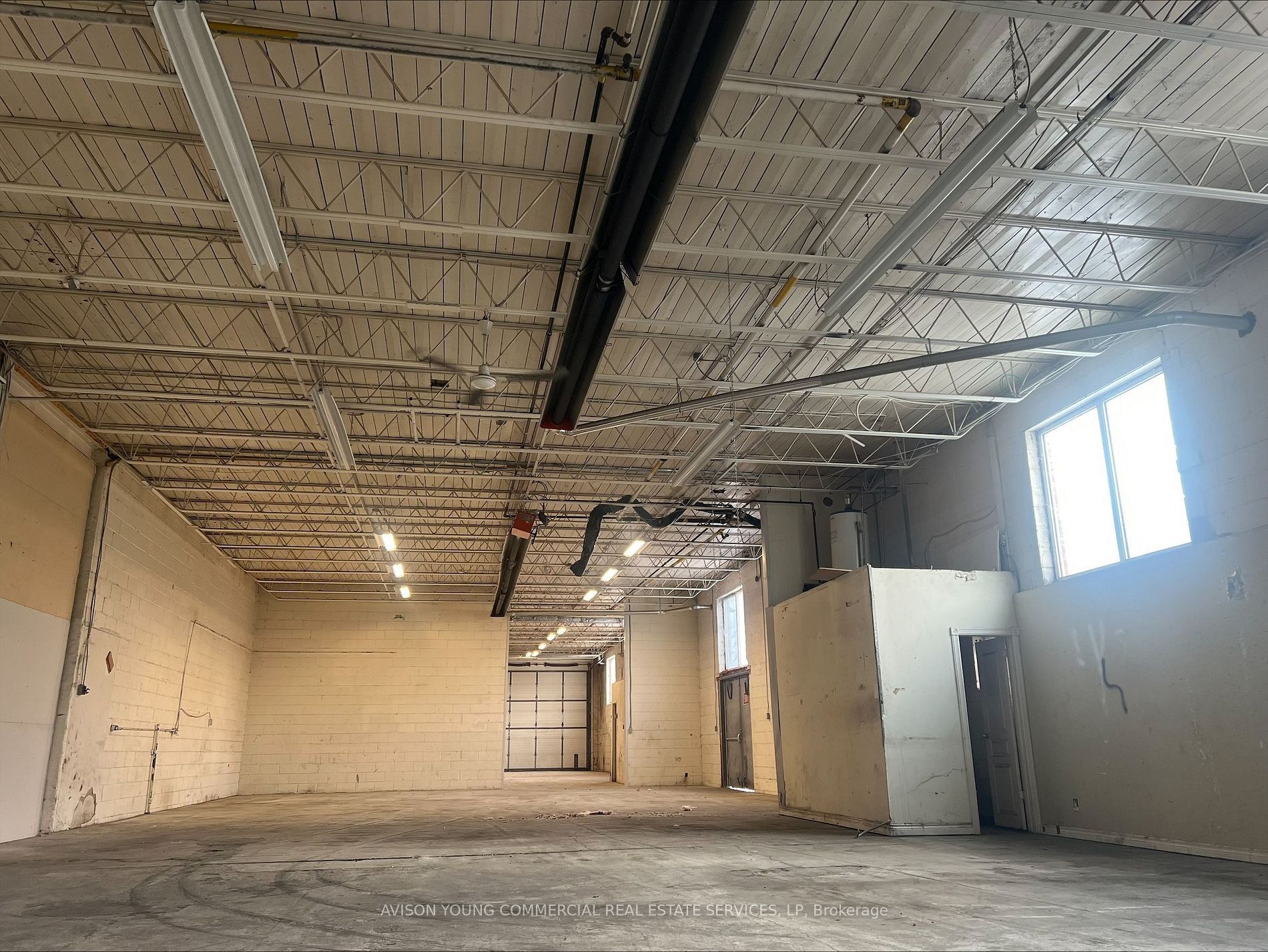 • Open warehouse space offers flexibility for various uses.