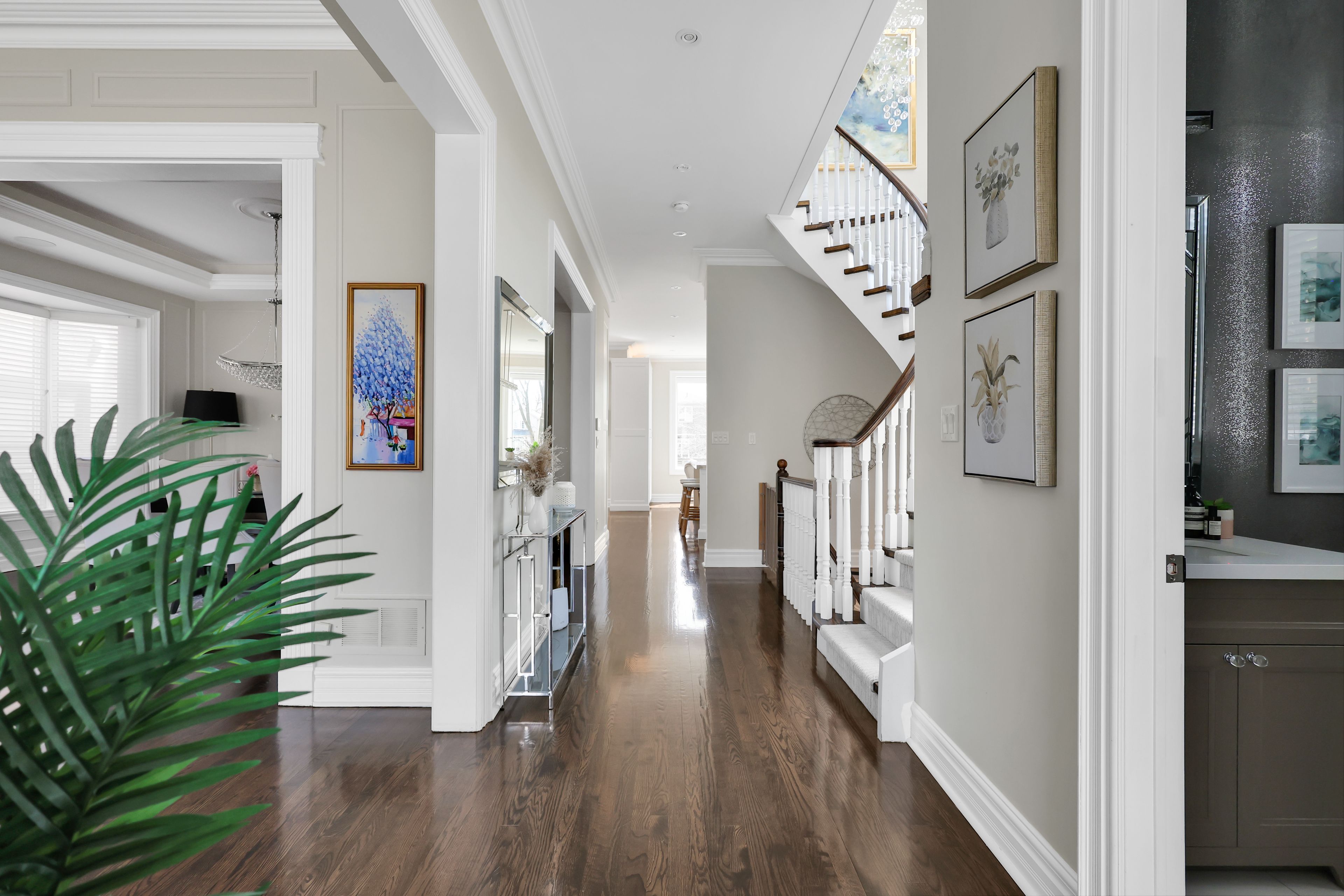 • Expansive living and dining rooms with hardwood floors throughout.