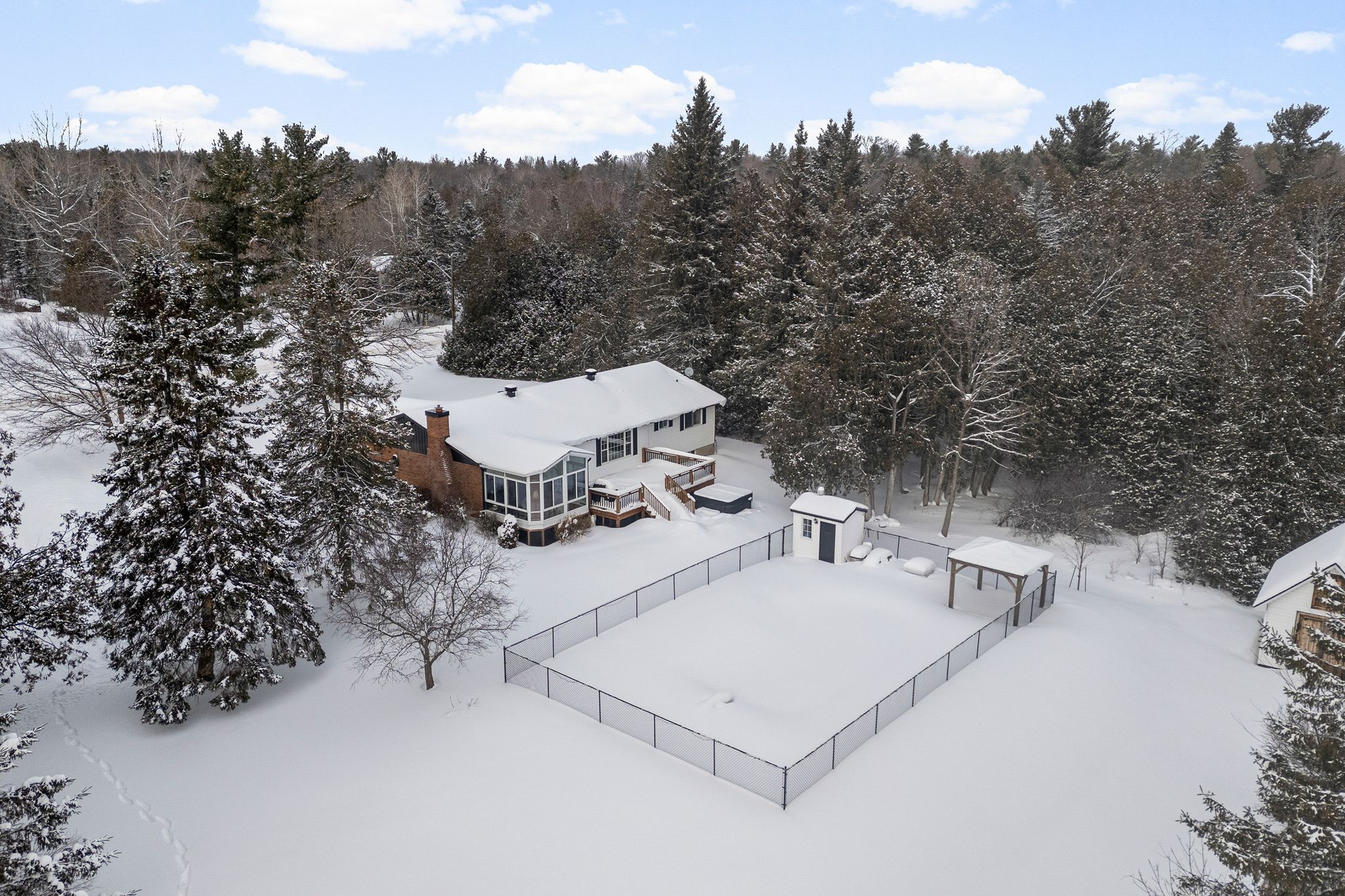 Welcome to this sprawling bungalow located in highly sought-after dochart estates, within the riverside community of braeside. Set on an impressive 2. 25 acre lot, this property offers exceptional space, privacy and peaceful country setting just minutes for the town of arnprior. The main level offers a functional layout with three generously sized bedrooms, primary bedroom with updated ensuite, main floor laundry well appointed kitchen with oversized island, open to dining room, cozy living room with natural gas fireplace leads to the show stopping sunroom which provides the perfect year round retreat- ideal for morning coffee, quiet reading, or entertaining which enjoying views of the surrounding landscape. The fully finished basement significantly expands the living space, featuring a large family room, gym area, office/den and powder room and ample storage, making it perfect for large families, hobbies or work from home flexibility. Step outside to your private backyard oasis, complete with an in-ground pool and hot tub, making this home a dream for summer living, relaxing evenings. And hosting family and friends. The expansive lot offers plenty of room to roam, garden, or simply enjoy the tranquility of the established estate community. This exceptional property combines space, comfort, and lifestyle in one of the areas most coveted neighbourhoods- an ideal opportunity for those seeking refined rural living with modern convenience.
