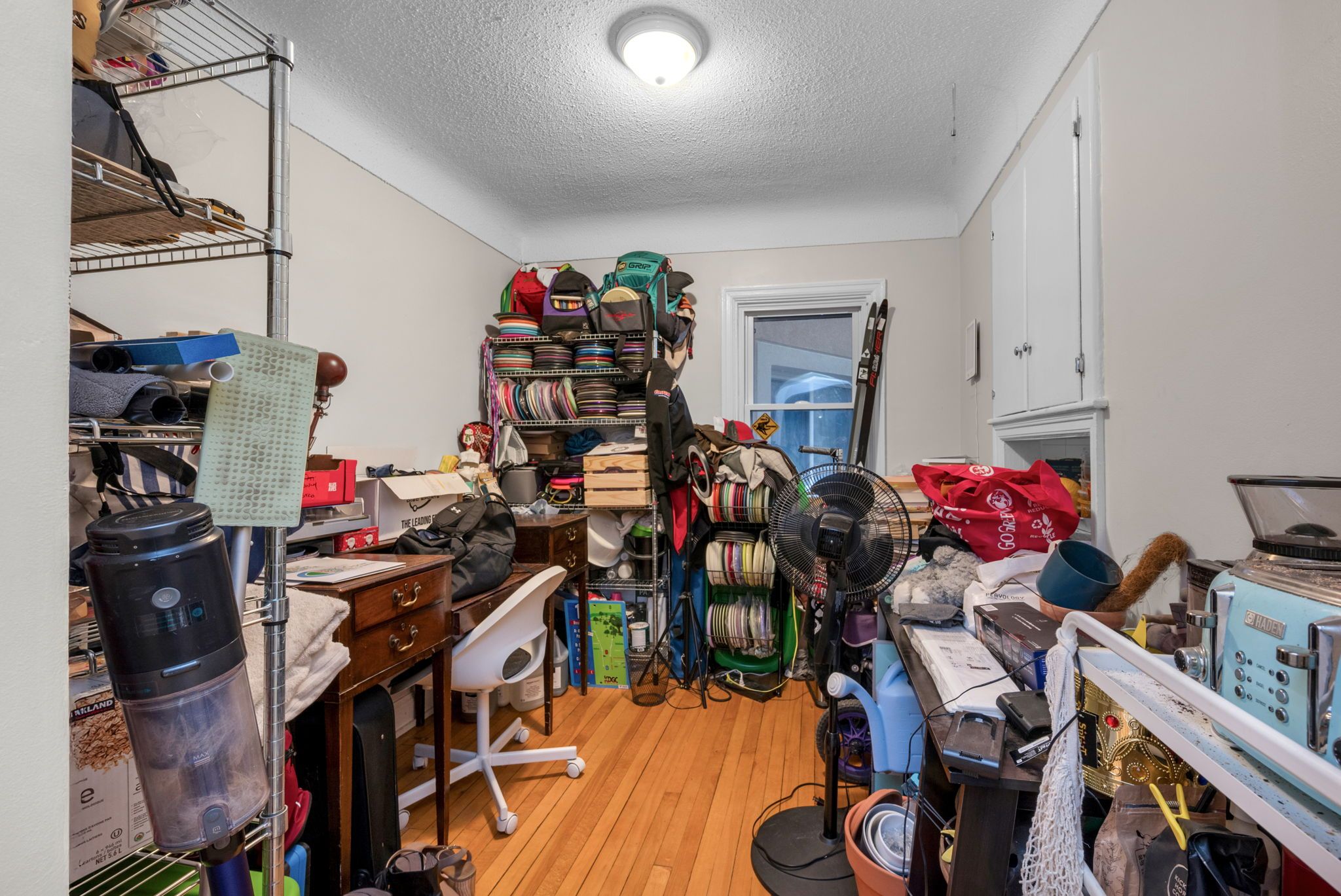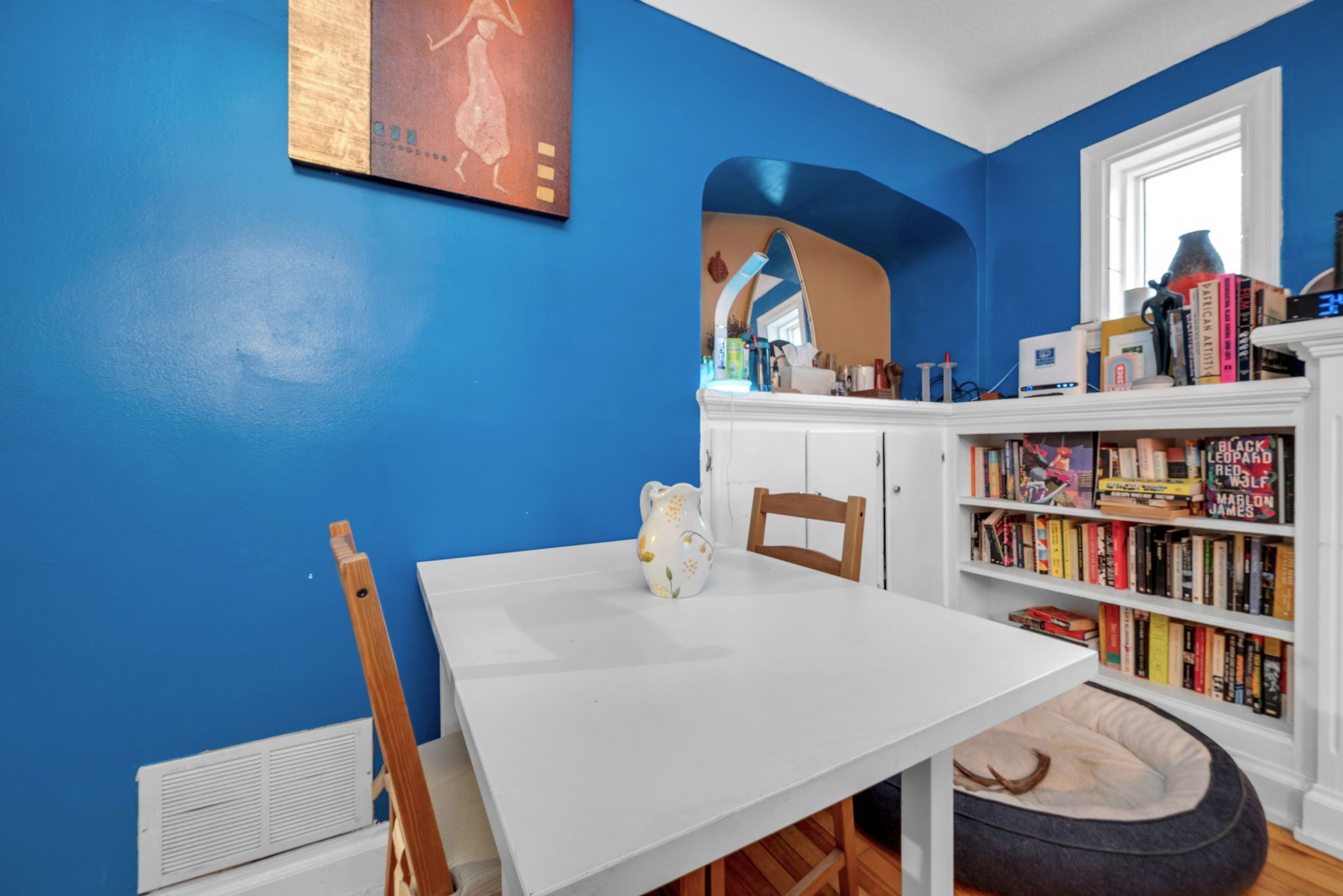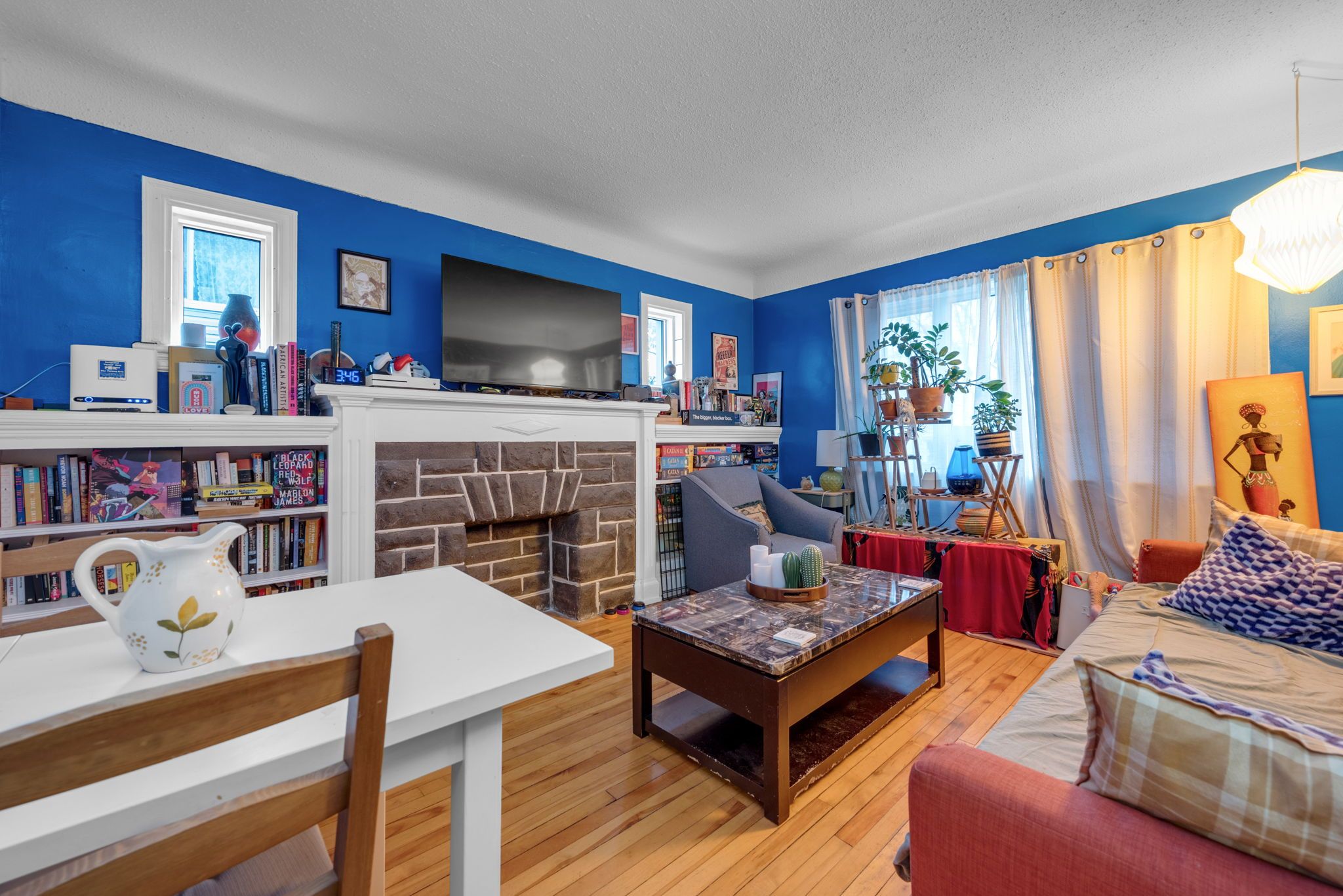 • Original hardwood floors and decorative fireplace add character and warmth.