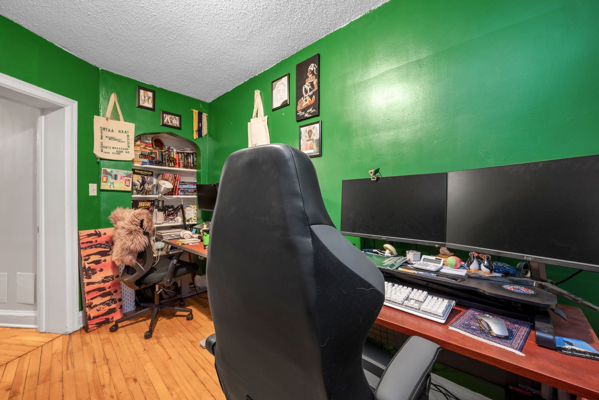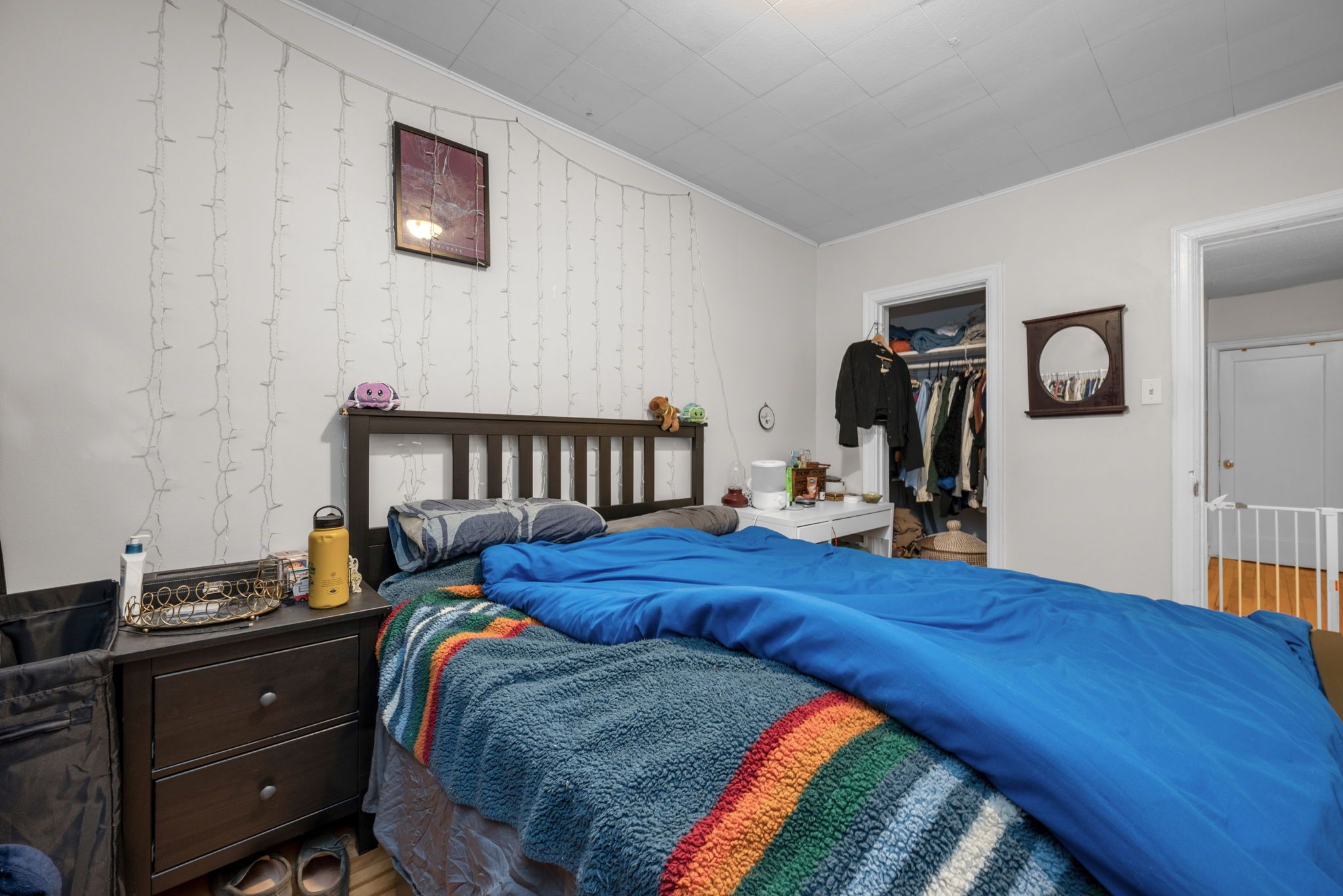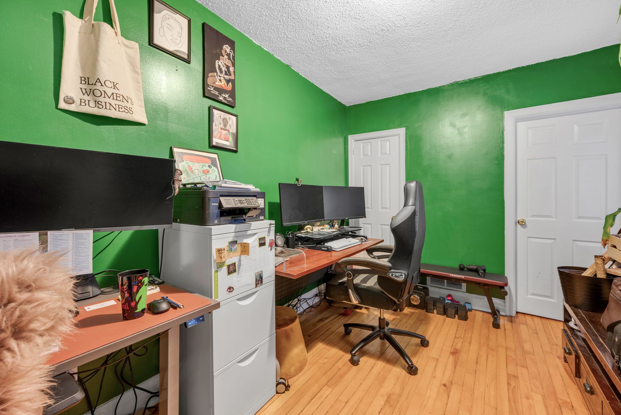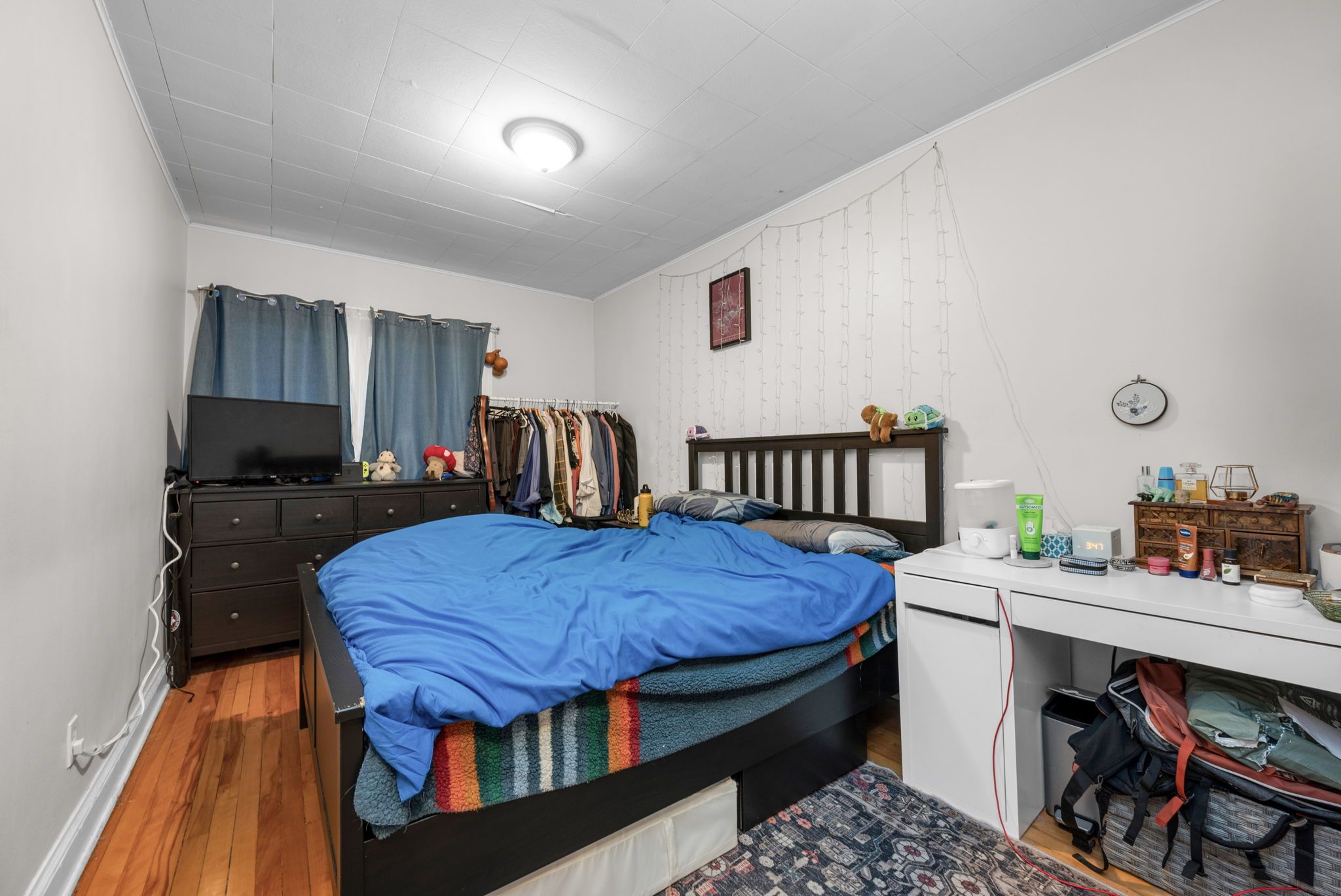 • Original hardwood floors and decorative fireplace add character and warmth.