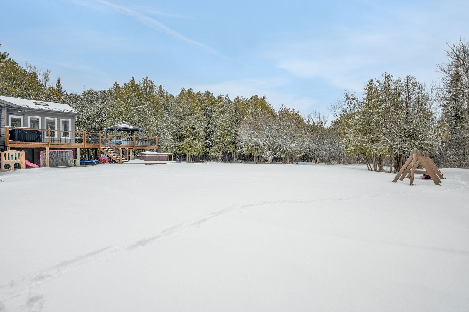 Nestled on 2. 4 acres of beautifully wooded land, this exceptional property offers the perfect blend of privacy, tranquility, and natural beauty. Surrounded by mature trees and serene views in every direction, it's a true retreat from the everyday. Inside, the home is bathed in natural light, thanks to soaring ceilings enhanced by stunning clerestory windows and skylights that create an airy, open feel throughout the main living spaces. Rich hardwood flooring flows seamlessly across the upper levels, adding warmth and timeless elegance. This thoughtfully designed home features 3 bedrooms and 2 full bathrooms- both tastefully updated with modern finishes. The fully finished basement provides additional living space perfect for relaxing or entertaining, highlighted by a striking double-sided gas fireplace that adds both charm and comfort. Recent updates offer peace of mind, including new windows (2022) and upgraded attic insulation (2022), improving both efficiency and comfort year-round. Eavestrough (2022), roof 2017, furnace 2013 and skylights 2014/2015 (approx). New pressure tank, water softener and sulfur tank (2022). A new tesla 2 car charger and automatic garage door opener. A rare opportunity to enjoy wooded privacy, beautiful natural light, and exceptional living space on a stunning 2+ acre property.