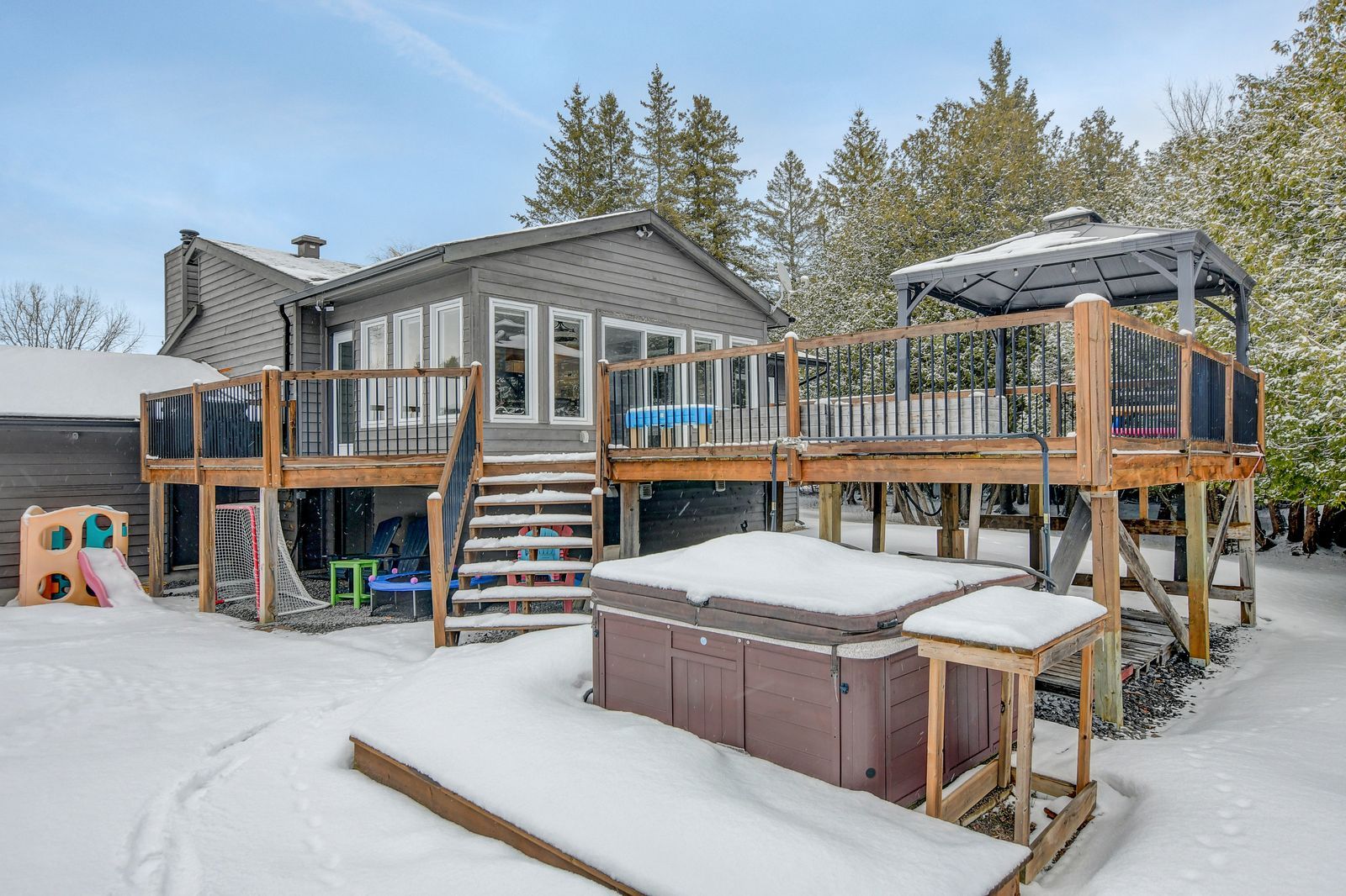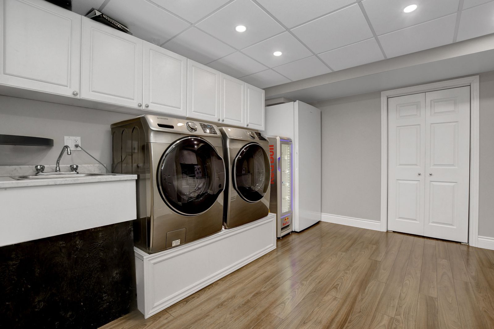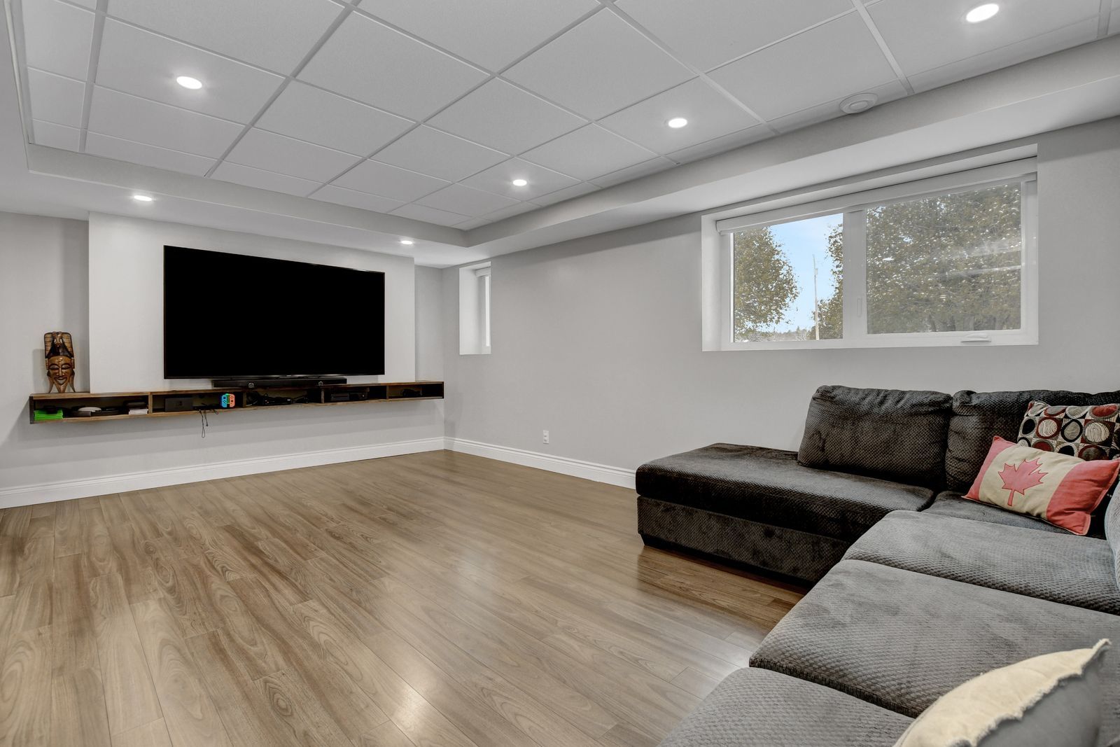 • Fully finished basement with a cozy double-sided gas fireplace.