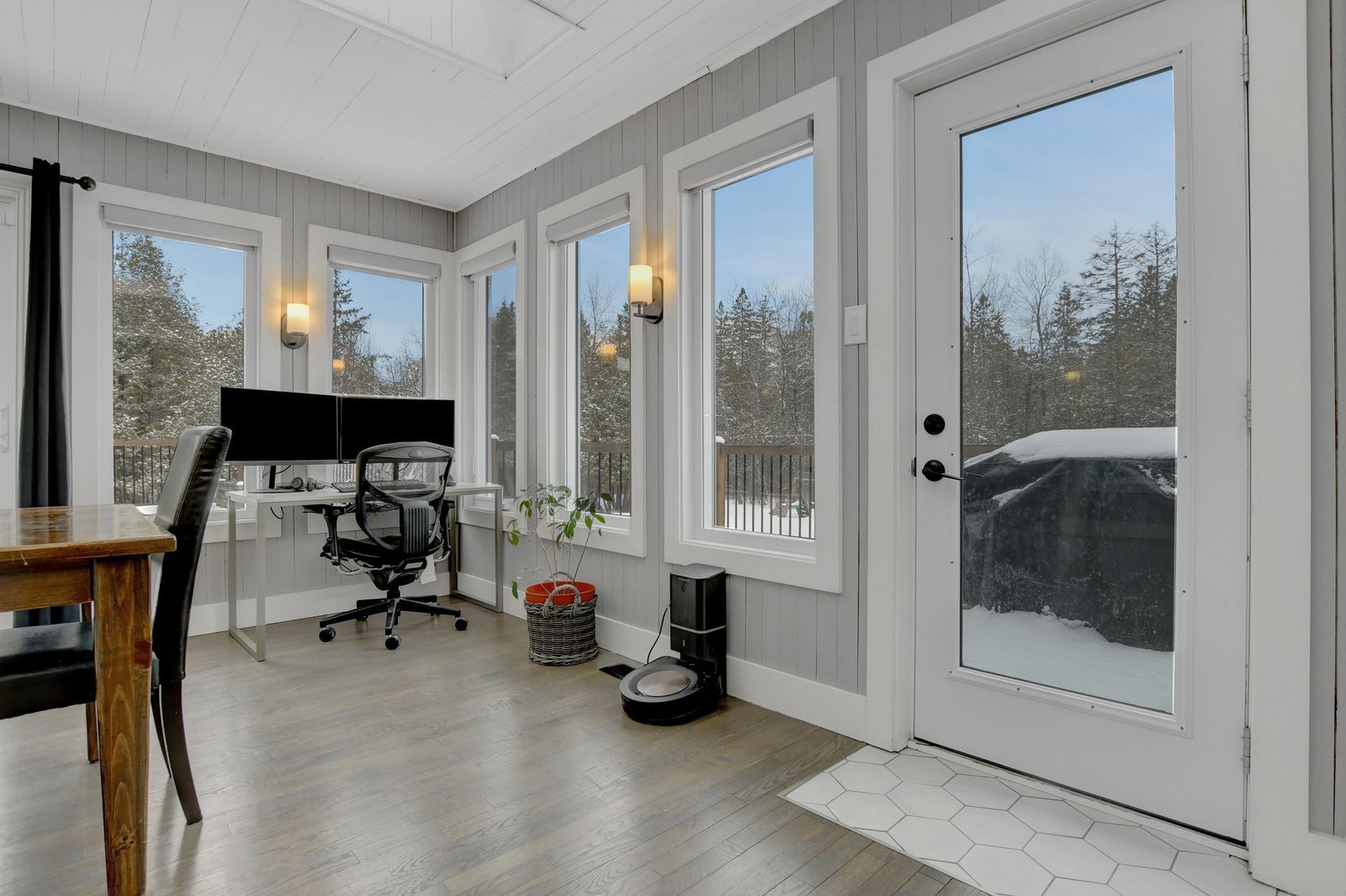 • Bright interior with soaring ceilings and abundant natural light.