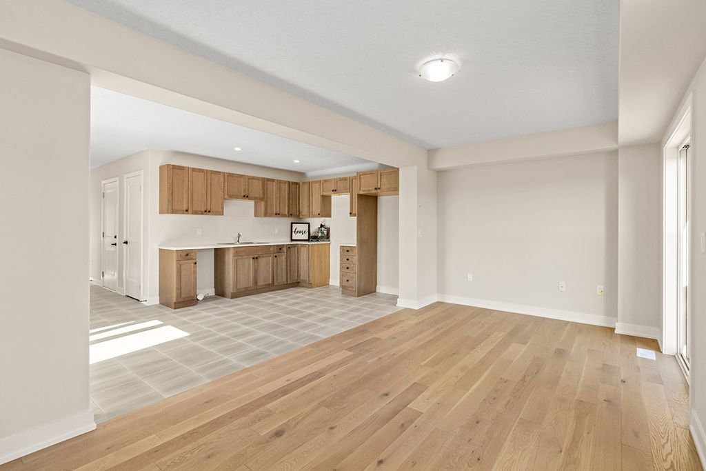 • Open living room with hardwood floors and patio door to yard.