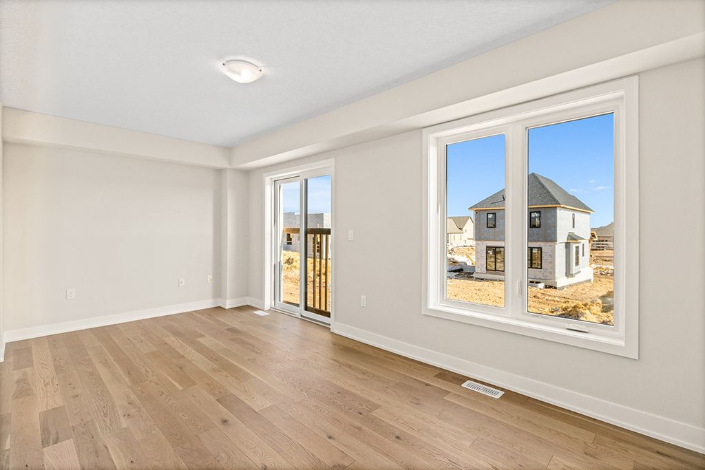 Experience the best of both worlds at 131 fitzgerald st; the ease of townhome living with the rare feel of a fully detached home. This never-lived-in, end-unit devonsleigh homes craftsman villa is a true standout, connected only by the garage, so you'll enjoy no shared living walls and exceptional privacy, something rarely found at this price point. Bright, airy, and filled with natural light from three sides, this home offers a fresh, untouched canvas ready for your personal touch. Step inside to discover soaring ceilings, hardwood flooring, modern finishes, and a thoughtfully designed open-concept layout that feels both stylish and welcoming. The spacious great room flows effortlessly into the kitchen and dining area, with walkouts to the yard-perfect for entertaining or quiet evenings at home. Upstairs, retreat to your private primary suite with walk-in closet and ensuite, while two additional bedrooms offer flexibility for family, guests, or a home office-all bathed in natural light. Set on a quiet street in a fast-growing community, this home delivers a lifestyle of comfort, privacy, and simplicity, just moments from parks, schools, and everyday essentials. Brand new. Never lived in. No compromises. This is your opportunity to own a home that truly feels detached, without the detached price.