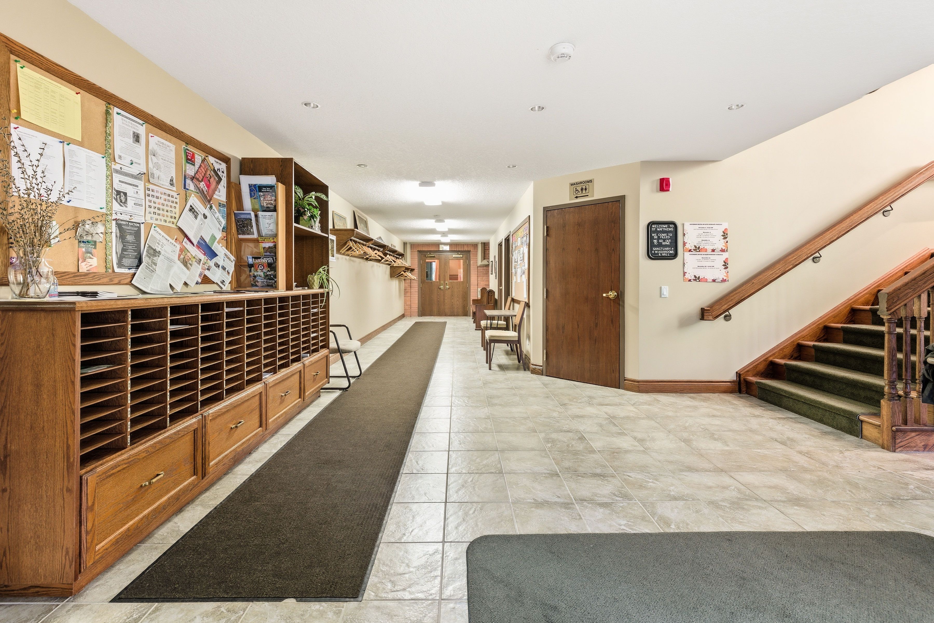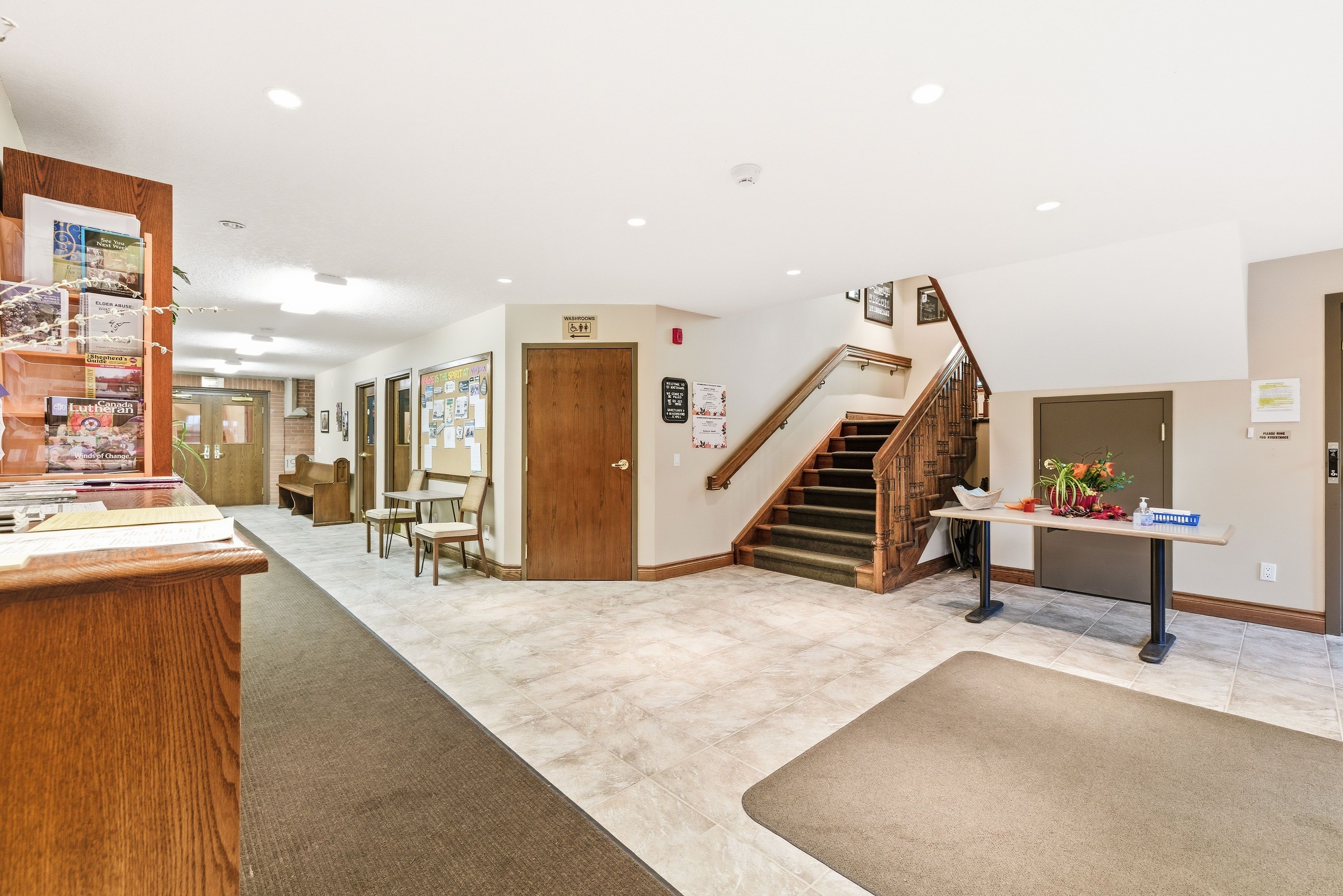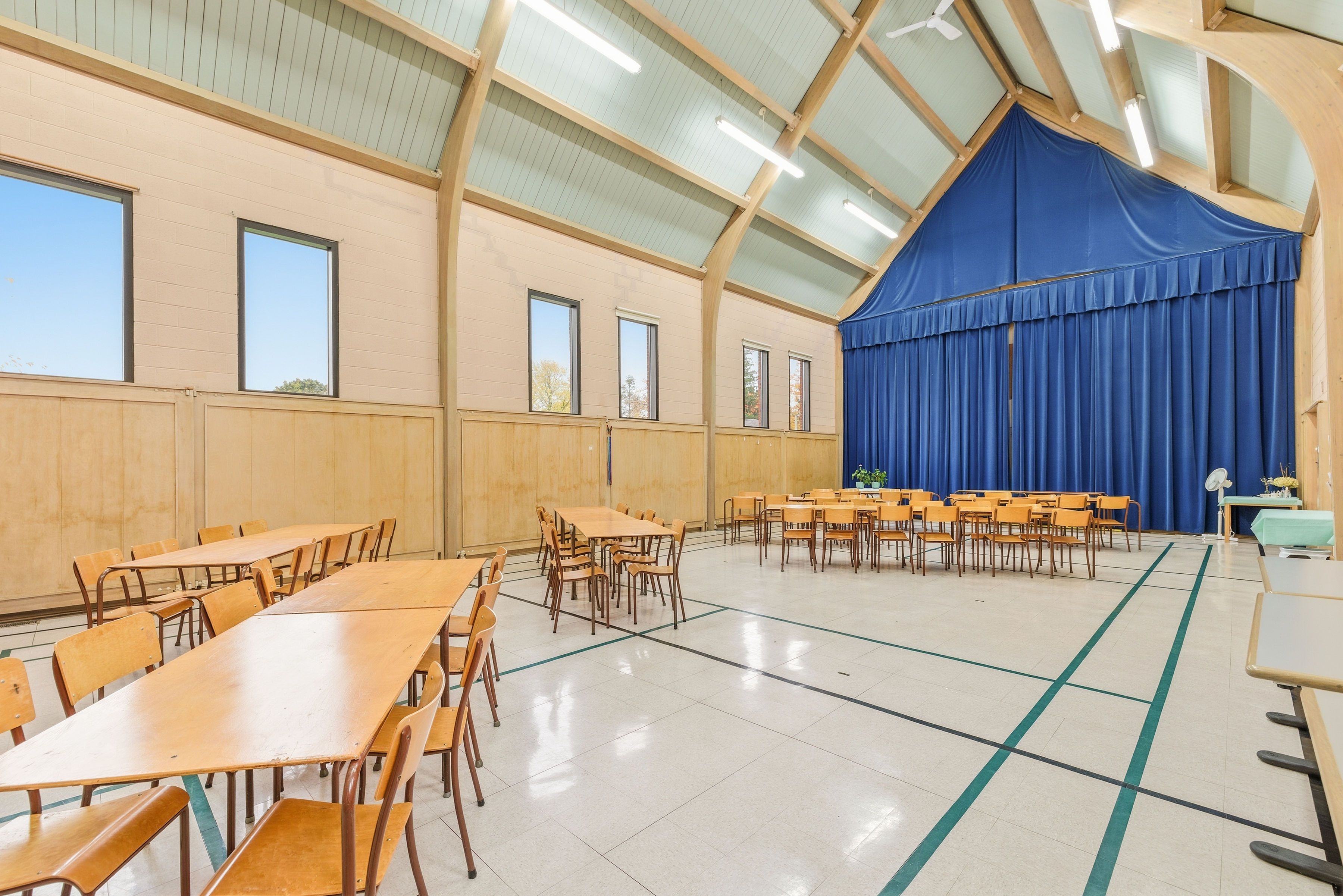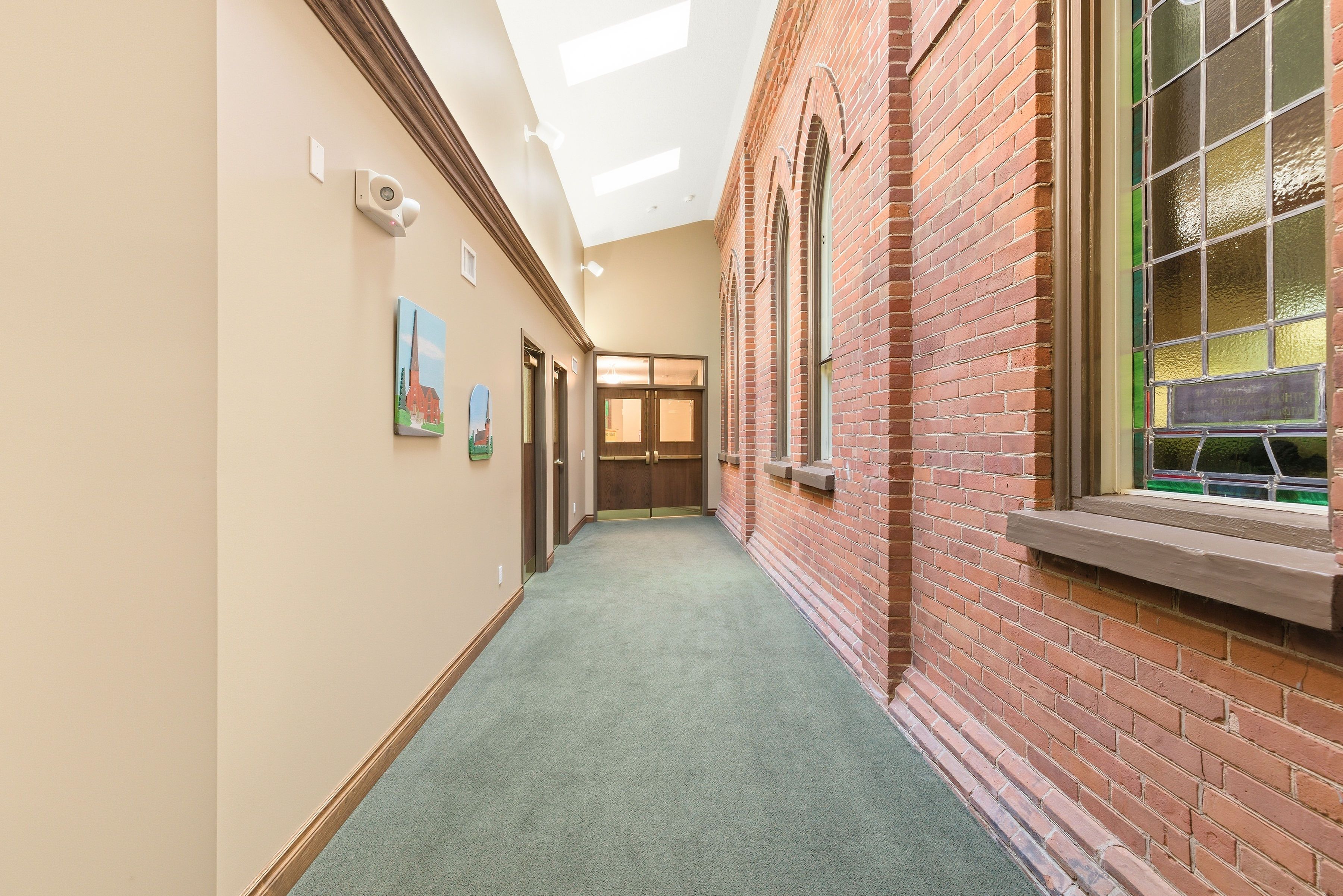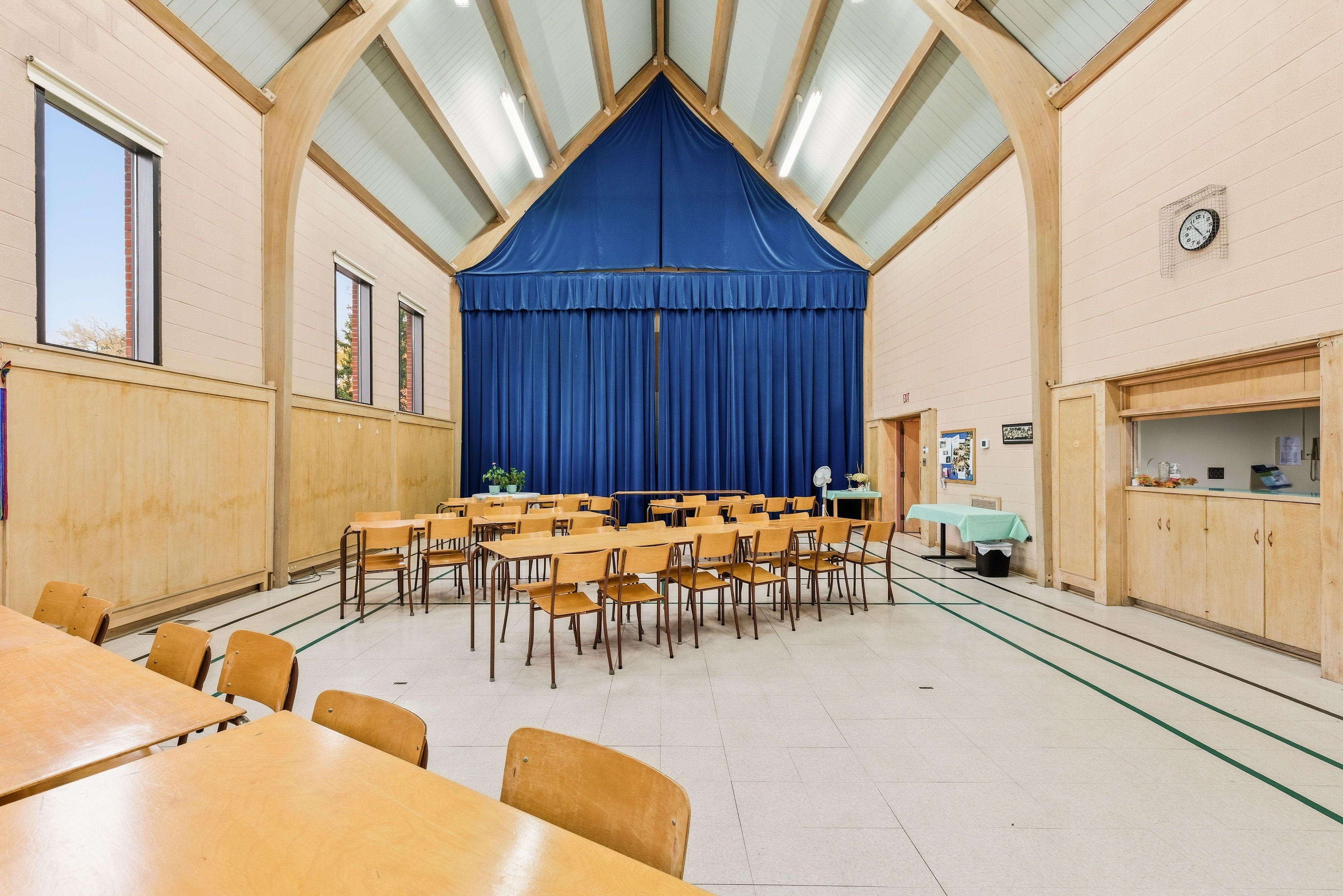 Rare and versatile leasing opportunity at the historic st. Matthew's lutheran church in the heart of conestogo. Situated on a sprawling and scenic lot, this landmark property offers flexible space configurations ideal for a day care centre, private school, health centre, community hub, and more. The well-maintained facility features a mix of large open-concept areas, including a lower-level community room with private offices and a dedicated hall/gymnasium featuring bright windows and unique built-in chalkboards that fold into the walls for maximum versatility. Modern conveniences include a large kitchen, multiple washrooms, and an impressive main foyer. Benefit from extensive green space-providing ample room for secure outdoor play areas, plus a dedicated parking lot and quiet street access for convenient parking, pick-up, and drop-off. The property is currently zoned for institutional use, permitting day care and similar community uses (tenant to verify compliance for their specific use). Tenants are responsible for all zoning verification, ministry of education (moe) licensing, and any property tax reassessments. Bring your vision to this tranquil and welcoming community setting! Base rent listed is a nominal placeholder only-contact listing agent for details.