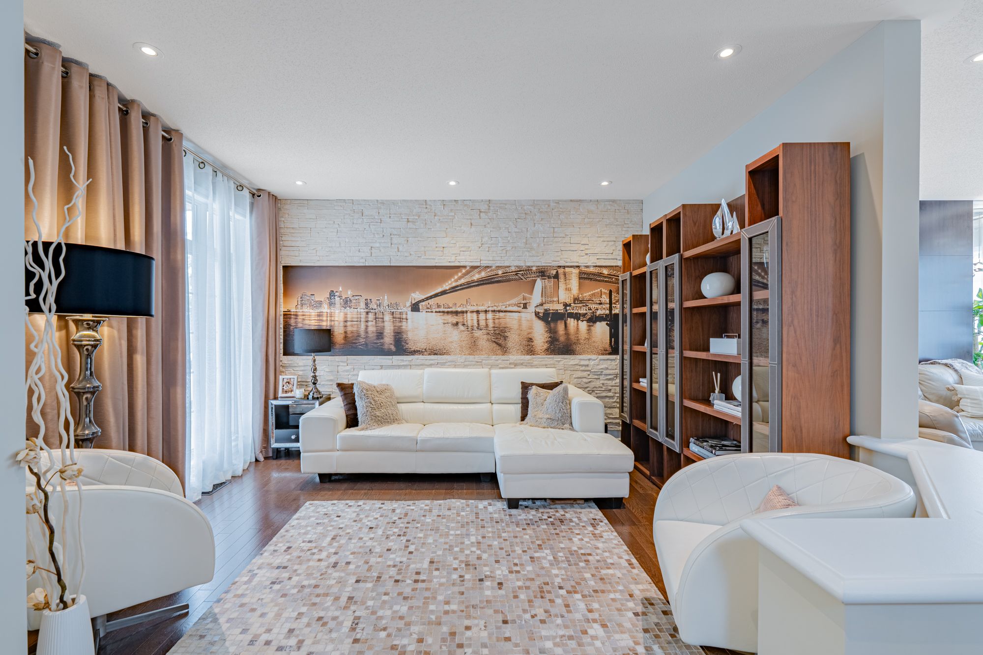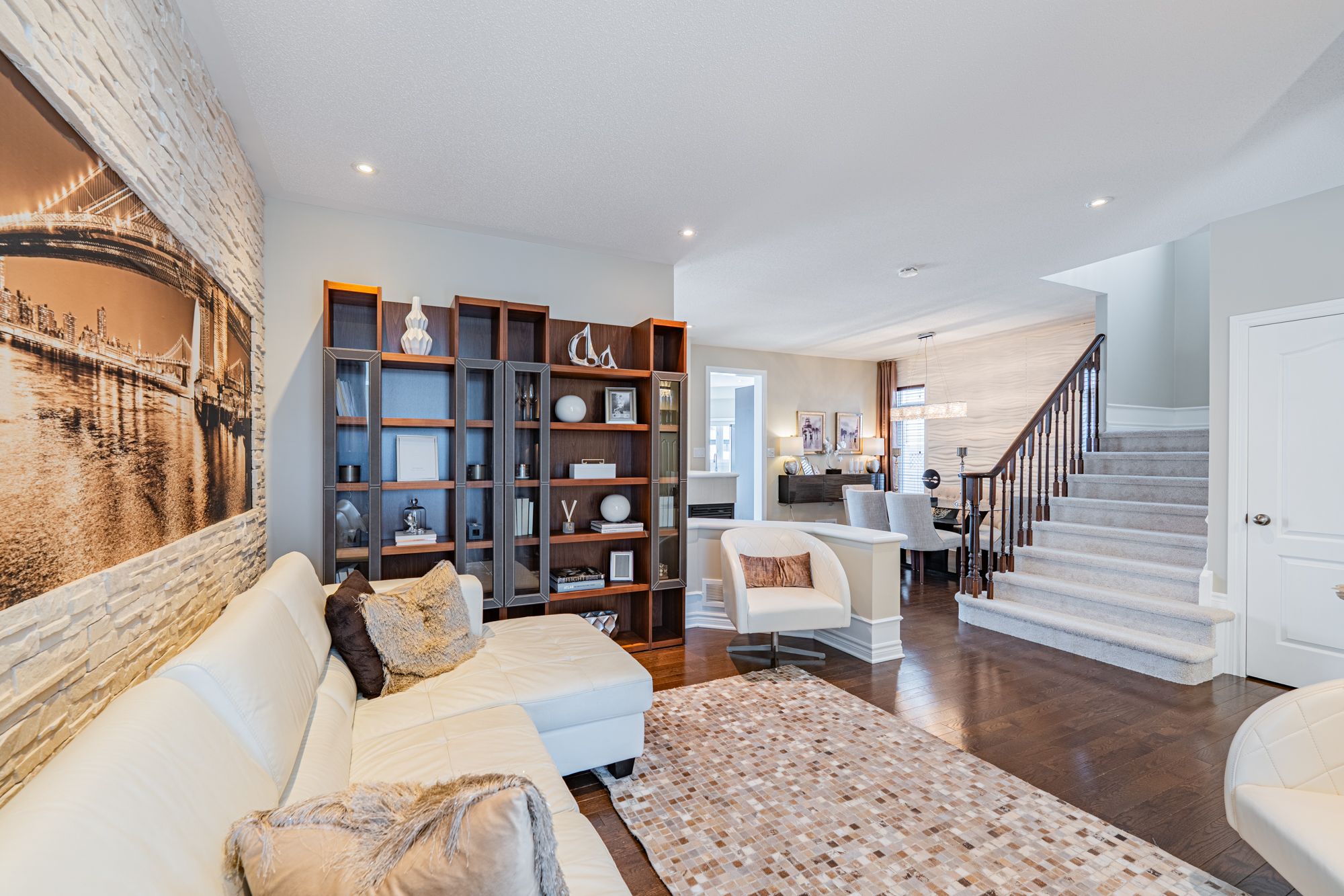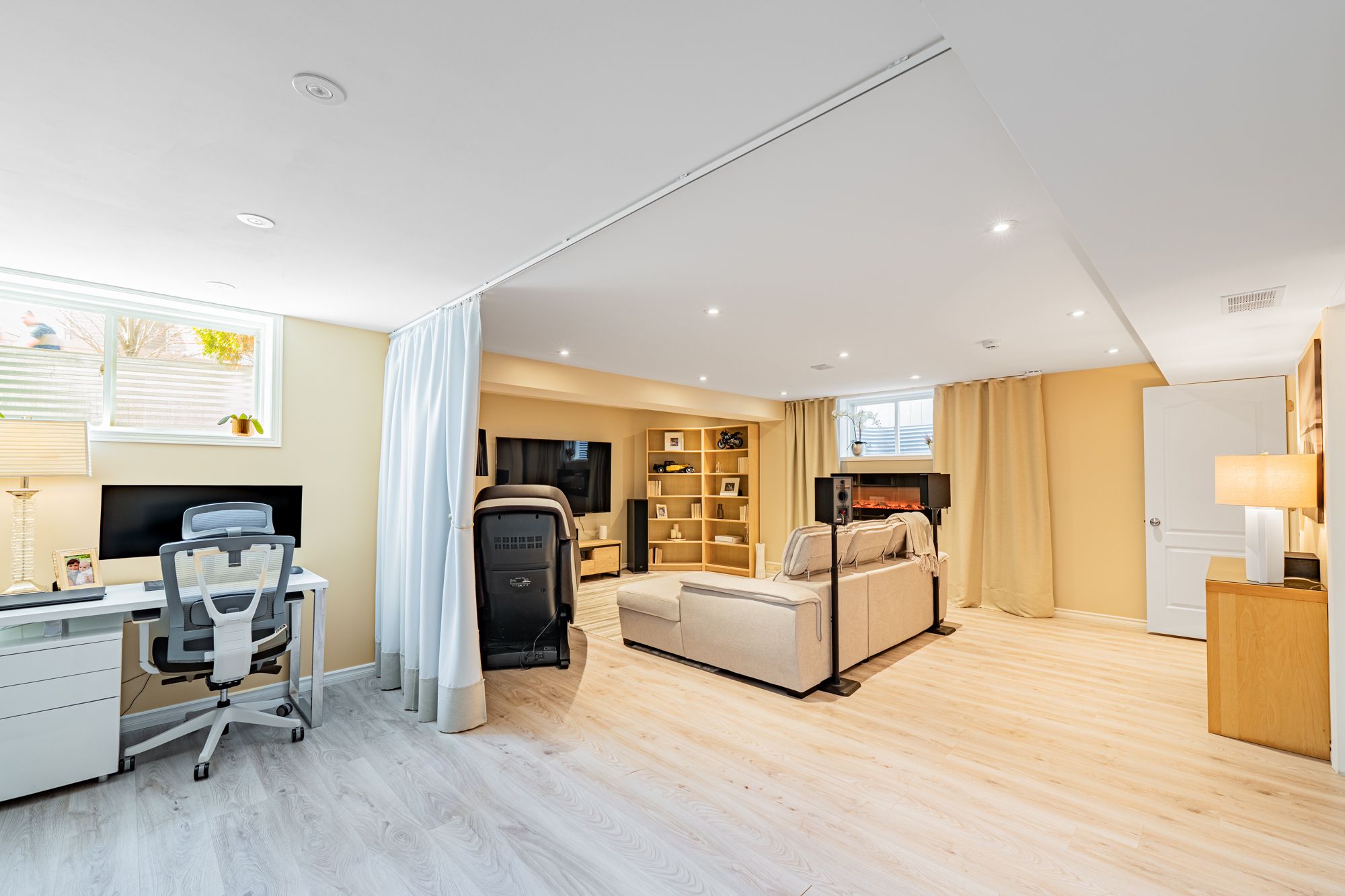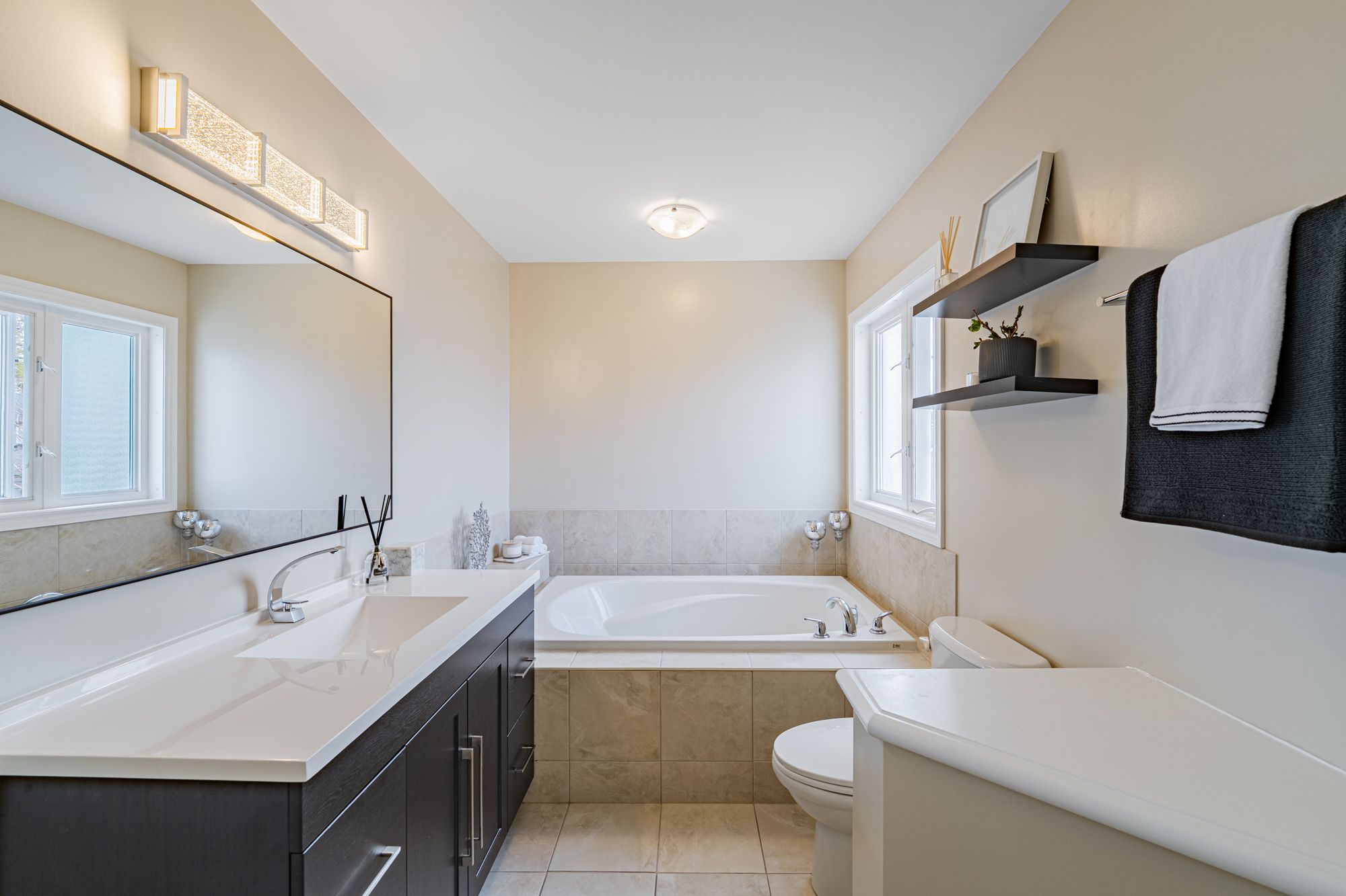 • Four bedrooms and three and a half bathrooms across three functional levels.