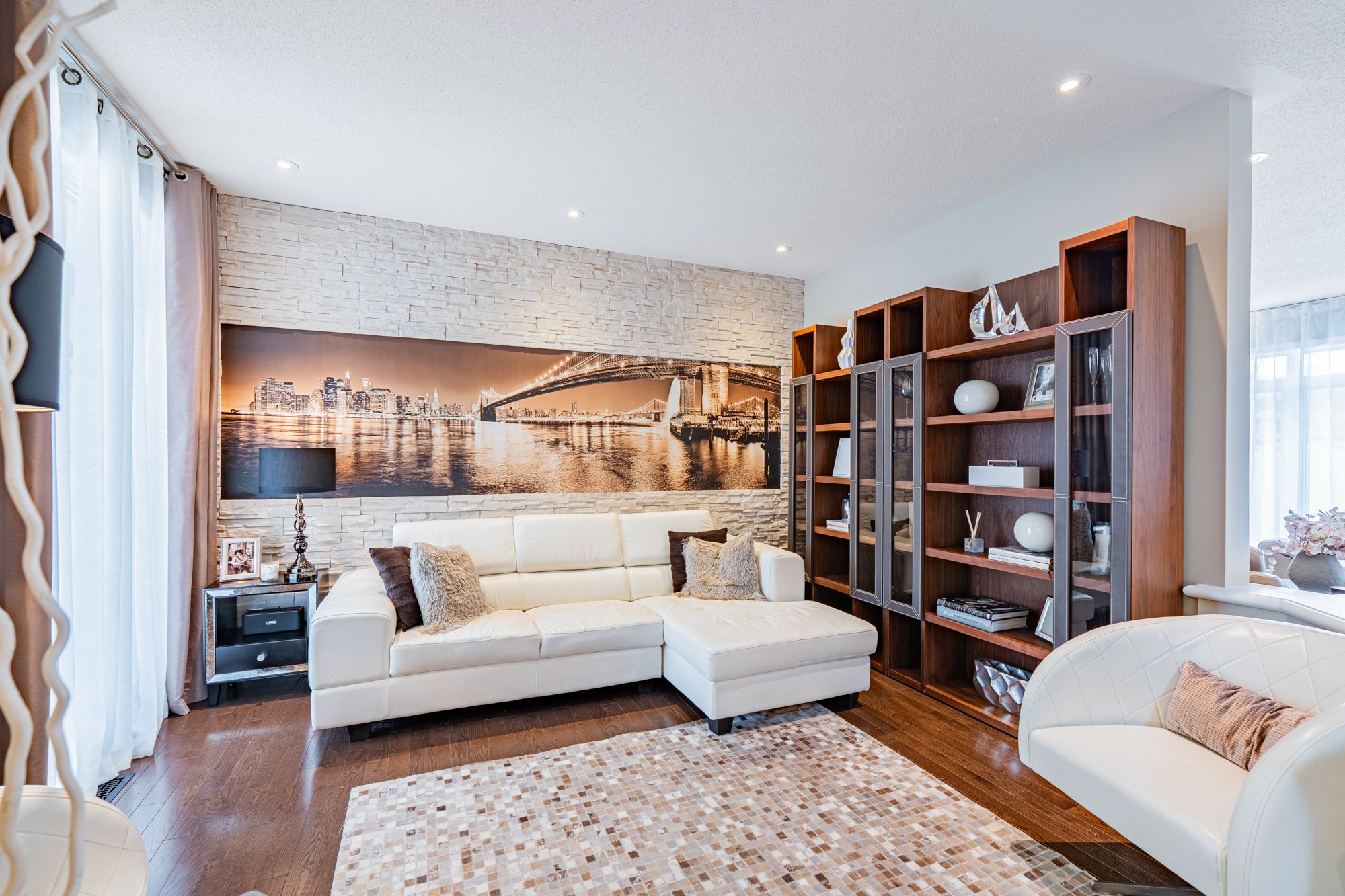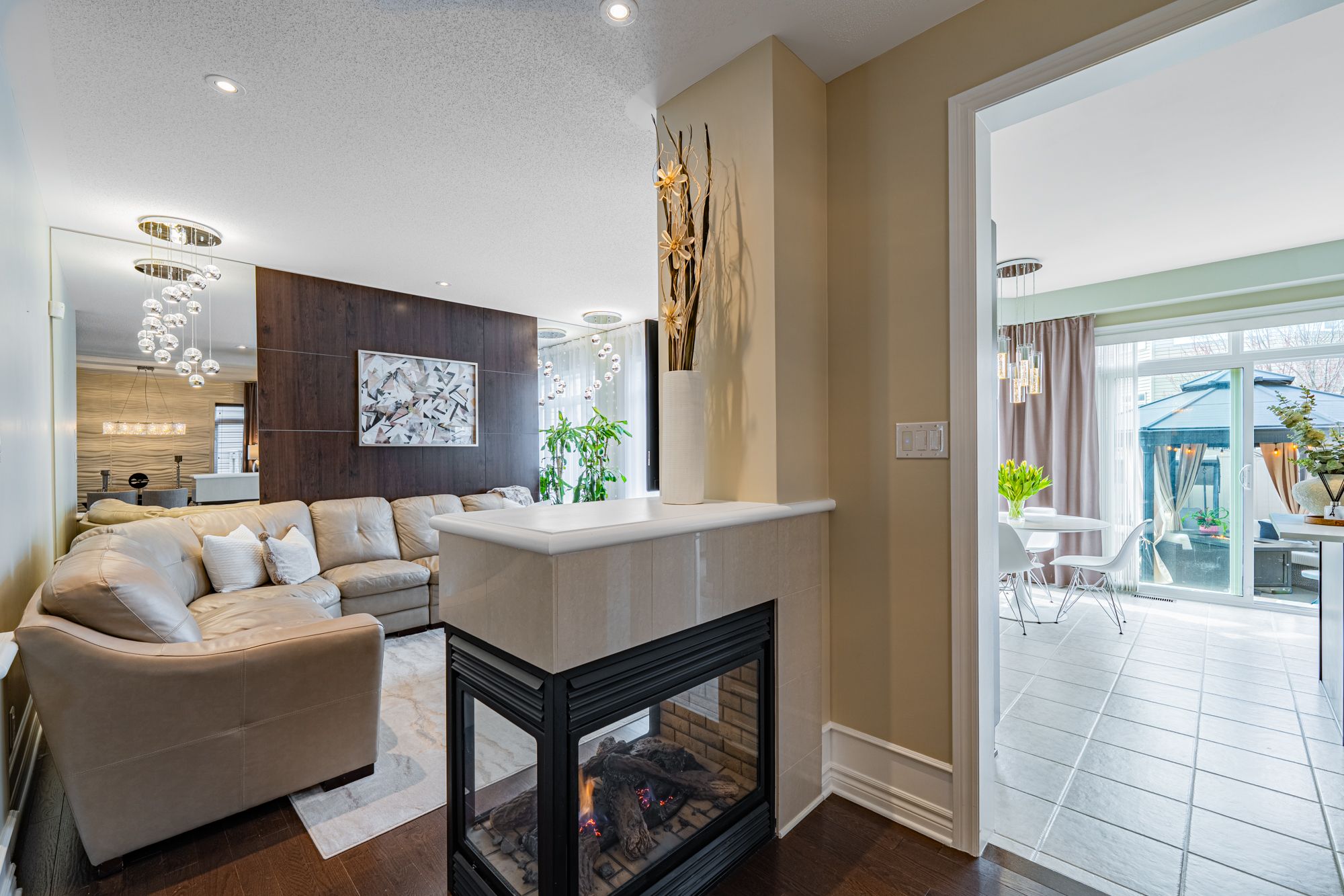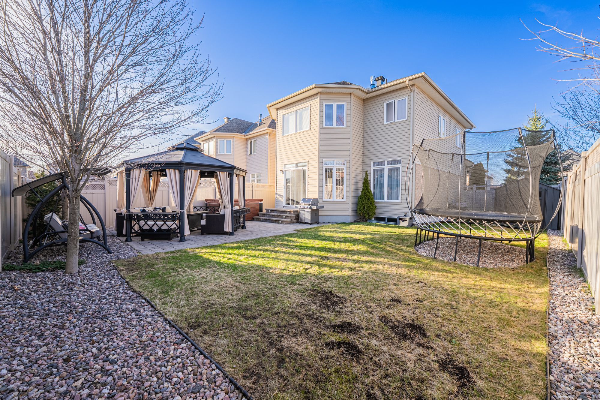 A immaculately maintained urbandale 35' mendocino model on a premium corner lot in family-friendly bridlewood! From the front yard to the driveway, to the front entry, the pride of ownership is obvious - this is one of the best maintained homes that anyone could ask for: beautiful, artistic, and exceptionally functional, with every detail designed for everyday living. This home offers 4 bedrooms and 3. 5 bathrooms across 3 floors including a fully finished basement. Built in 2011 to r-2000 standard, it's an energy-efficient home with superior air quality and a solar-ready rough-in already in place. The main floor is laid out well, with a living room at the front and a family room at the back, separated by a three-sided gas fireplace that anchors the space. There's also a formal dining room and a sunny breakfast area. The kitchen features shaker cabinets, soft-close cabinetry, quartz countertops, a mosaic backsplash, and a pantry with four large pull-out shelves. Upstairs, the primary suite spans the full rear of the home; it has a walk-in closet with a full custom built-in organizer system, and an updated ensuite. All three additional bedrooms are well-proportioned and have their own closet systems. A convenient second-floor laundry complete the level. The finished basement adds a thoughtfully designed rec room, a home office space, a mini gym area and a full bath. The interior walls in the basement have extra soundproofing from the mechanical room. Whole-perimeter security system installed. Doorbell camera included. A fully finished, insulated, and freshly painted garage, complete with a smart wi-fi garage door opener and integrated video security. Outside, the corner lot backyard is a true retreat with interlock, an octagon gazebo, a 90-jet hot tub, a springfree trampoline, and a storage shed - with mature trees providing privacy and sunshine all day long. Steps to ncc trails, top-rated schools, and all the amenities kanata south has to offer.