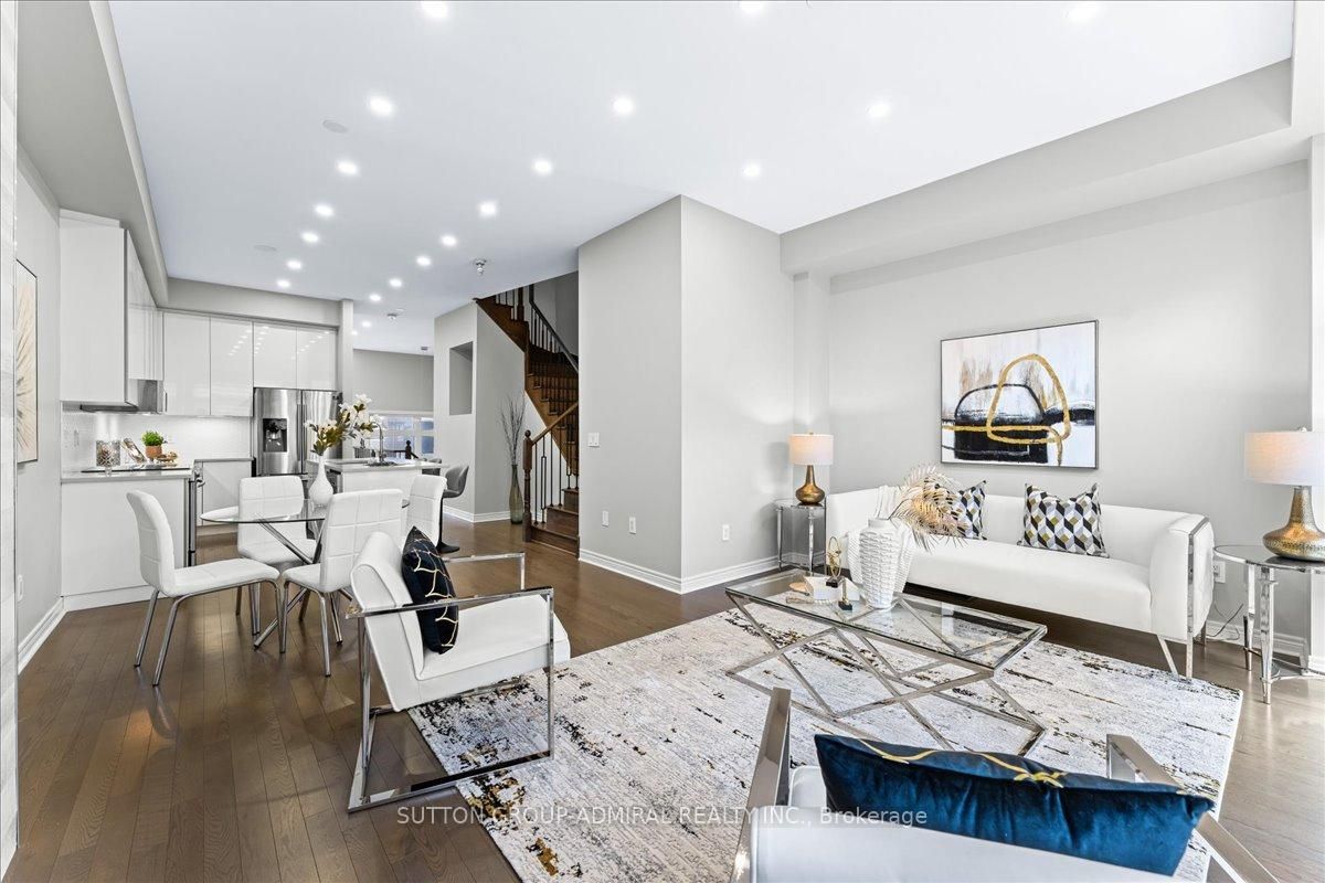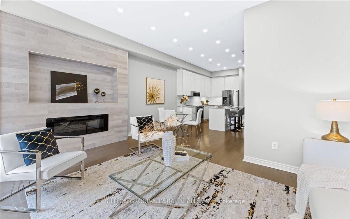 Like-new luxury townhome steps from lebovic campus community centre welcome to this stunning, like-new luxury townhome built by madison homes, perfectly located just steps from the lebovic campus community centre. Featuring a bright and spacious open-concept layout, this home offers 10-foot ceilings on the main floor and 9-foot ceilings on both the ground and second levels, creating an airy, upscale feel throughout. Thoughtfully upgraded and freshly painted, the home showcases pot lights throughout, zebra blinds on every window, and a cozy electric fireplace anchoring the living room. The modern kitchen is designed for both style and function, complete with upgraded cabinetry and stainless steel appliances. Retreat to the primary suite featuring a luxurious 5-piece ensuite with glass shower, double vanity, and freestanding soaker tub-your private spa at home. Enjoy unbeatable convenience with rutherford marketplace plaza just a short walk away, offering longo's, la fitness, lcbo, restaurants, and more, plus quick access to highway 407 for effortless commuting. A perfect blend of luxury, comfort, and location-this home truly checks all the boxes. Zero maintenance fee