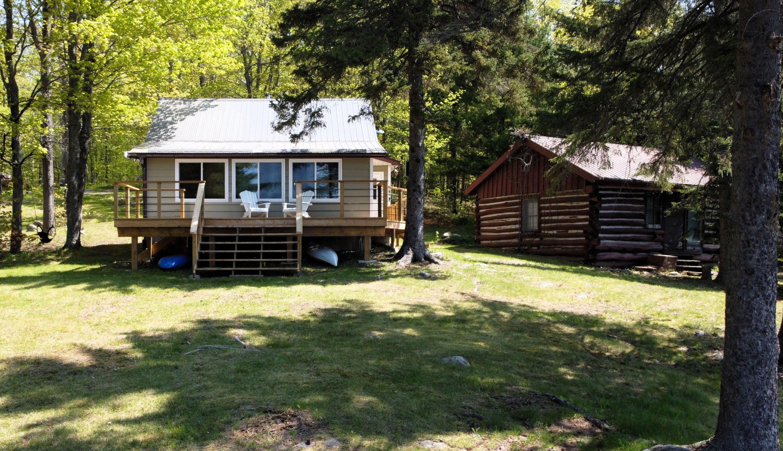 Classic northern ontario cottage - absolutely charming four-season cottage set on a private, level lot with over 200 feet of pristine, perfect shoreline on serene duck lake-part of the highly sought-after pickerel river system, offering 40+ miles of boating, fishing, and family recreation. Inside features: eat-in kitchen area with mainfloor laundry, newly renovated 4-piece bathroom, vaulted living room with cozy wood stove and warm pine finishings, fun loft for the kids and a bright lakefront sunroom-which easily doubles as a third bedroom-providing a flexible space for family and guests. Stunning lake views are enjoyed from both indoors and out. Outside you will find newer decking, maintenance free steel roof, and exceptional privacy thanks to the natural treed setting and level topography. There is also an authentic log cabin currently used for storage - offers exciting potential for a future bunkie or guest space. A rare offering for buyers looking for a four-season waterfront retreat on a major waterway, complete with pristine shoreline and beautiful level lot.