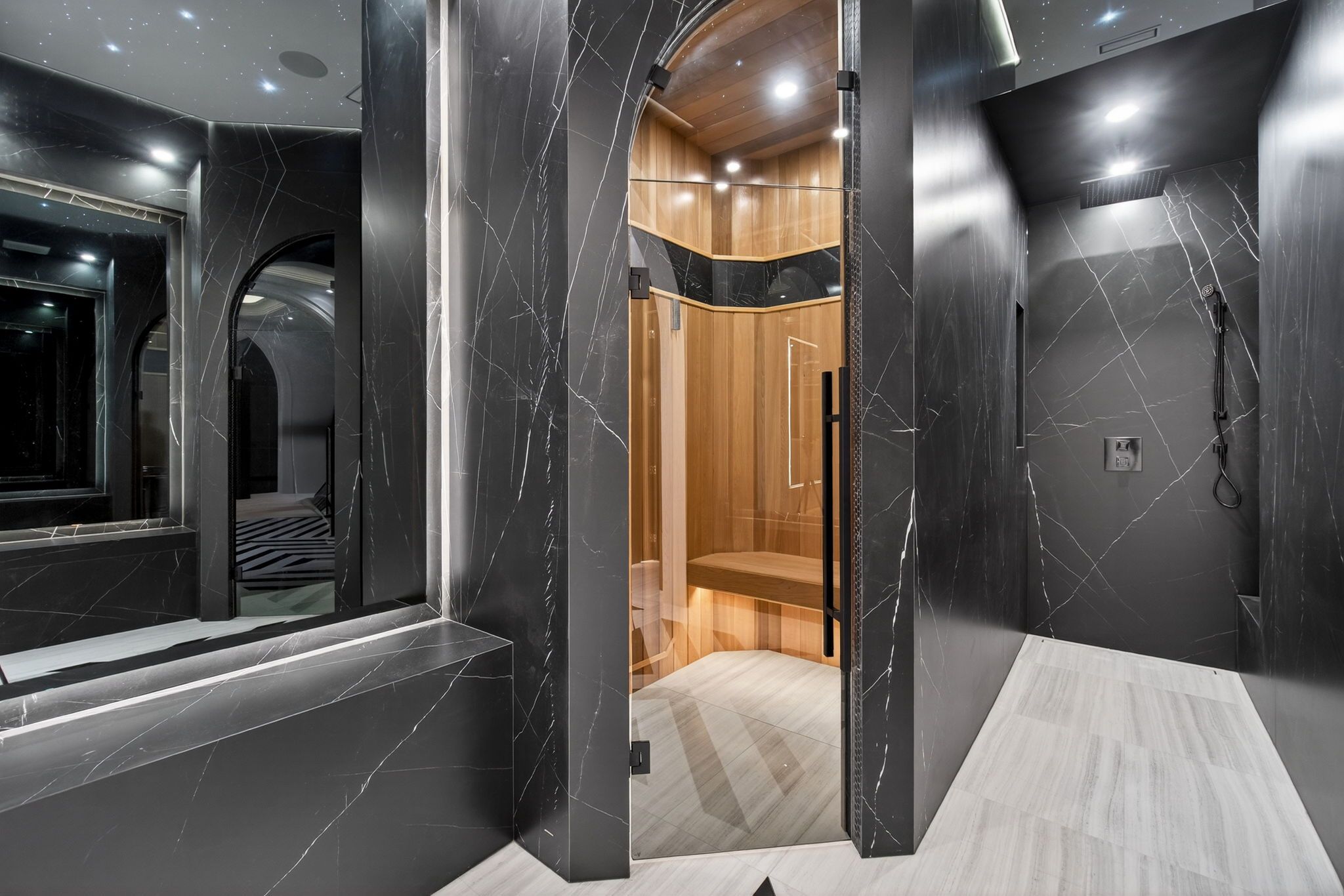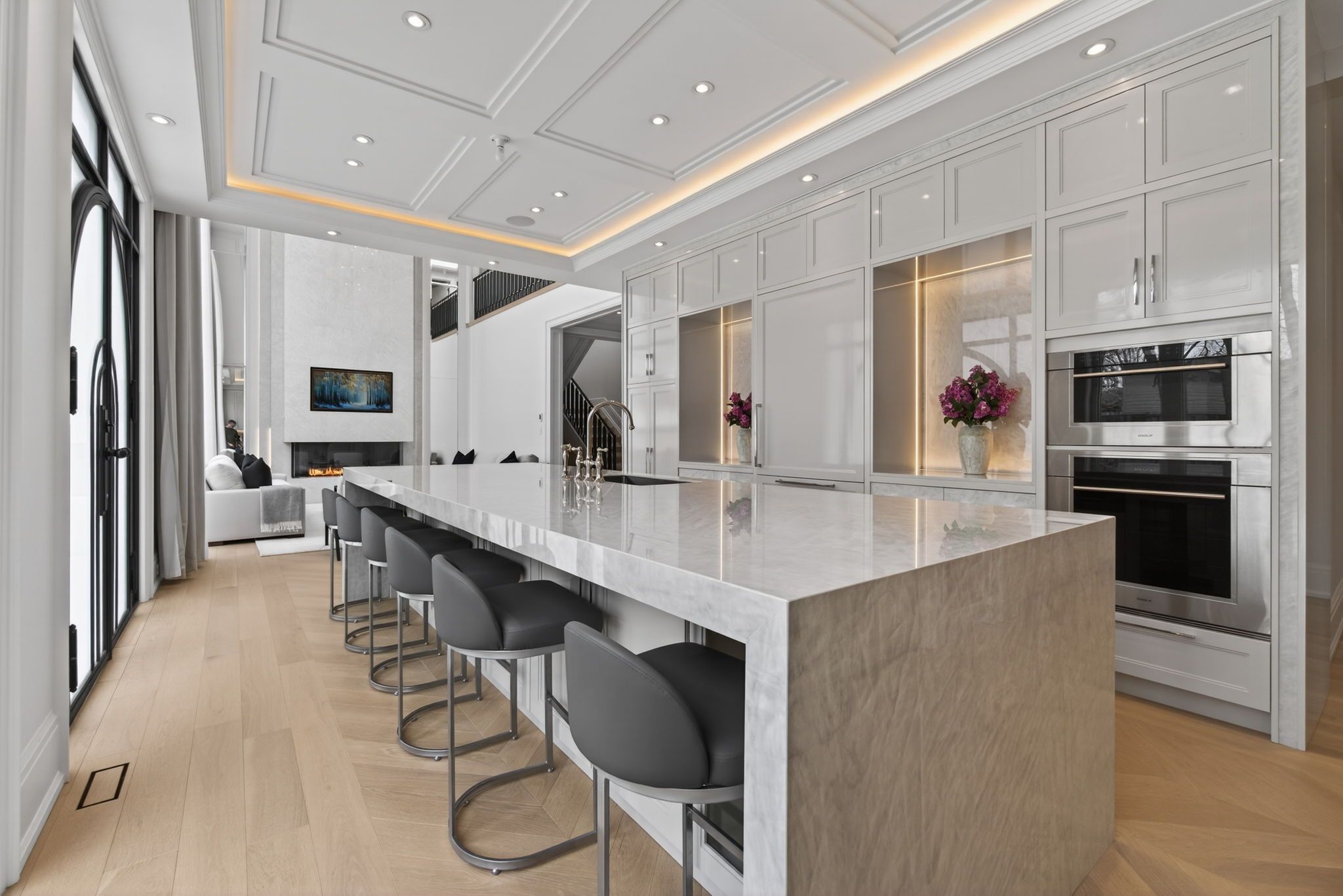 Welcome to 131 mayfield drive, an exceptional newly built custom home set on a premium 60 x 131ft lot. Offering approximately 3,200 sq ft above grade plus a fully finished 2,000 sq ft walk-up basement, this residence combines quality craftsmanship with thoughtfully designed living spaces. A grand marble foyer welcomes you into the home, leading to a formal dining room and an impressive living room highlighted by floor-to-ceiling windows and a gas fireplace. The layout flows effortlessly into the chef-inspired kitchen, appointed with high-end appliances including a wolf gas stove, sub-zero refrigerator, miele dishwasher, wolf microwave, and warming drawer. A striking marble waterfall centre island with breakfast seating creates the perfect space for everyday living and entertaining. Upstairs, the second level features four spacious bedrooms and three full bathrooms. The primary suite offers a recessed ceiling with an elegant chandelier, a walk-in closet, and a luxurious ensuite complete with a glass shower and separate soaker tub. A convenient second-floor laundry with stacked washer and dryer adds everyday practicality. The fully finished walk-up basement is designed for ultimate comfort and entertainment, featuring a spacious family room, private theatre room, dedicated office/den, exercise room, full bathroom, and a spa-inspired retreat complete with a sauna and steam room-ideal for extended family living or hosting guests in style. Premium upgrades include heated engineered hardwood flooring throughout the home, quality tile in all bathrooms, and a second laundry on the main floor. A rare opportunity to own a beautifully crafted custom home that seamlessly blends luxury, comfort, and functionality.