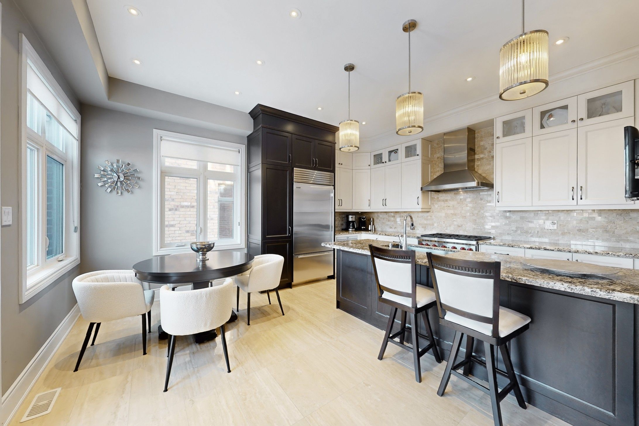 Welcome to an exceptional luxury home located on a quiet crescent in prestigious king city. This beautifully maintained 3-bedroom, 5-bathroom detached two-storey residence offers rare complete privacy with no homes directly in front or behind and a south-facing exposure that fills the home with natural light. Featuring large windows, hardwood flooring throughout, crown moulding, and a carpet-free interior, the home showcases quality craftsmanship and thoughtful customization at every turn. The main level offers a spacious formal dining room and a bright eat-in kitchen with high-end stainless steel appliances. The upper level features a primary retreat with a large walk-in closet and private ensuite, while each additional bedroom has its own ensuite bathroom, offering exceptional comfort with no shared bathrooms. The professionally finished basement includes custom kitchen cabinetry, a full stainless steel appliance package, and a wine fridge, ideal for entertaining or extended living. Additional highlights include custom-built storage, electric fireplaces, and an integrated home entertainment system with in-wall speakers throughout. Step outside to a private, professionally landscaped backyard surrounded by mature trees and lush greenery. Enjoy elegant stonework, a custom brick shed, and a charming backyard swing, creating a peaceful outdoor retreat. Added features include wrought iron pickets, exterior security cameras, and meticulous attention to detail throughout. A rare opportunity to own a move-in-ready luxury home in one of king city's most desirable neighbourhoods.