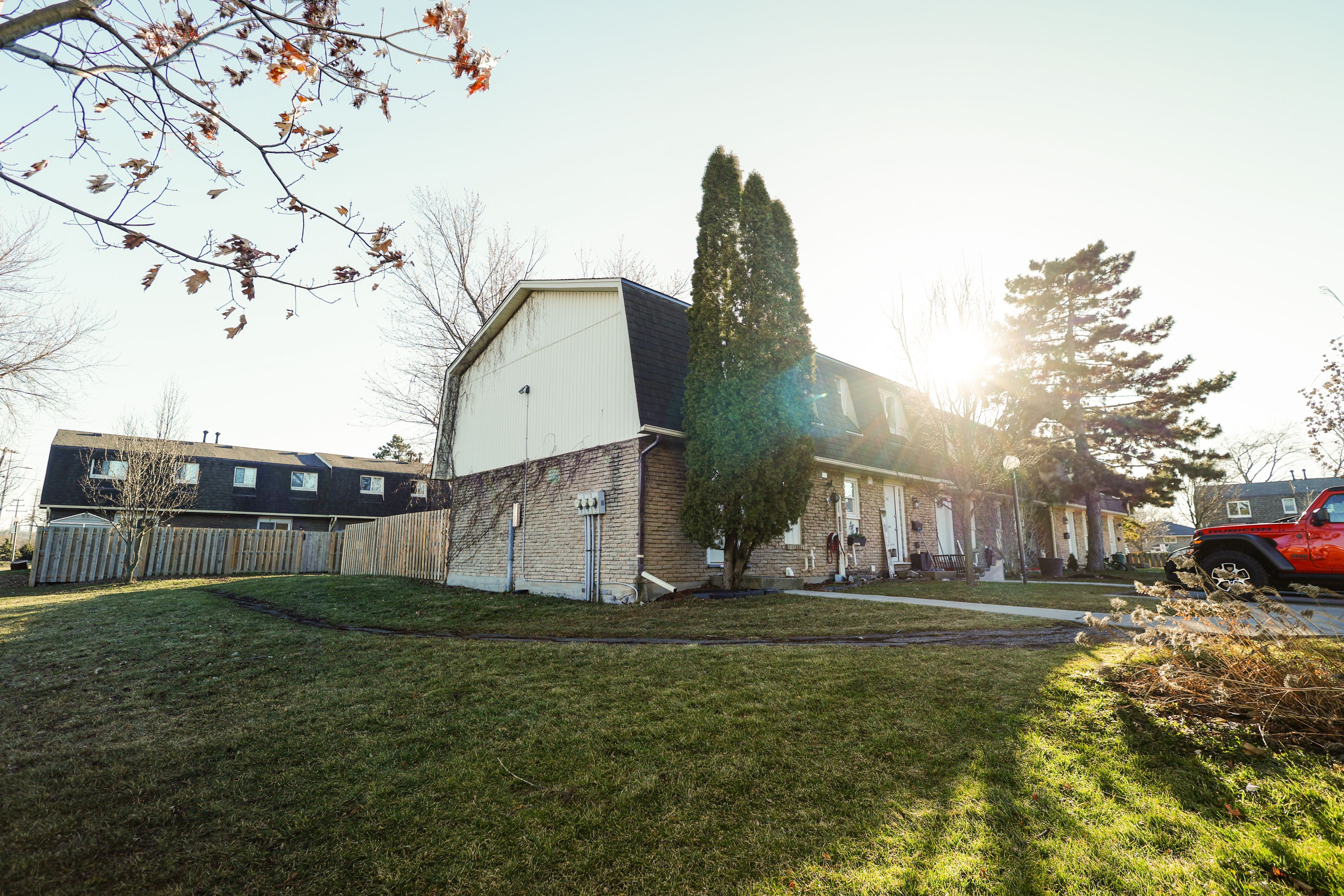 Renovated two-storey end unit townhouse, move-in ready with immediate possession. Located next to a park for added privacy. Extensively updated throughout, including new central air conditioning, a rare feature in this complex. Modern kitchen with new cabinets, stove, dishwasher, and proper range hood with exterior exhaust. Pot lights throughout, updated flooring, doors, trim, lighting, and fresh paint. Updated bathroom with walk-in shower, vanity, and sink. Finished basement with rec room, pot lights, furnace, laundry, and storage. Fully fenced backyard features a large patio, outdoor lighting, and seating area. The monthly maintenance covers water bill, building insurance as well, landscaping, grass and snow removal. Also option to rent the home with the some of the furniture. *water is included in rent. Tenant pays, hydro, gas and hot water heater rental.*