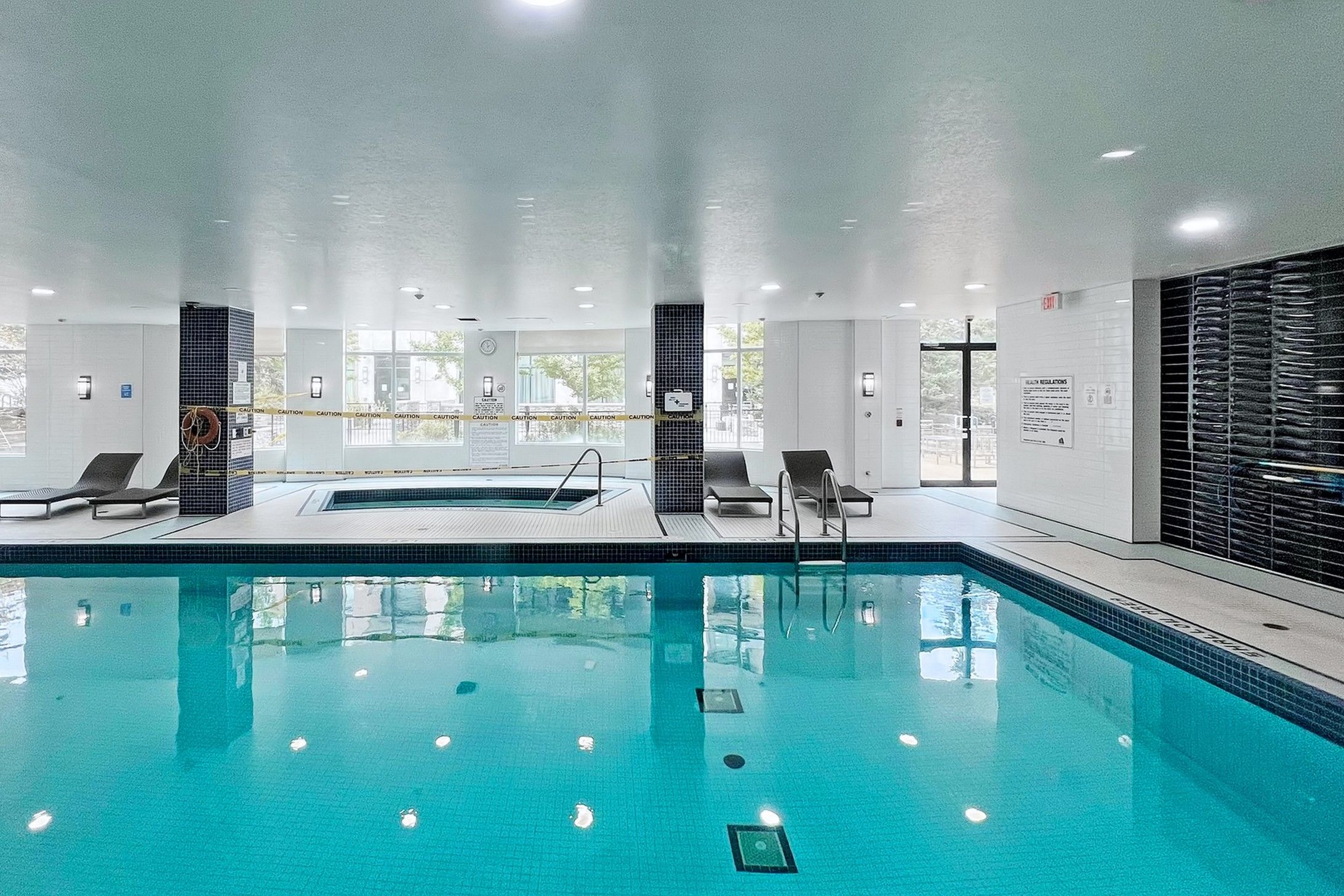 • Amenities feature an indoor pool, gym, jacuzzi, and party room.
