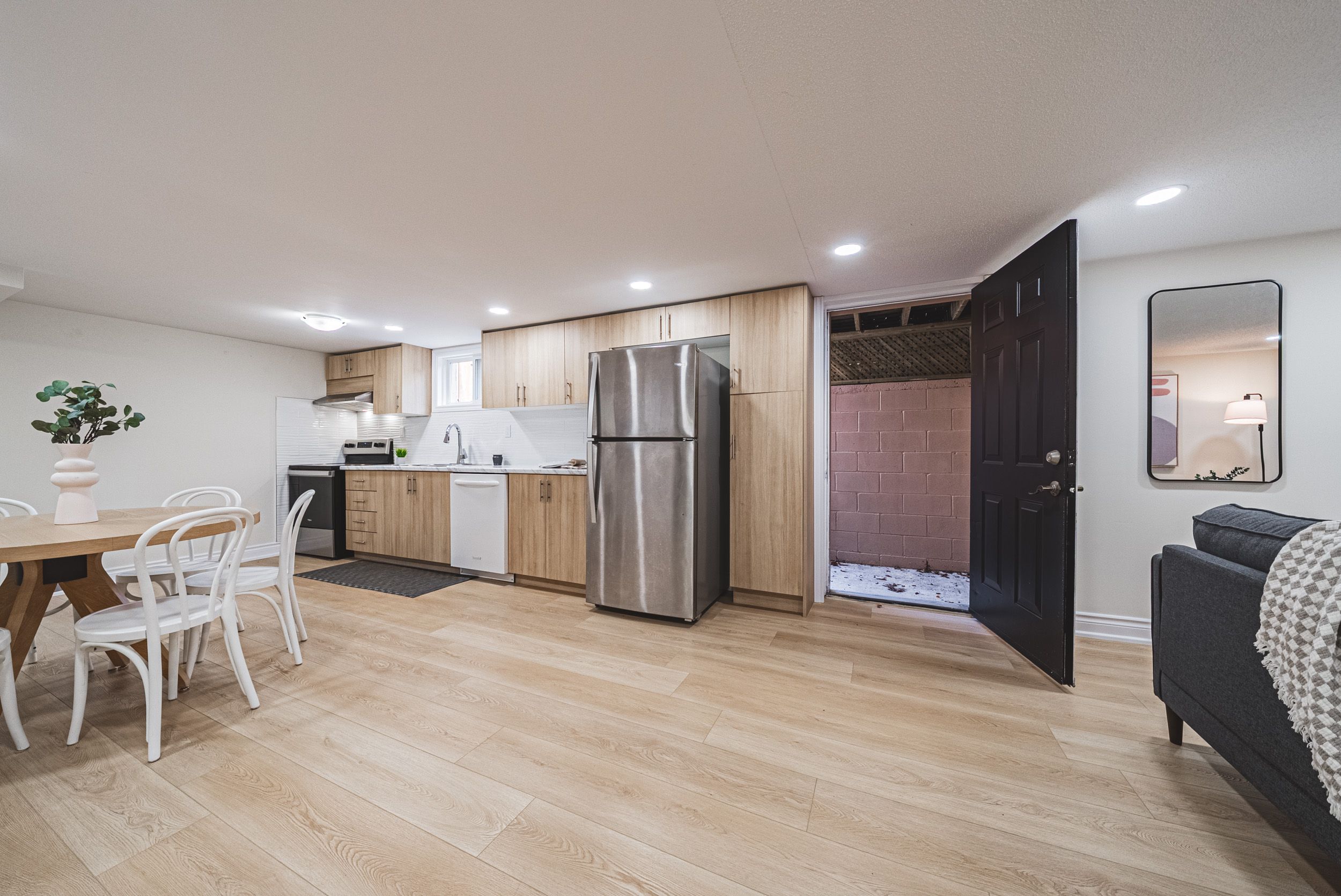 • Elegant kitchen with new appliances and hardwood flooring throughout.