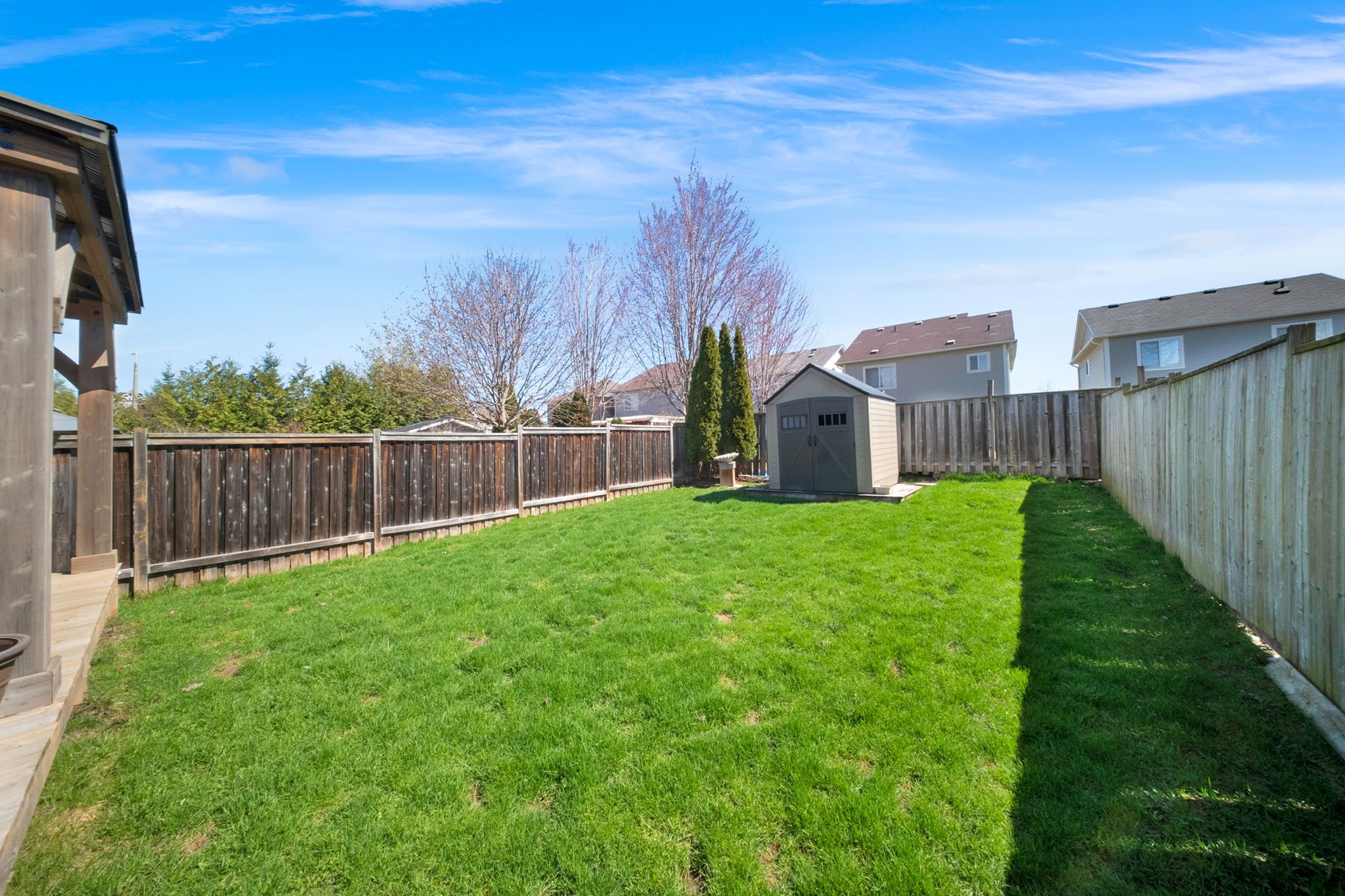 • Covered deck and private backyard perfect for outdoor activities.