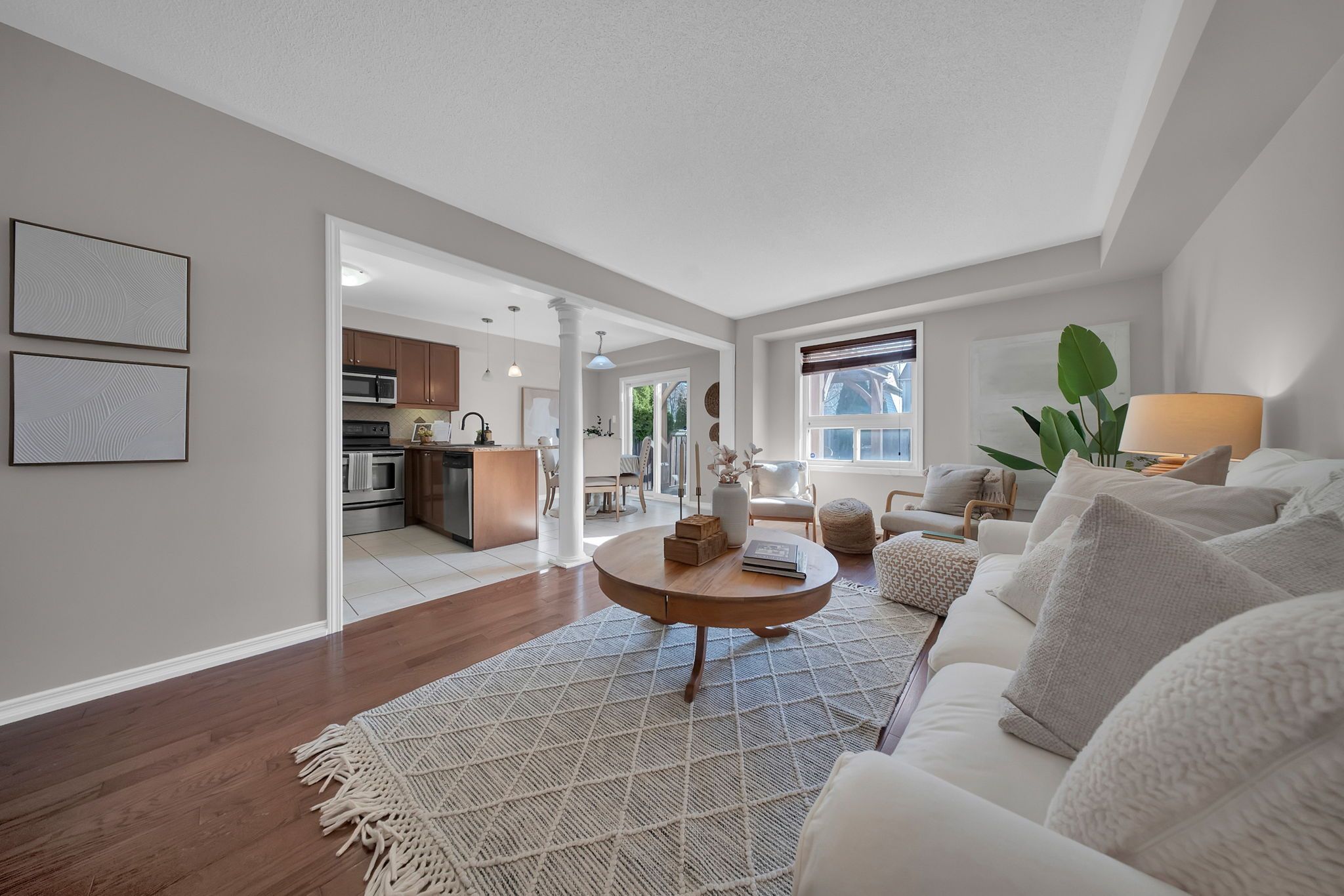 • Bright open-concept main floor with warm hardwood flooring.