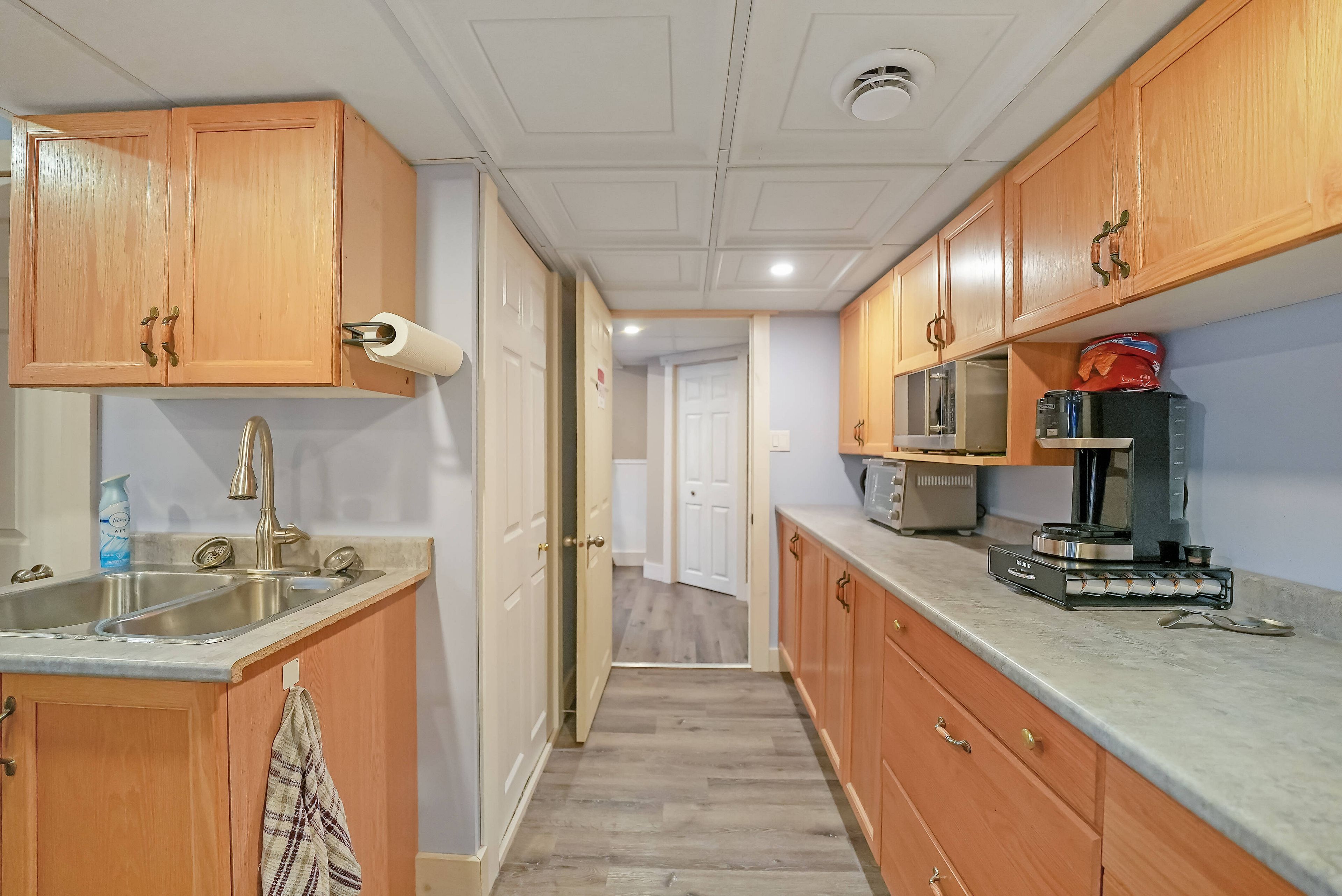 • Updated kitchen with new countertop and backsplash for functionality.