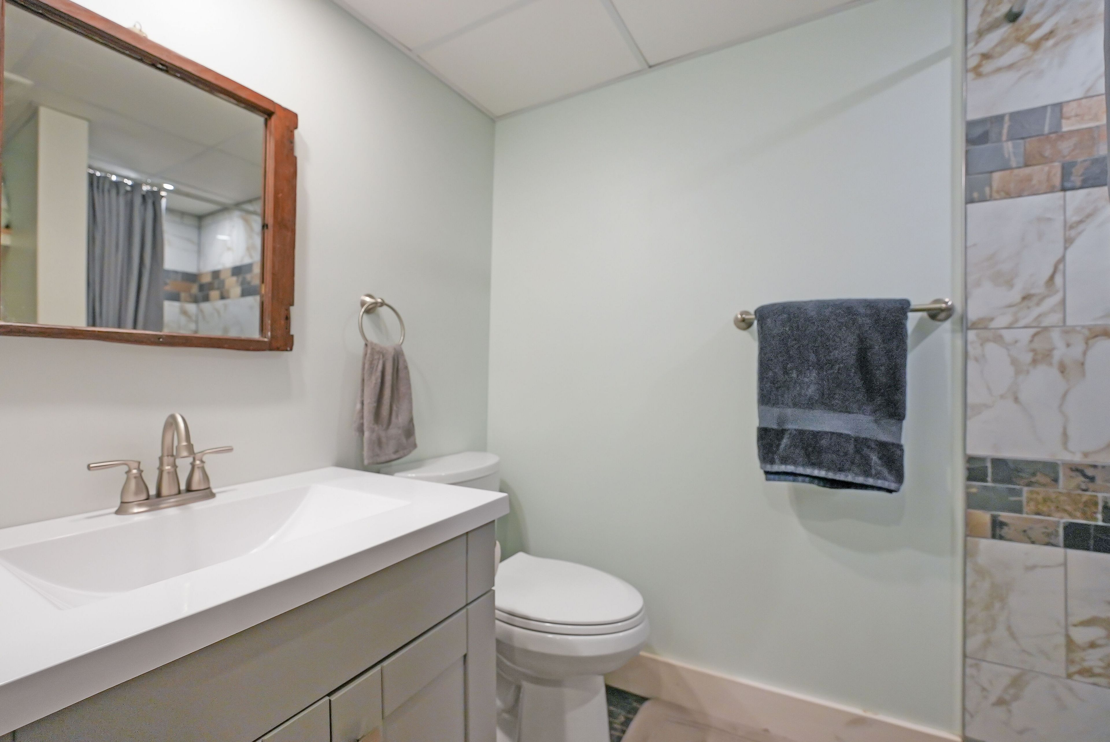 • Spacious lower level with recreation room and second kitchen for versatility.