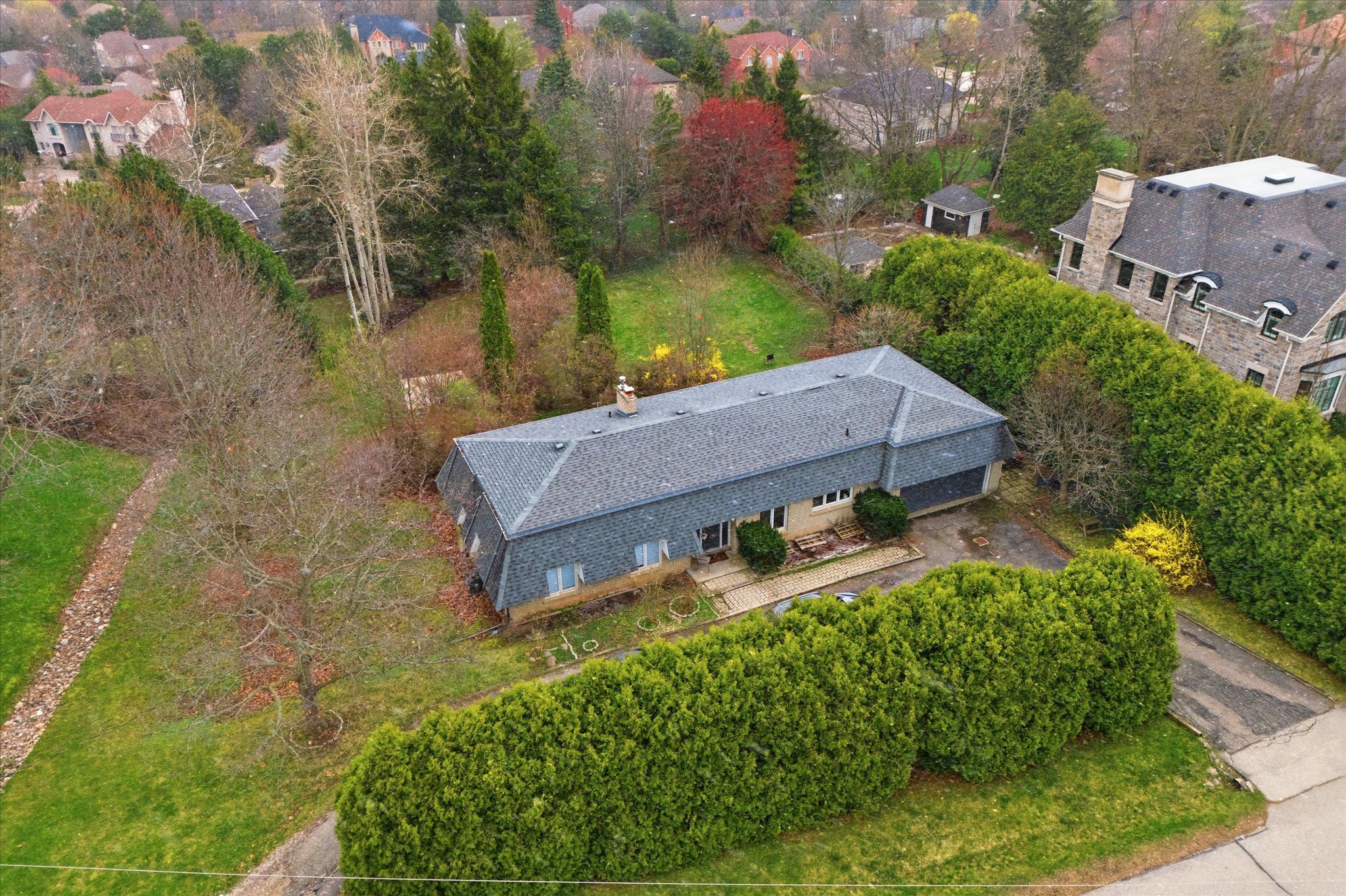 Welcome to an exceptional opportunity in one of burlington's most coveted pockets. Set on a premium lot surrounded by mature trees and established homes. This home offers endless potential for those with vision. Whether you are looking to renovate invest or build new the possibilities here are substantial. The existing home features a spacious layout with a bright foyer open concept living and dining area and large windows that overlook the expansive backyard and deck. A stone fireplace anchors the main living space while the family sized kitchen includes a breakfast area ready for reimagining. Three bedrooms occupy the main level including a primary suite with a 3piece ensuite and walkout to the deck. The lower level presents a full in law suite with separate entrance, kitchen, a laundry room, two additional bedrooms, full bath and a generous living area with exposed brick fireplace and walkout to the yard, ideal for multi generational living or income potential. The true value lies in the lot and location. Surrounded by top rated schools parks and just minutes to the lake downtown burlington shopping dining and major highways this is a rare chance to secure a prime piece of real estate in a highly desirable neighbourhood. Renovate, rebuild or reimagine this is your canvas.