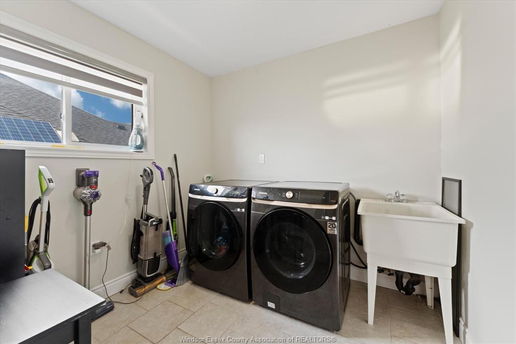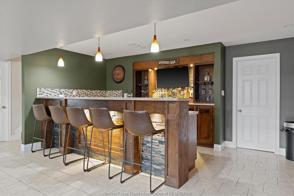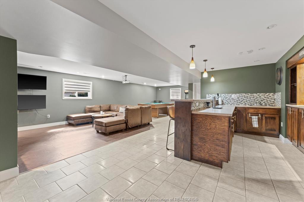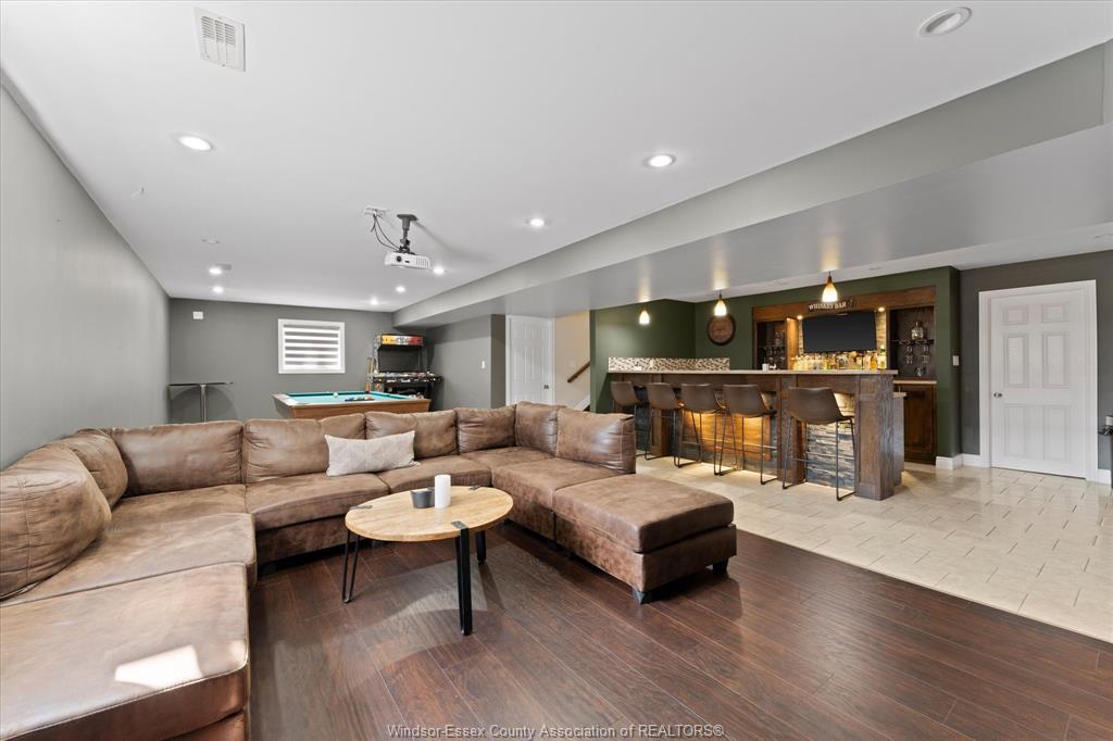• Fully finished basement equipped for entertaining with wet bar and projector.