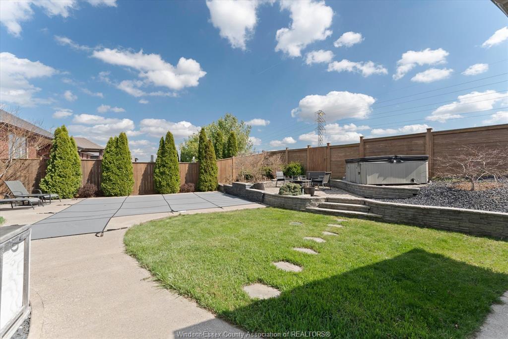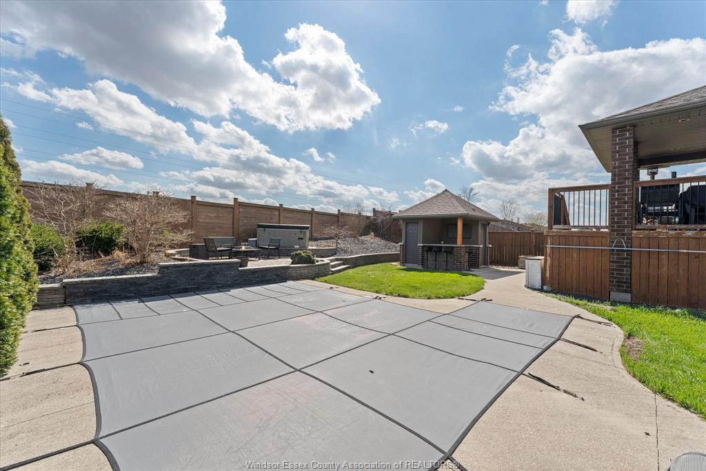 • Private backyard with pool, hot tub, outdoor bar, and covered porch.