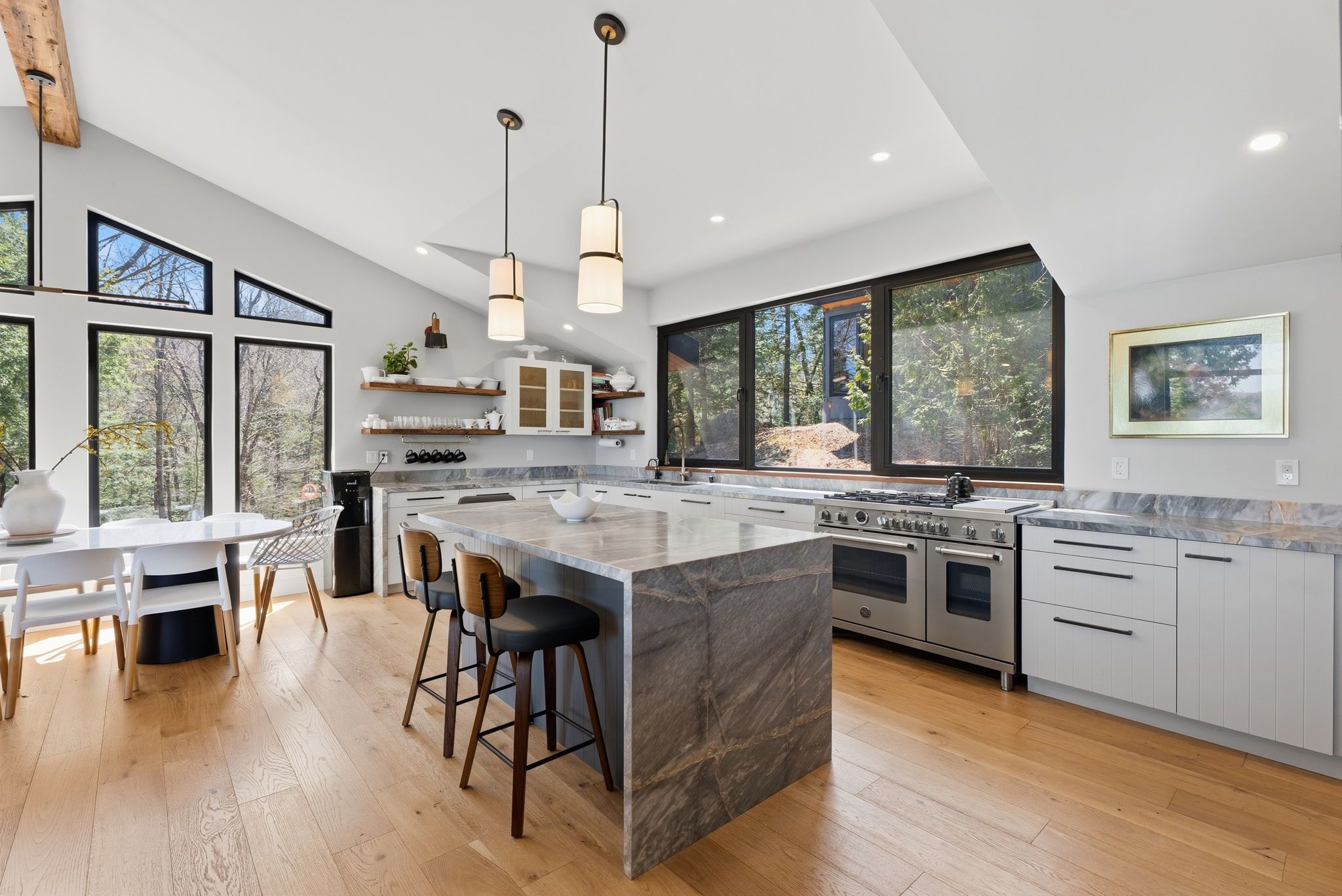 Set along the quiet, spring-fed waters of ril lake, this is muskoka in its purest form - exceptional privacy, expansive, and deeply connected to nature. Spanning on 3 acres, with 300 feet of shoreline, the setting is both timeless and untouched. Framed by granite, mature forest, and long uninterrupted lake views. Mornings arrive slowly here, with a stillness that's increasingly rare to find. Moments from baysville, the setting offers a seamless balance of seclusion and refined convenience. The approach is understated by design - tucked naturally into its surroundings, allowing the landscape to take the lead. Inside, a curated material palette and elevated finishes create a sense of quiet sophistication. Leathered marble surfaces, a fully integrated fisher & paykel kitchen, and a statement bertazzoni double oven range anchor the space without distraction. The living areas are designed for presence, not performance -anchored by the warmth of a wood burning fireplace and floor to ceiling views of the lake beyond. A muskoka room enclosed with weatherwall windows extends the seasons and becomes a natural gathering place from early spring through late fall. A hair below 3000sqft, five bedrooms and four bathrooms offer space for both family and guests, including a primary suite positioned to capture first light - where each day begins with the lake and the sunrise. All day summer sun, and an additional 1200sqft for your imagination to design. From sunrise to nightfall, this is muskoka - exactly as it should be.